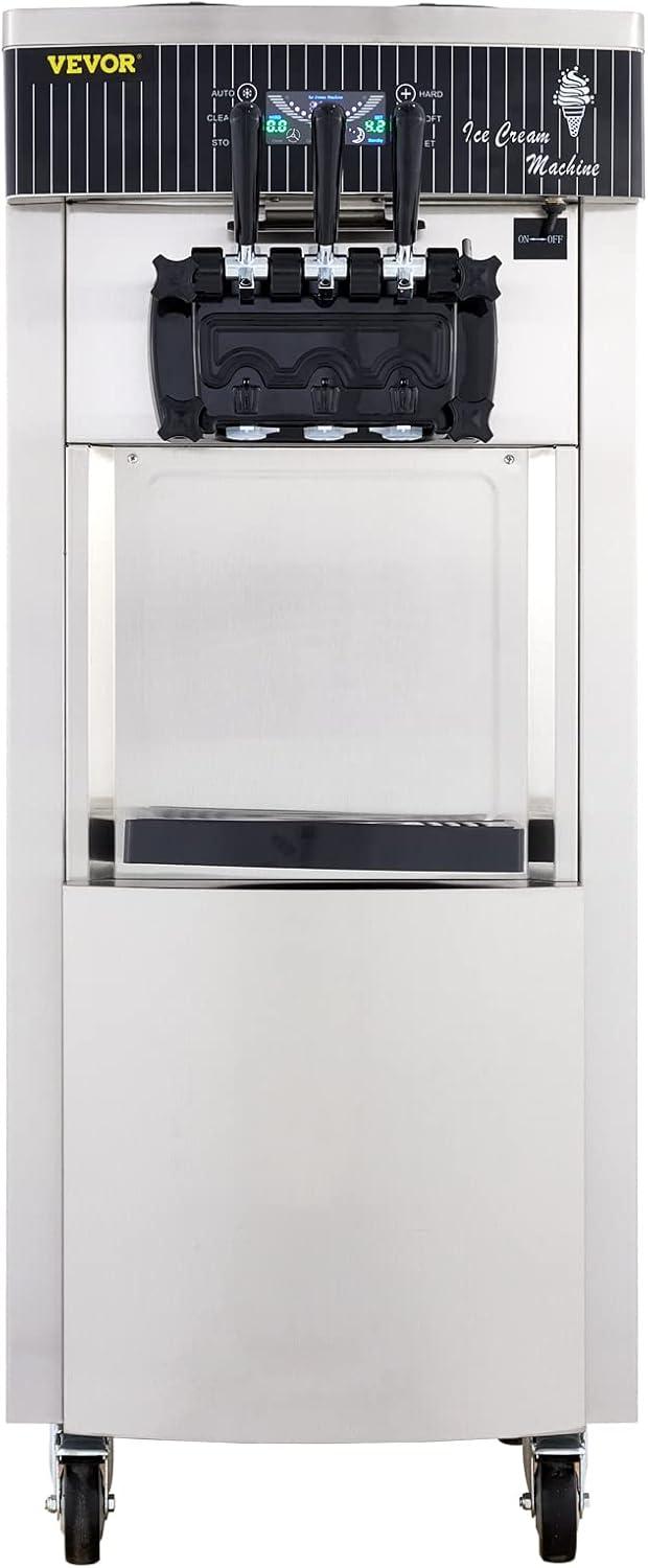 VEVOR Commercial Soft Ice Cream Machine, 2200W Serve Yogurt Maker, 3 Flavors Ice Cream Maker, 5.3 to 7.4 Gallons per Hour Auto Clean LCD Panel for Restaurants Snack Bars, Stainless Steel(Vertical 3 Flavors Basic Model)