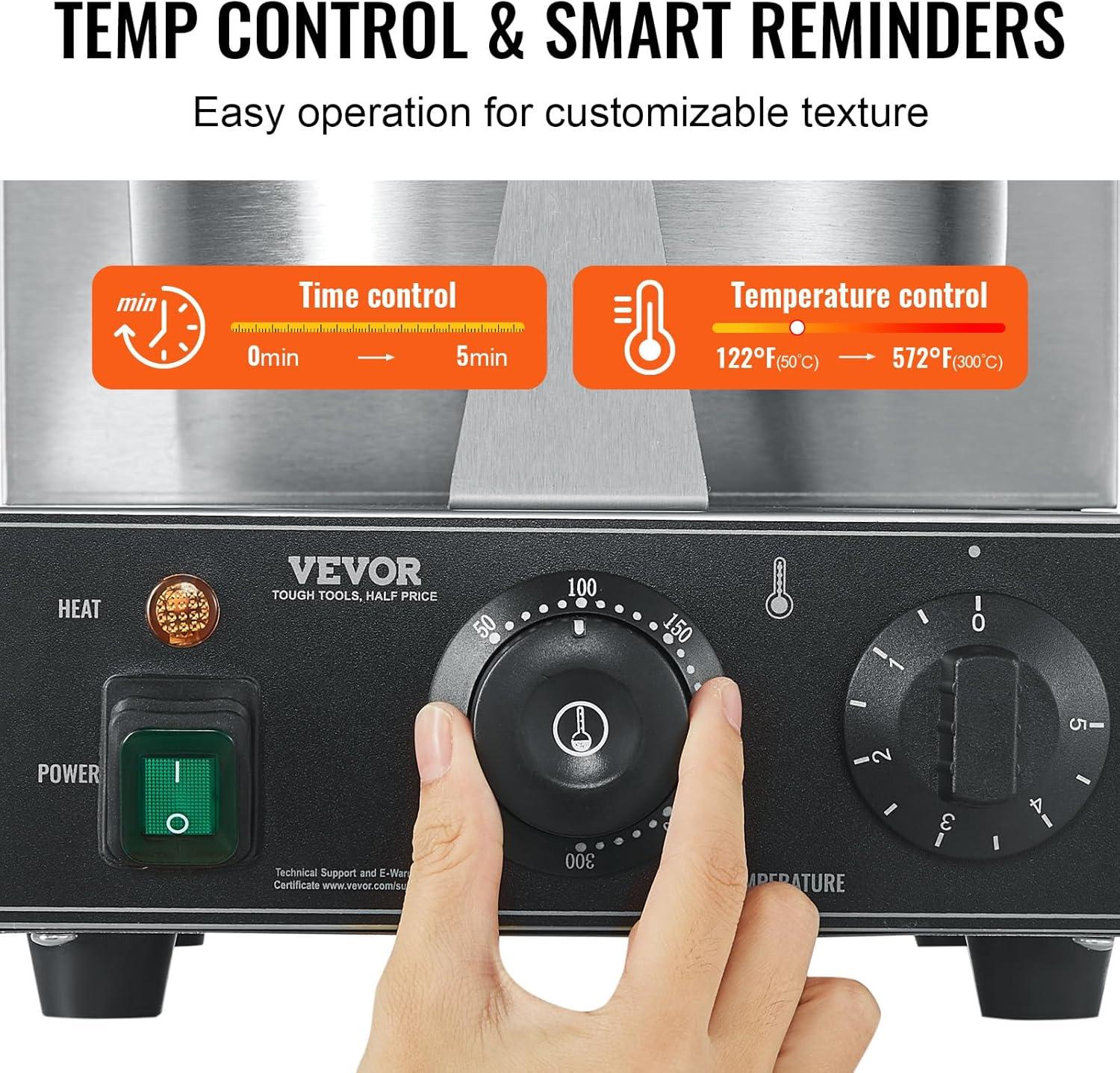 Precision Temperature Control: This commercial waffle stick maker is designed with a temperature control knob (122-572°F / 50-300°C), allowing you to adjust according to your preferences. Customize it to create personalized waffles, whether you prefer them crispy or fluffy. With individual preparation and audible alerts, it's easy to operate—it reminds you to add batter and indicates when the waffle is cooked, so you don't have to watch it constantly.