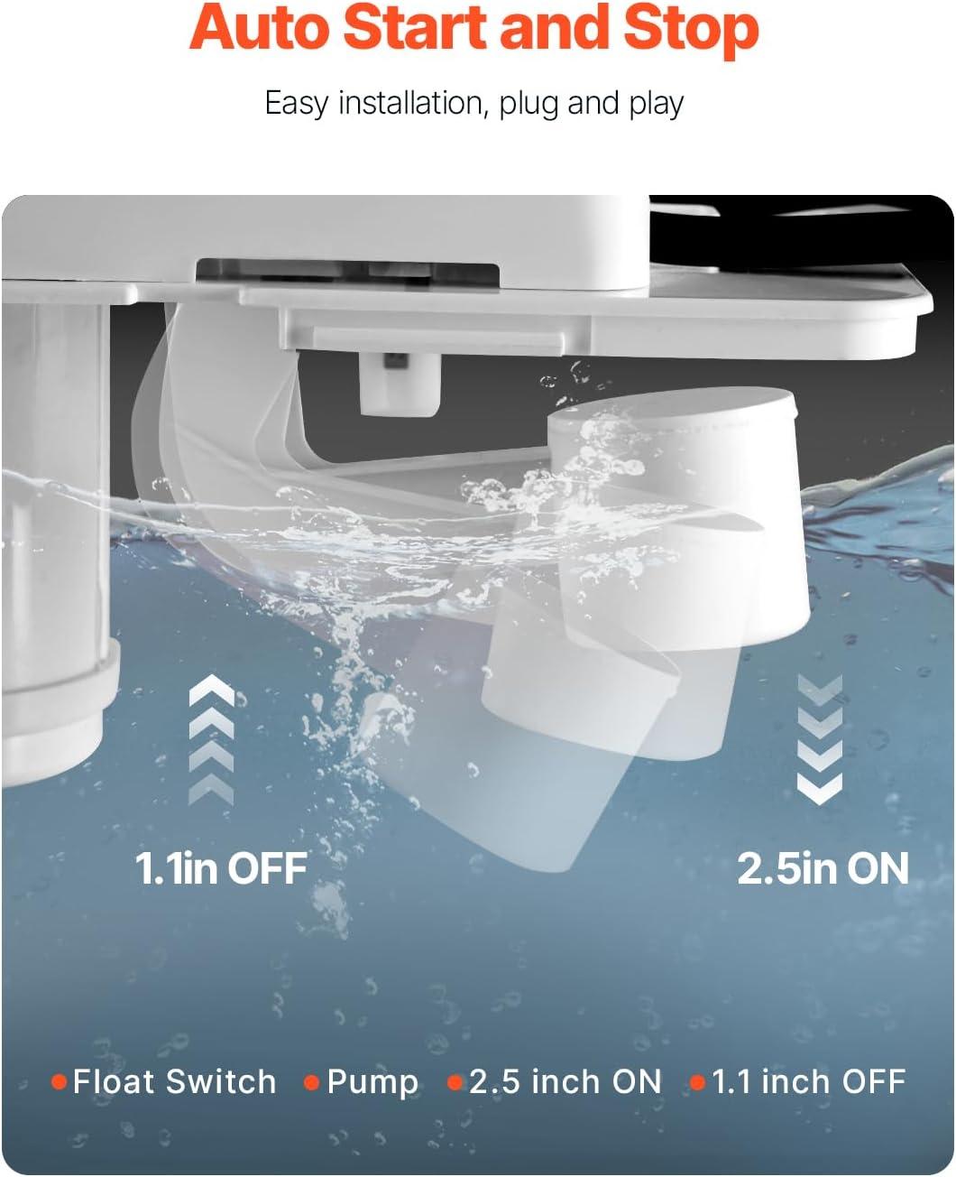 Operate with Ease: Say goodbye to complicated installation processes! This AC condensate pump is incredibly easy to use. Simply connect it to the power and water pipes, and it is ready to use. With the built-in float switch, it will automatically start when the water level reaches 2.5 inches and stop when 1.1 inches