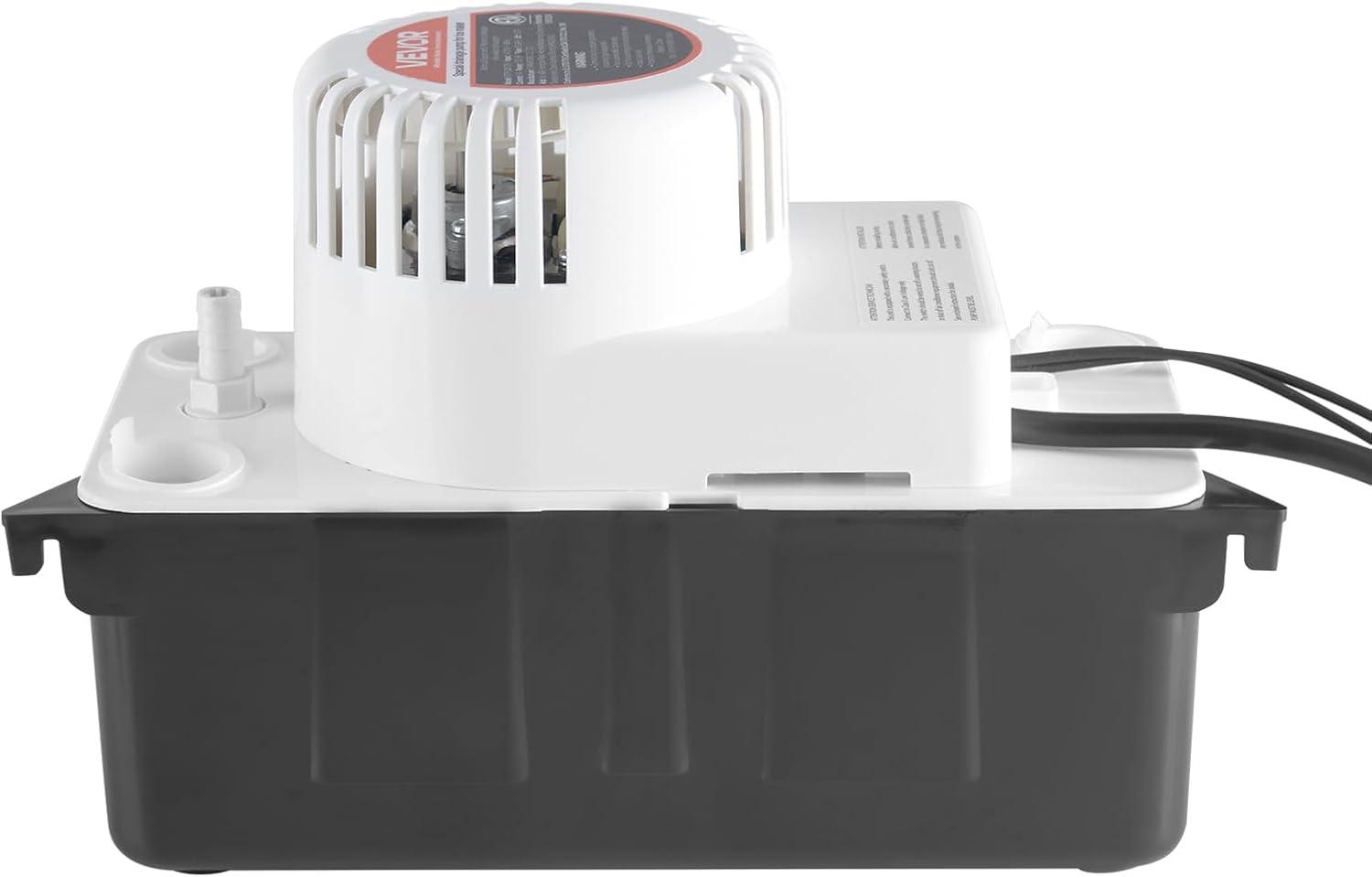 Efficient Drainage: Featuring a powerful 1/50 HP motor, 65 GPH maximum flow, 24 ft maximum head, and 1/2 gallon tank capacity, this condensate removal pump is perfect for draining condensate produced by air conditioners and dehumidifiers. With its high lift, it can even drain condensate produced by basement boilers and furnaces outdoors