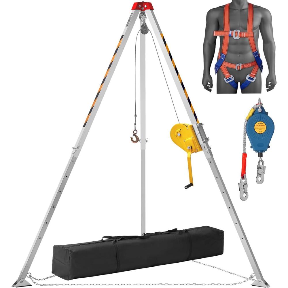 Abundant Accessories: This confined space tripod kit includes a 350 lbs full-body security harness for complete protection. Plus, an efficient fall arrester is included for those crucial moments. Everything fits snugly into the handy black storage bag for on-the-go convenience.