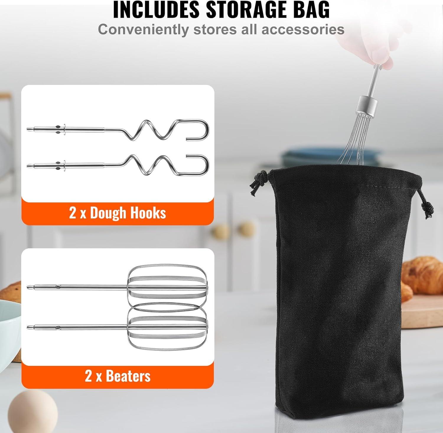 Multifuctional Mixing: This mixer electric handheld comes with 2 dough hooks, 2 stirrers, and a storage bag that conveniently holds all your accessories and reduces the possibility of losing or misplacing them.