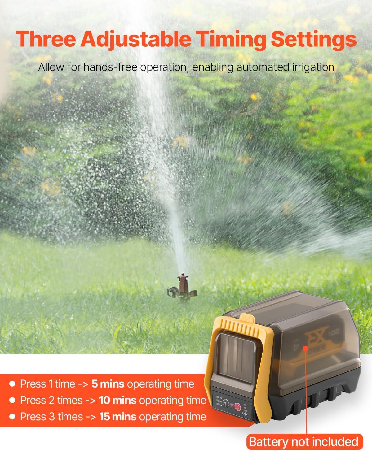 3-Mode Timer Setting: Featuring a 3-stage adjustable timer (5, 10, and 15 min), the cordless water pump automatically shuts off once the set time is reached. This design enhances convenience, helps save energy, and reduces unnecessary waste.