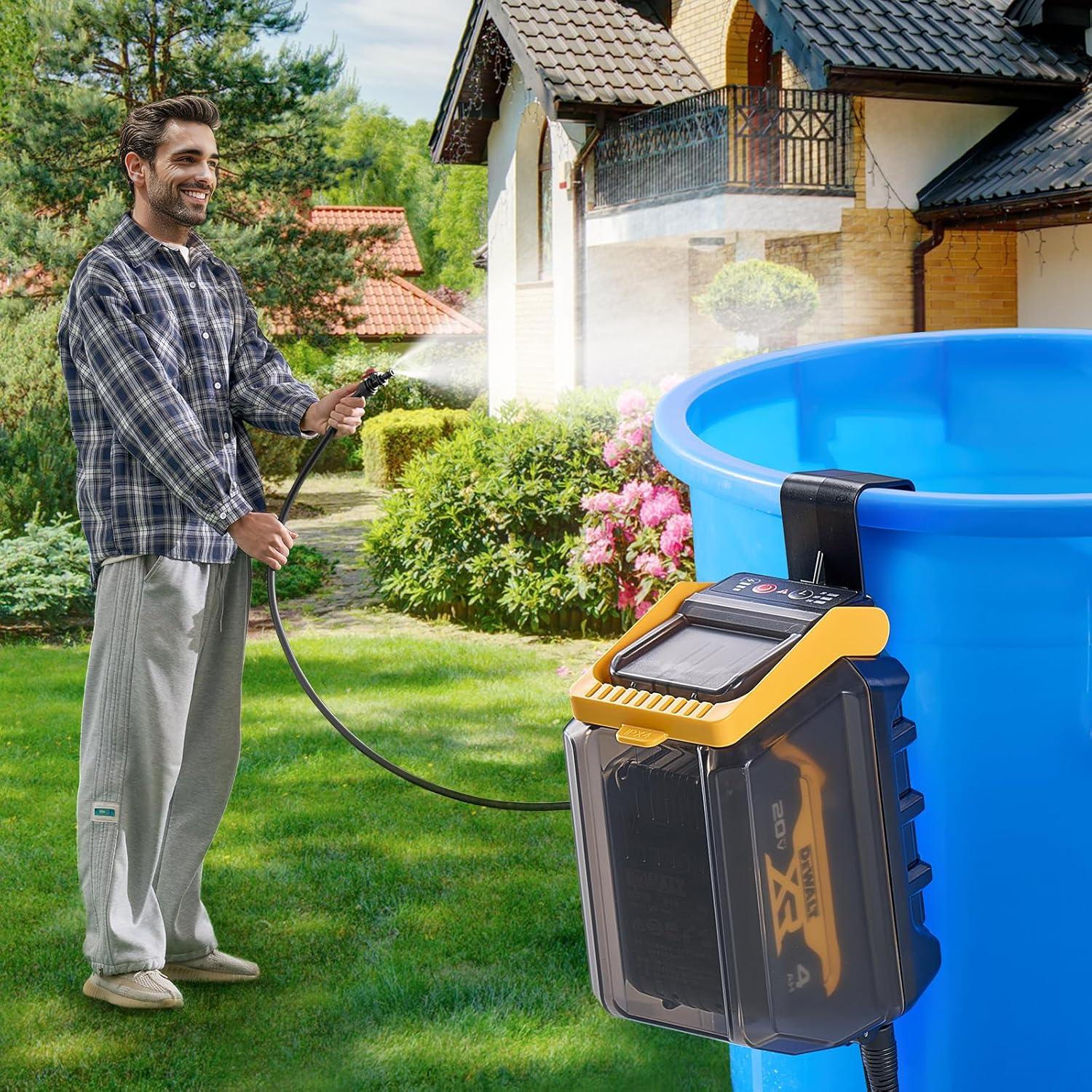 Portable Water Pump: This cordless submersible water pump enjoys the flexibility of cordless operation with compatibility for Dewalt 20V/4A batteries (not included). Whether at home, camping, or gardening, this pump provides convenient water support anytime, anywhere—no power outlets required.