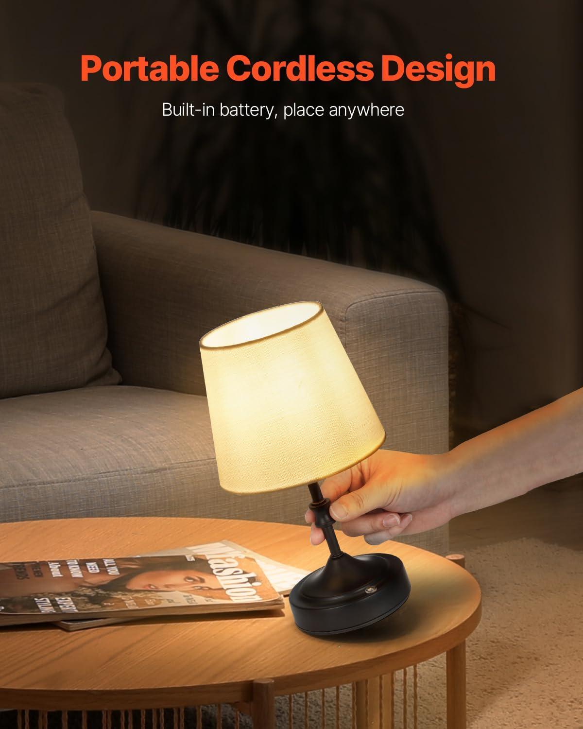 Cordless & Portable: Built-in battery takes away the hassle of cords. The cordless lamp's lightweight design makes it easy to move, ideal for bedrooms, dining rooms, patios, outdoors, restaurants, bars, and campsites to create a warm, cozy atmosphere