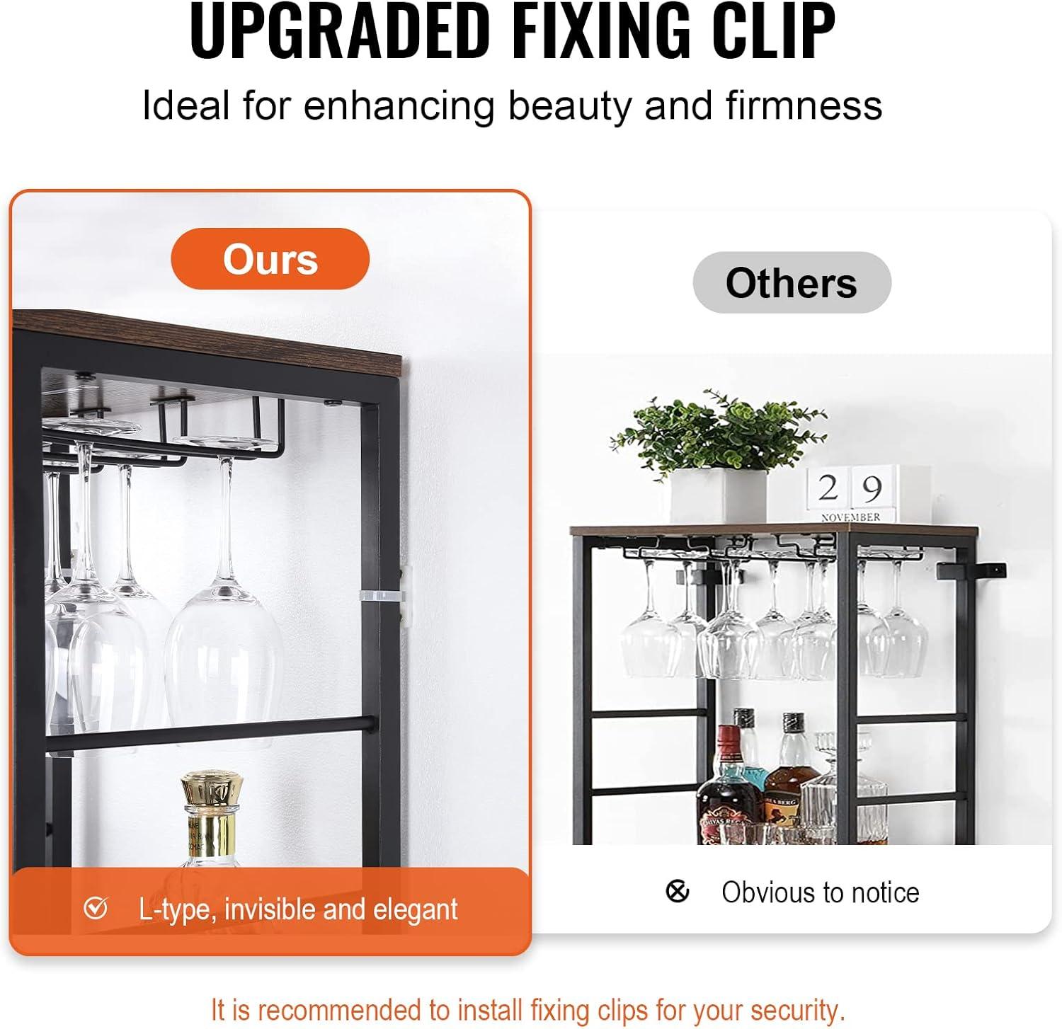 Wine Glass Holder:Compared with others’ glasses holder, our industrial bar cabinet has a unique slanted entrance for the glass holder, which sets it apart from other models. With this design, your glasses won't slip off easily when you reach for them.