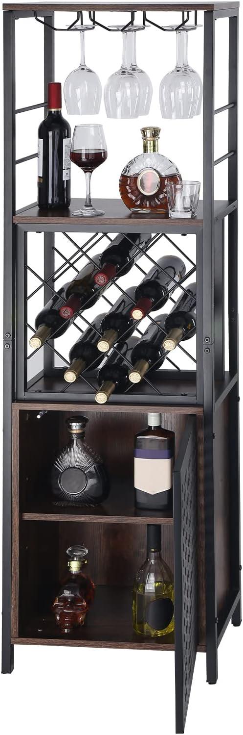 VEVOR Corner Industrial Bar Cabinet, Wine Table for Liquor & Glasses, Sideboard Buffet Cabinet with Glass Holder, Freestanding Farmhouse Wood Coffee Bar Cabinet for Living Room, Home Bar, Black Walnut(12"D x 18"W x 61"H)