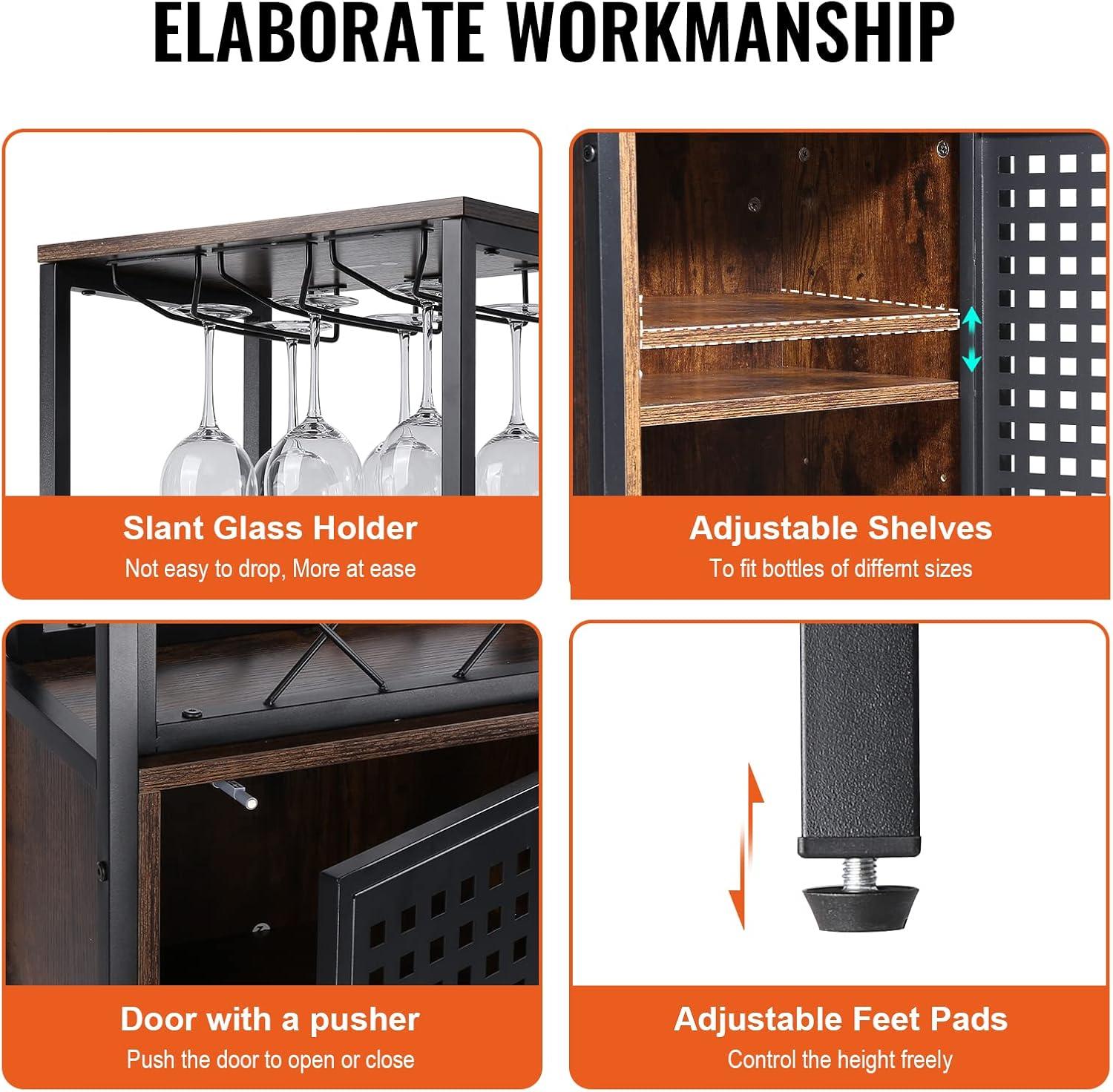 imageVEVOR Corner Industrial Bar Cabinet Wine Table for Liquor ampamp Glasses Sideboard Buffet Cabinet with Glass Holder Freestanding Farmhouse Wood Coffee Bar Cabinet for Living Room Home Bar Black Walnut12D x 18W x 61H
