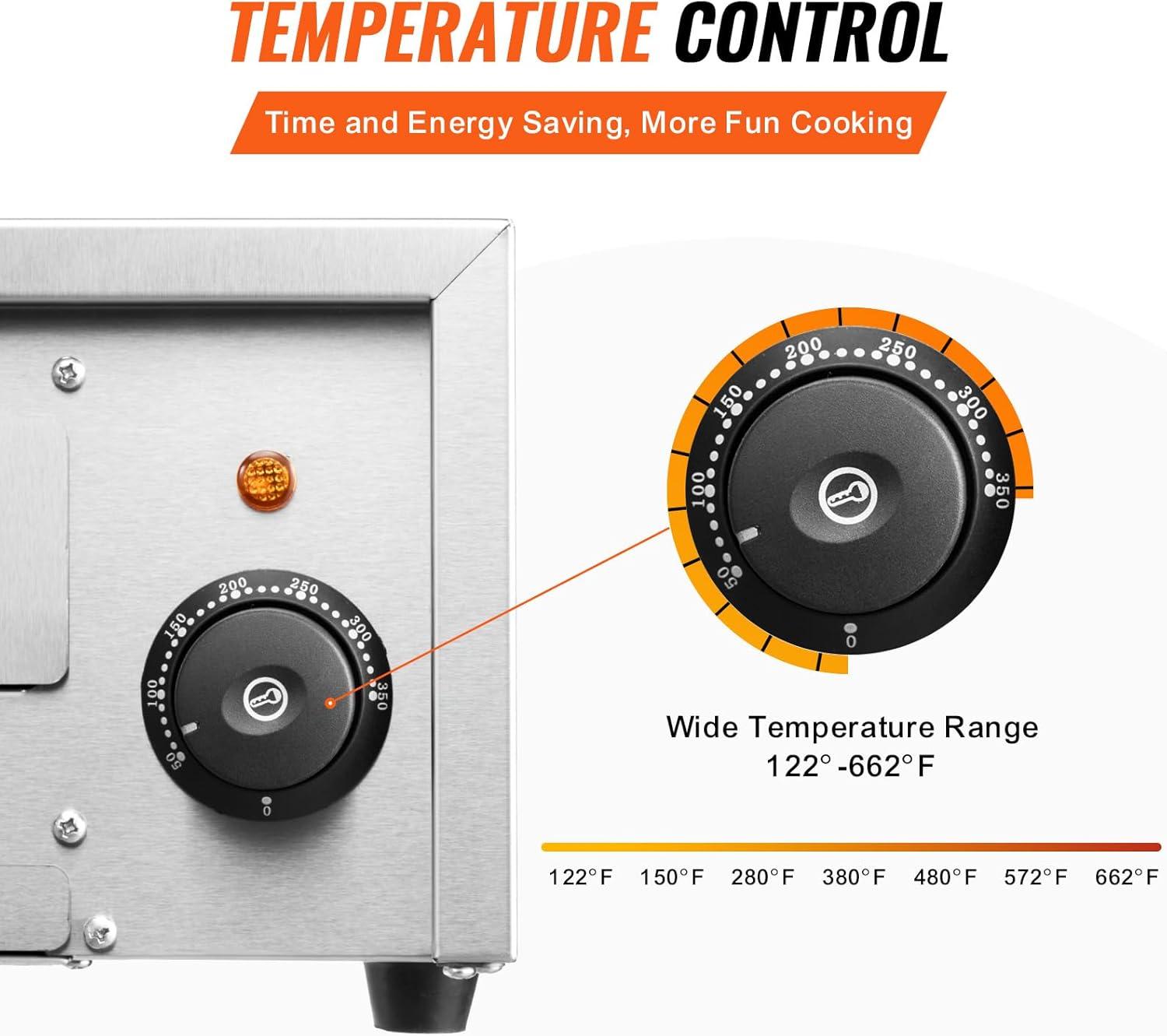 Adjustable Temperature: With a 122-662℉/50-350℃ temperature range, our pizza oven allows you to precisely control the baking process and create perfect baked masterpieces. With just one-touch adjustment, you can perfectly control the cooking effect, and bake to perfection!