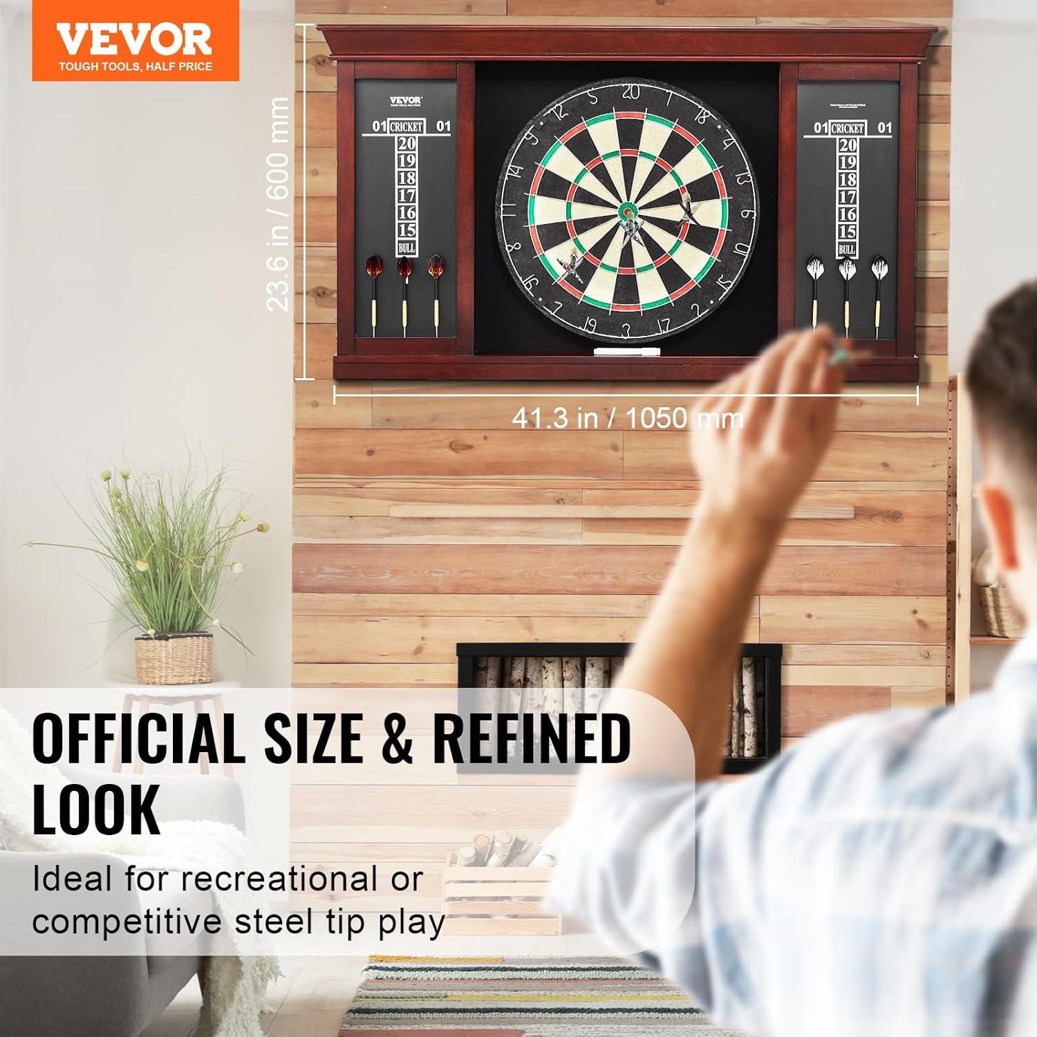 VEVOR Dart Board Cabinet Set, Multiple Styles Ready-to-Play Bundle Official Size, Steel Tip Dart Hideaway Cabinet, Features Easy Assembly, Complete with All Accessories, Perfect for Cricket Games(41.3" x 23.6" x 4")