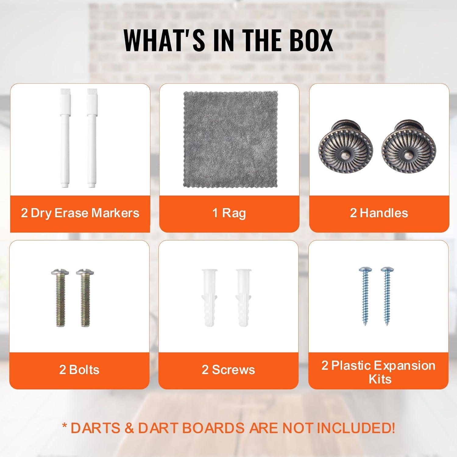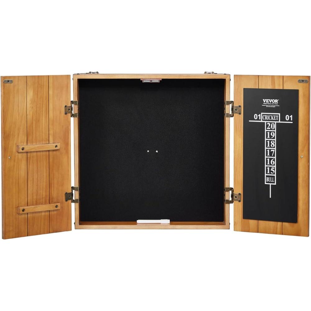Elevate Your Game With This Dartboard Cabinet Designed to enhance both recreational and competitive play. The electronic scoring system, retro-style cabinet, and included accessories ensure you have everything you need for a stylish and functional setup. Whether you’re looking to refine your skills or simply enjoy a friendly game, our dartboard cabinet delivers exceptional quality and performance. Key Features Variety of Gameplay This dartboard and cabinet set features 40 different games with 590 variations, accommodating 1 to 8 players. The LED display and adjustable sound settings enhance gameplay. Secure for Kids Built with safety in mind, this 13.5″ soft dartboard has honeycomb holes to reduce the risk of injury. The soft tip darts are designed for a secure hit on the target, minimizing bounce-backs. Electronic Scoring Mode The bright LED display offers a clear view and eliminates the need for manual scorekeeping. Enjoy a smooth and accurate gaming experience with automated electronic scoring. Stylish Cabinet Enhance your living room with this retro-styledart board set that adds a touch of vintage elegance. Its dust-proof design and stylish woodgrain finish not only improve your décor but also provide a functional and attractive addition to your game room. Complete Accessories The darts and dartboard set includes 12 soft tip darts, 60 replaceable dart needles, 1 power adapter, 6 screws, 6 plastic expansion kits, and 1 installation paper card. Easy to Assemble Come with easy installation steps, just mount it to the wall, secure the board, and play! Specification Item Model Number: 9176WD Material: MDF, Plastic Dartboard Diameter: Φ13.5″ / 34.3 cm Net Weight: 10 lbs / 4.6 kg Package Content 1 x Dartboard Cabinet 12 x Soft Tip Darts 60 x Replaceable Dart Needles 1 x Power Adapter 6 x Screws 6 x Plastic Expansion Kits 1 x Install Paper Card 1 x User Manual