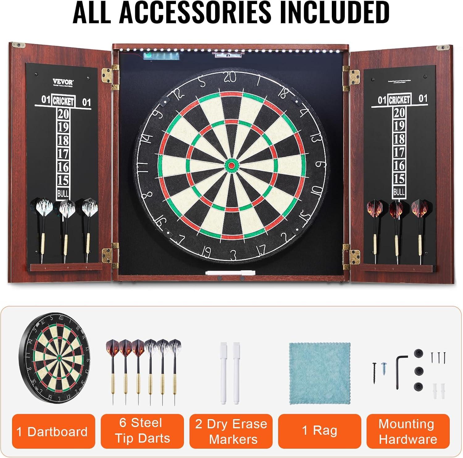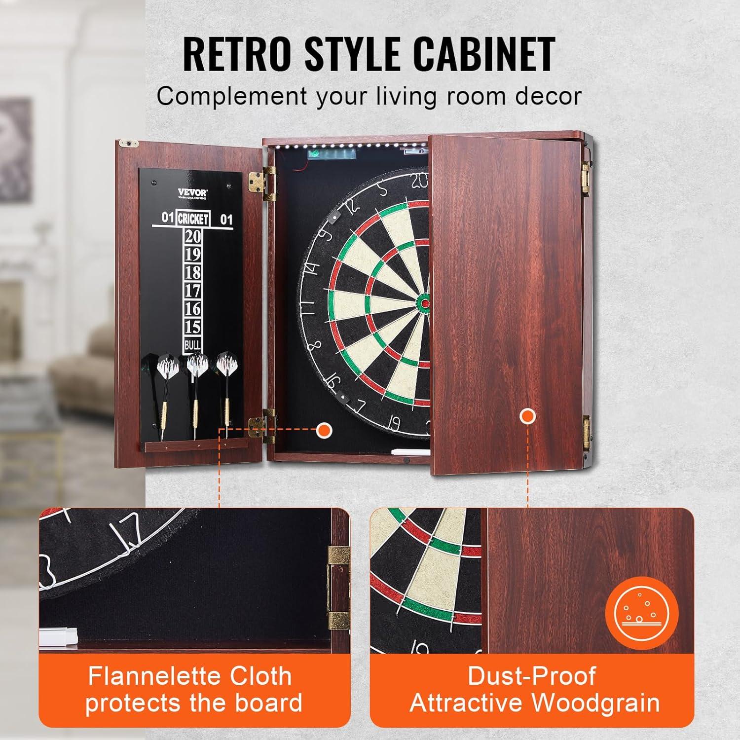 Vevor Dart Board Cabinet Set, Professional Dart Boards for Adults, Dartboard Cabinet With Light