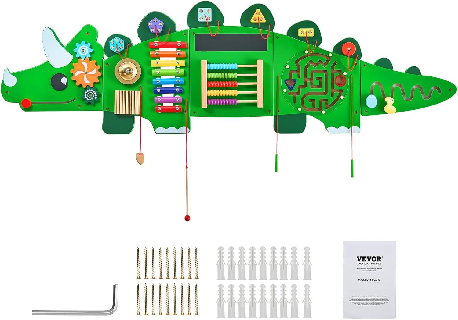 【Montessori Toy】: VEVOR busy board for wall toddlers 3-12 years, features 12 interactive games that turn any wall into an exciting play zone! With vibrant animal shapes and bright colors, it’ll quickly capture your child’s attention and encourage hours of educational fun.