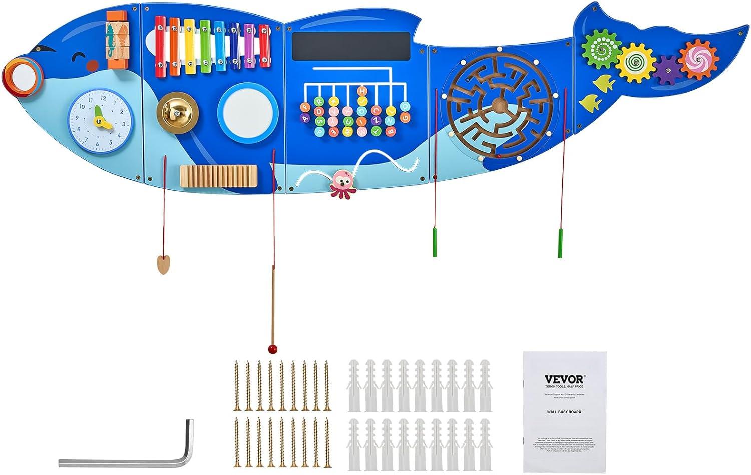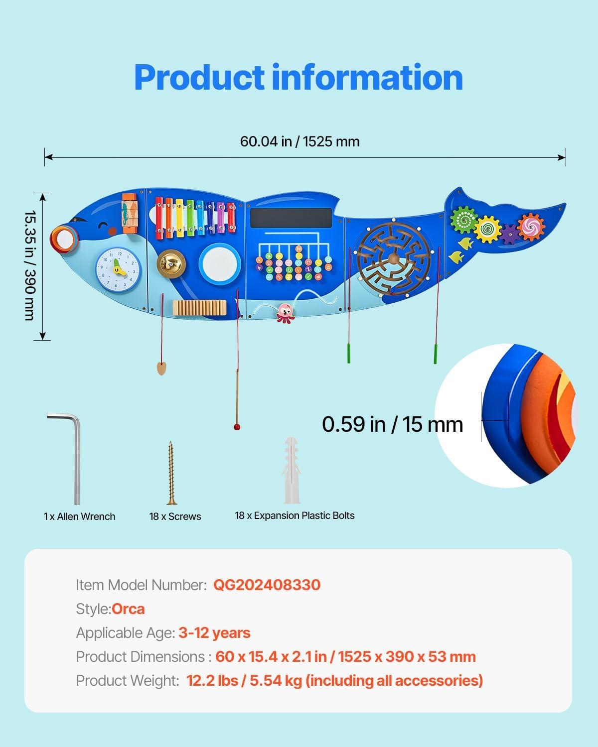 VEVOR Dog Activity Busy Board Panel, 12 Wall Activities Board, Montessori Sensory Wall Panel for Kids 3-12 Years, Sensory Wall Activity Panel, Ideal for Toddler Playroom Nursery Classroom(Orca)
