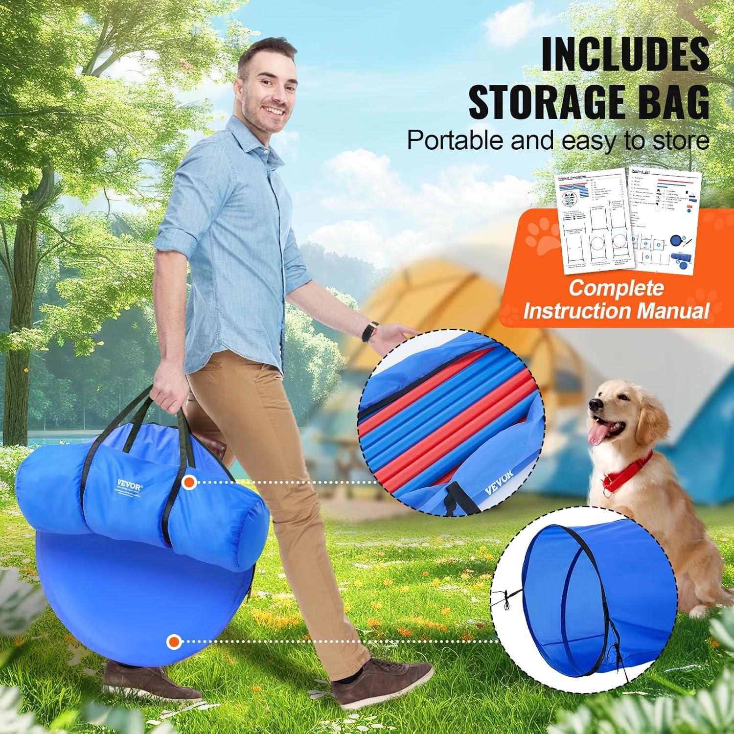 VEVOR Dog Agility Training Equipment, Dog Agility Course Backyard Set with Adjustable High Hurdles,6 Weave Poles,Tunnel,Jump Ring,Pause Box,Whistle,Foldable Bowl,Storage Bag, Puppy Obstacle Course Kit(7 Pcs Set)