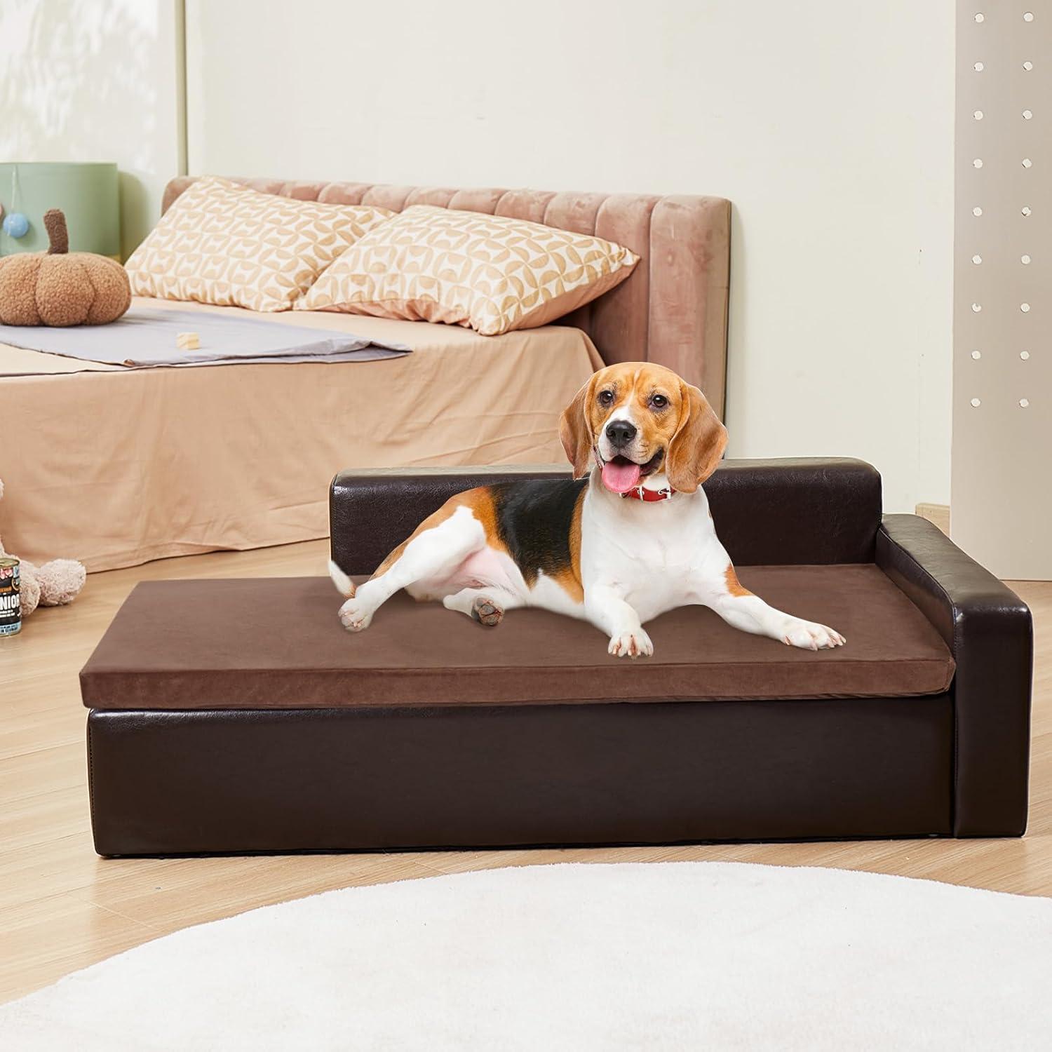 Suitable Size: Our pet sofa, measuring 28x20x12 inch, offers spacious comfort for pets of various sizes. Crafted with sturdy solid wood and plush fabric, it's durable and ideal for multi-pet households. Note: This pet sofa is only suitable for small dogs and cats, not suitable for large and medium-sized dogs