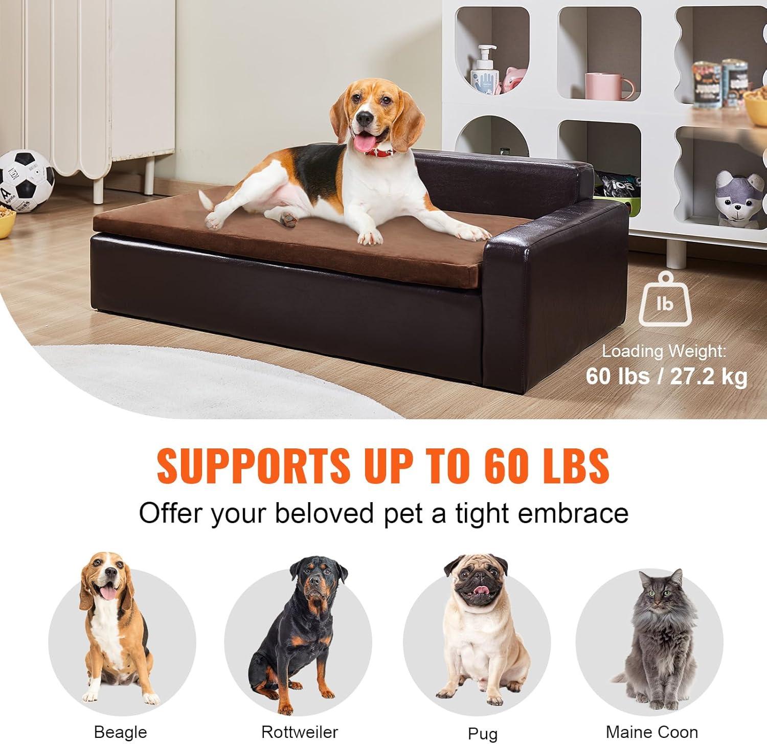 Peace of Mind Load-Bearing: With a robust capacity of 35 lbs, VEVOR dog sofa provides strong support for breeds like bulldogs or lively poodles, offering a secure retreat for your pets. Recommend pet types: small-sized dogs and cats. Note: Pets under 22.5″ in length can lie flat, while pets over 22.5″ can only sit or lie halfway.