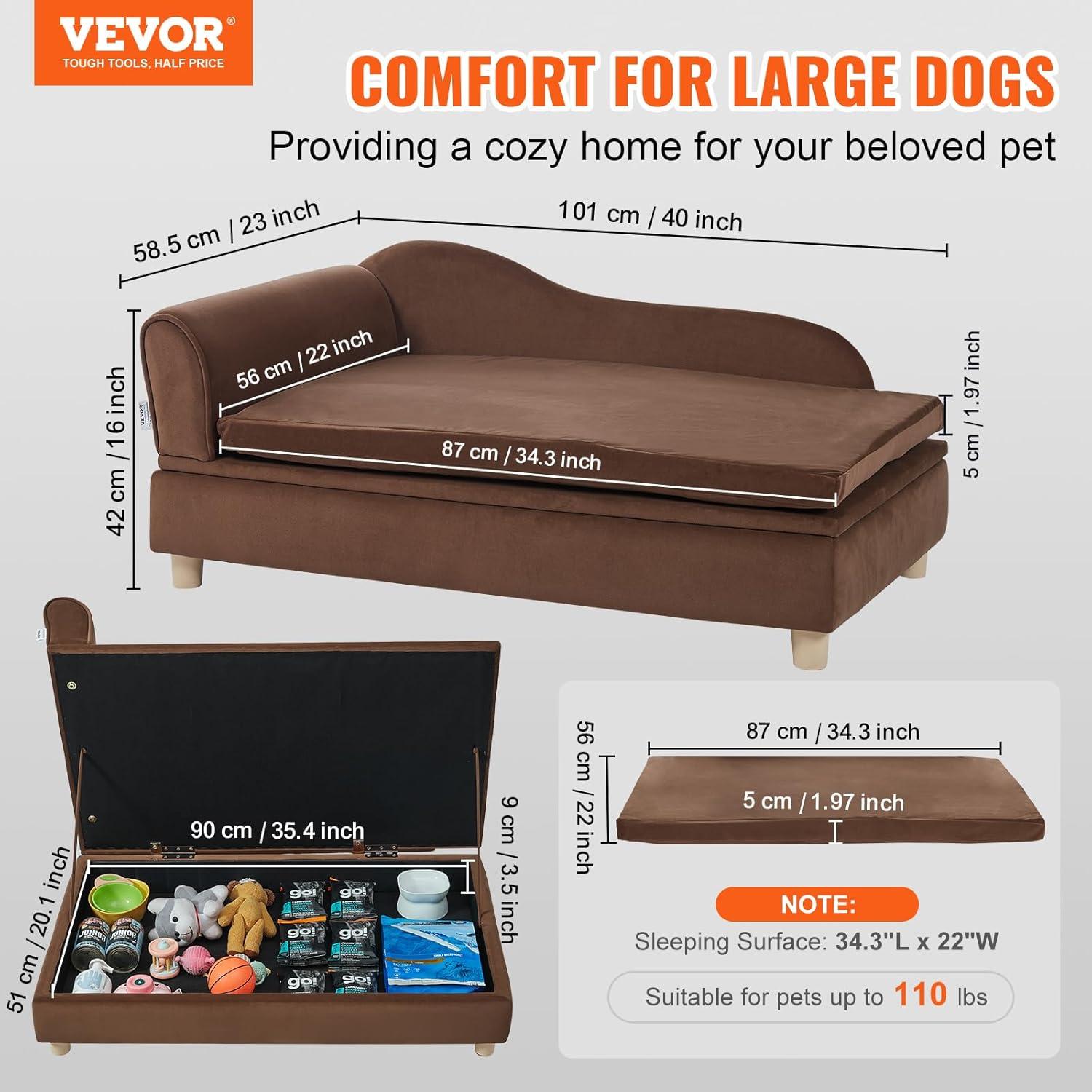 Peace of Mind Load-Bearing: With a robust capacity of 35 lbs, VEVOR dog sofa provides strong support for breeds like bulldogs or lively poodles, offering a secure retreat for your pets. Recommend pet types: small-sized dogs and cats. Note: Pets under 22.5″ in length can lie flat, while pets over 22.5″ can only sit or lie halfway.