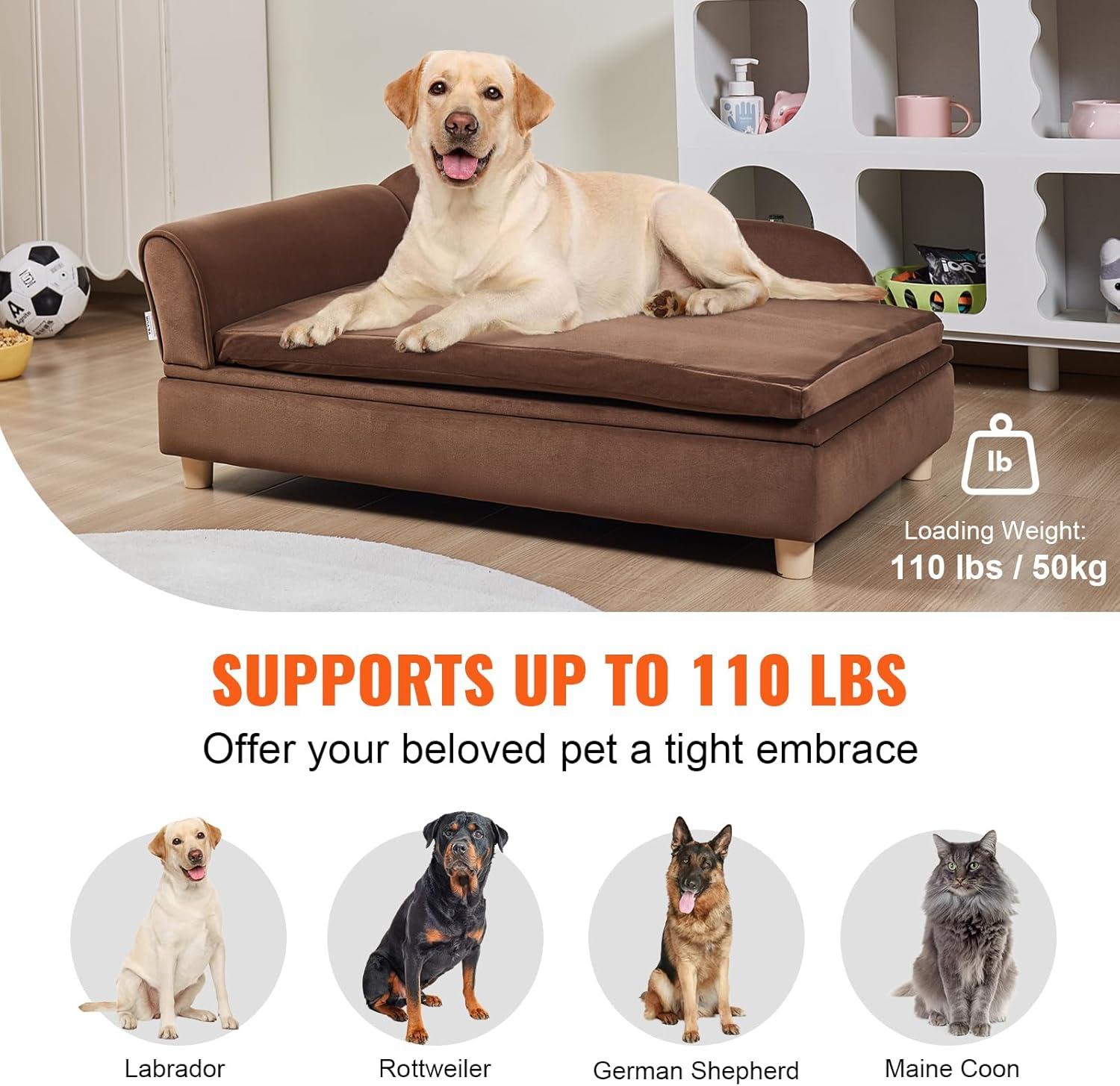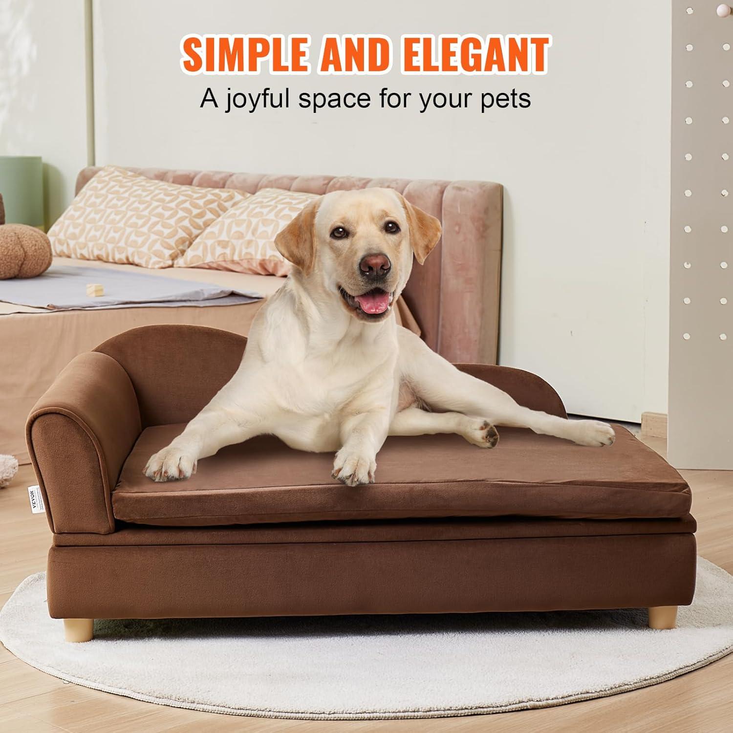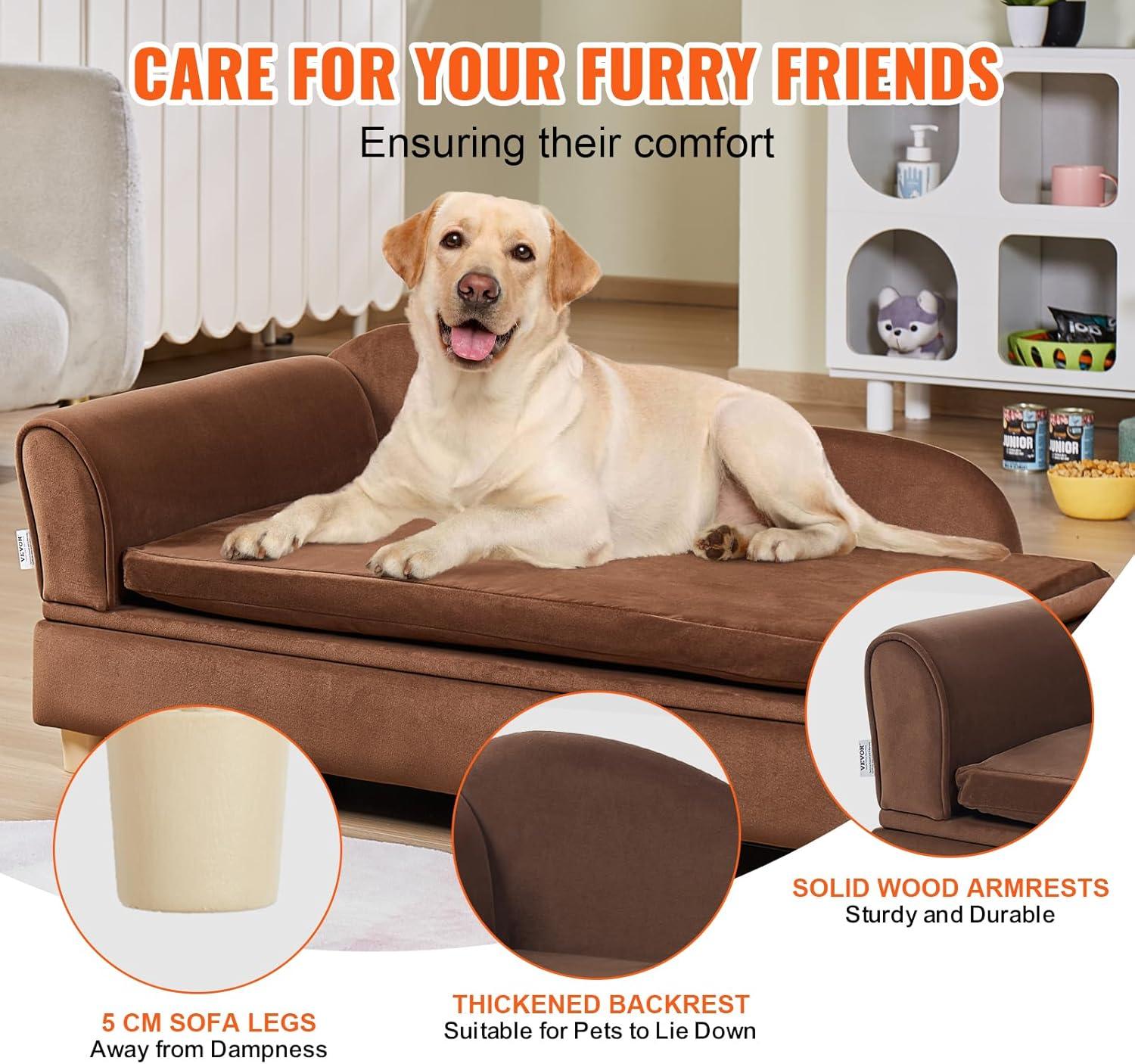 VEVOR Dog Bed, Dog Couch for Small Dogs and Cats, Soft Velvety Pet Sofa and Chair, 35 lbs Load Capacity, Blue(Brown)