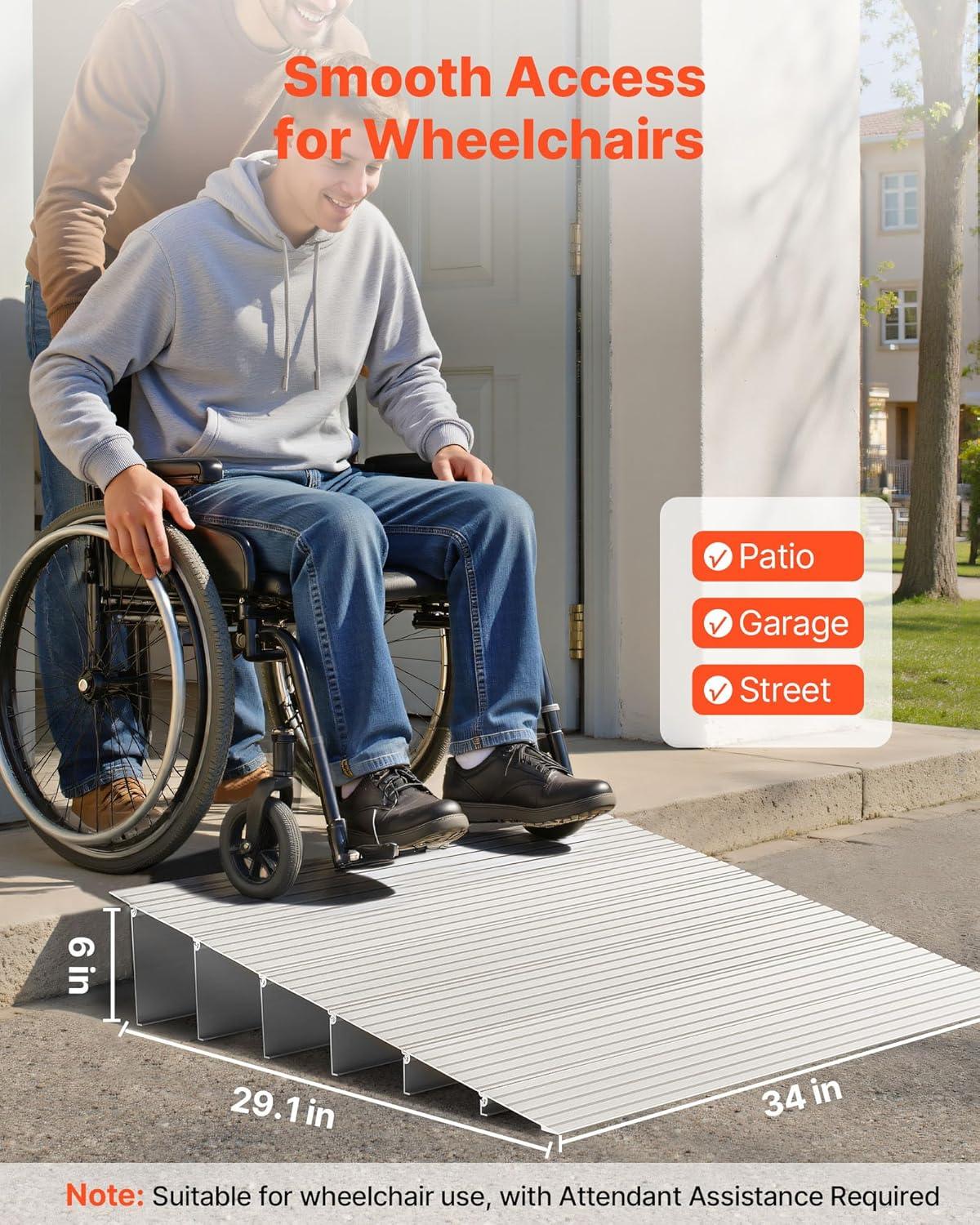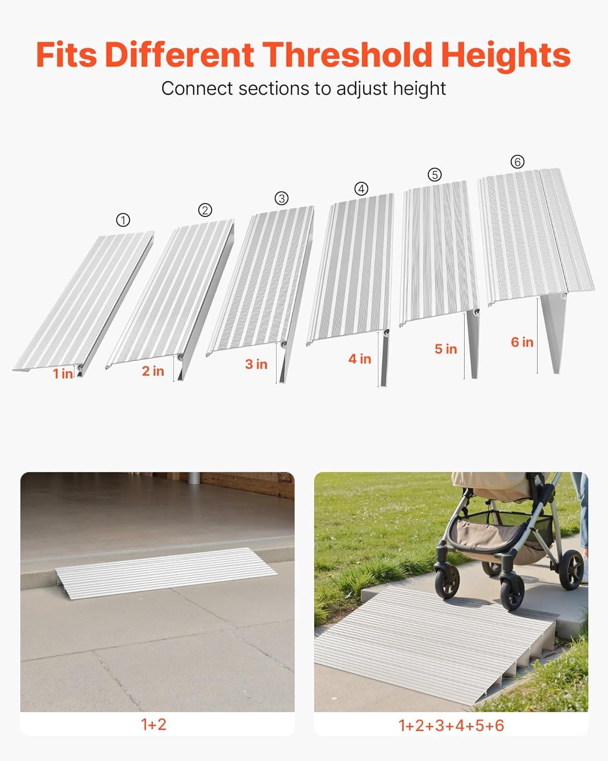 VEVOR Door Threshold Ramp, 1 inch Rise, Aluminum Alloy Threshold Ramp Rated 800 lbs Load Capacity, Handicap Ramps for Home Steps for Wheelchair, Scooters, Power Chairs, Walkers, Bicycle, Tricycle(6 Inch)