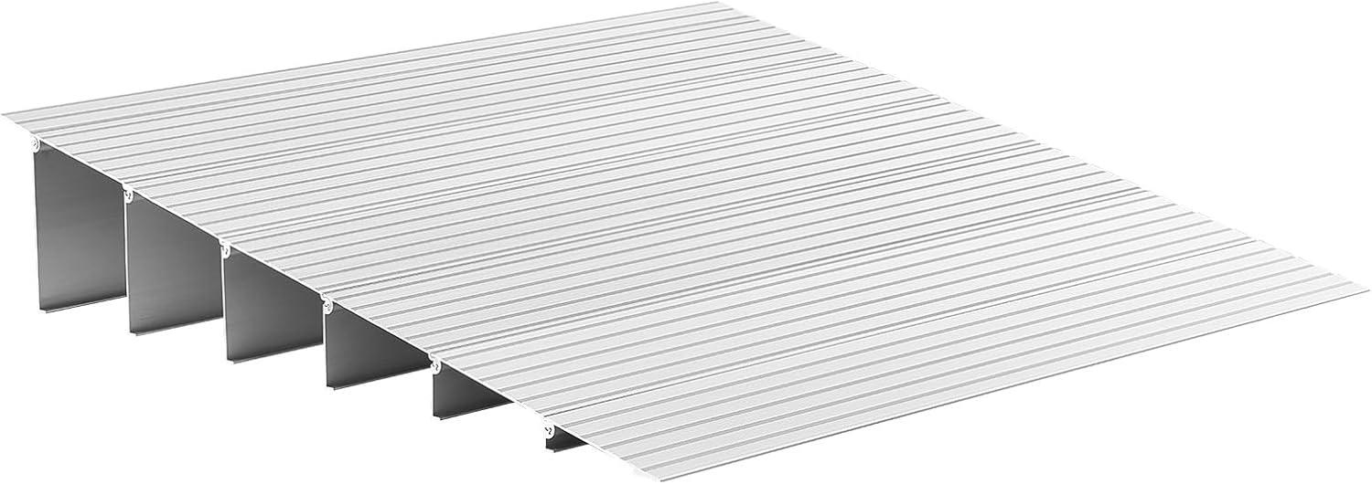 High-quality Aluminum & Slip-resistant Surface: The handicap ramp is constructed from anodized aluminum, offering rust and wear resistance. Featuring a slip-resistant surface, it performs reliably indoors or outdoors, maintaining strength in rain or sunshine while retaining a clean appearance.