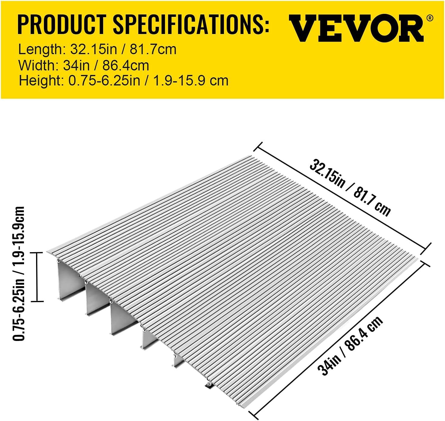 VEVOR Door Threshold Ramp, 6" Rise Door Ramp Aluminum Threshold Ramp for Doorways Rated 802 lbs Load Capacity, Adjustable Entry Ramp for Wheelchairs, Scooters, and Power Chairs