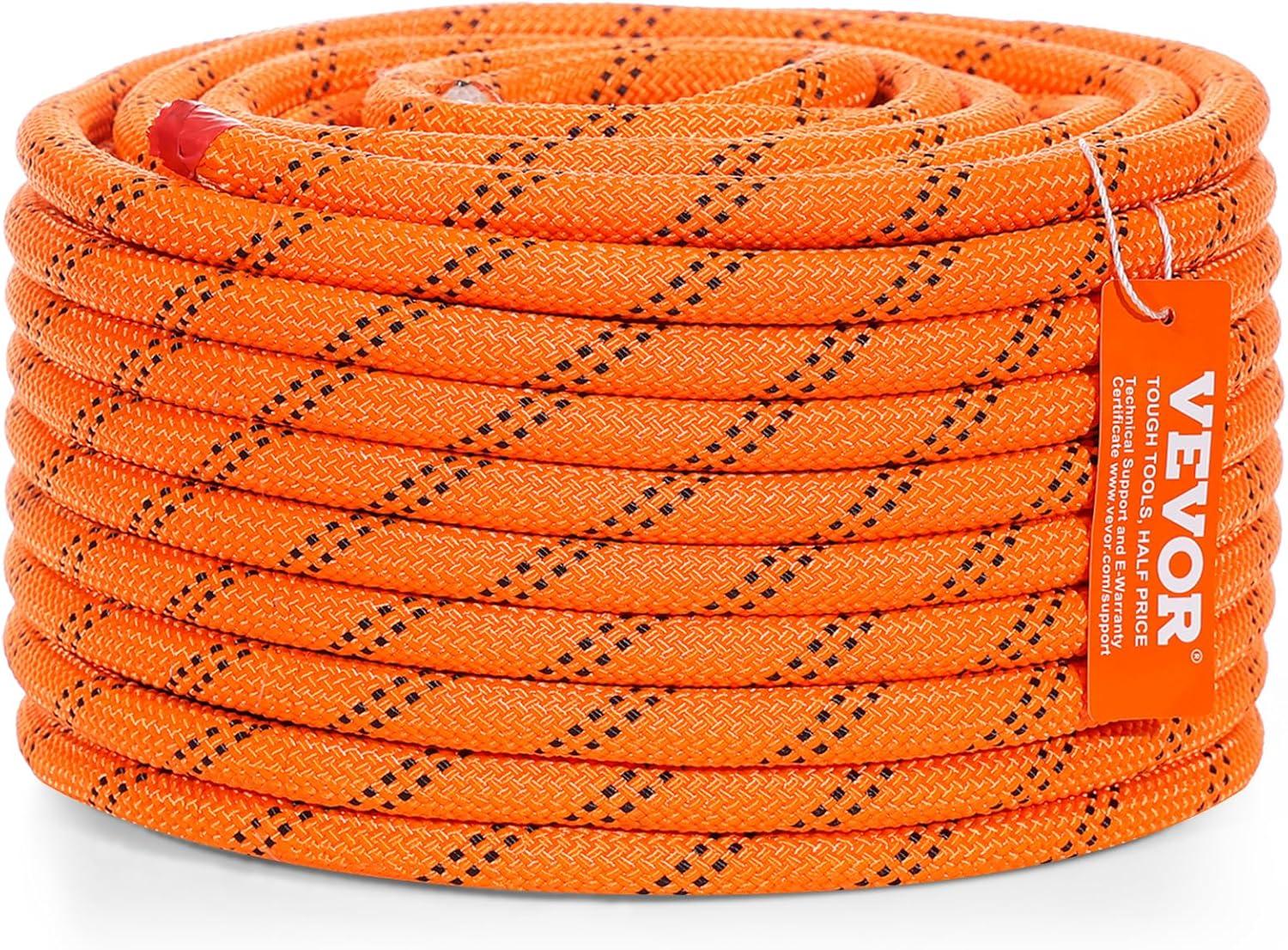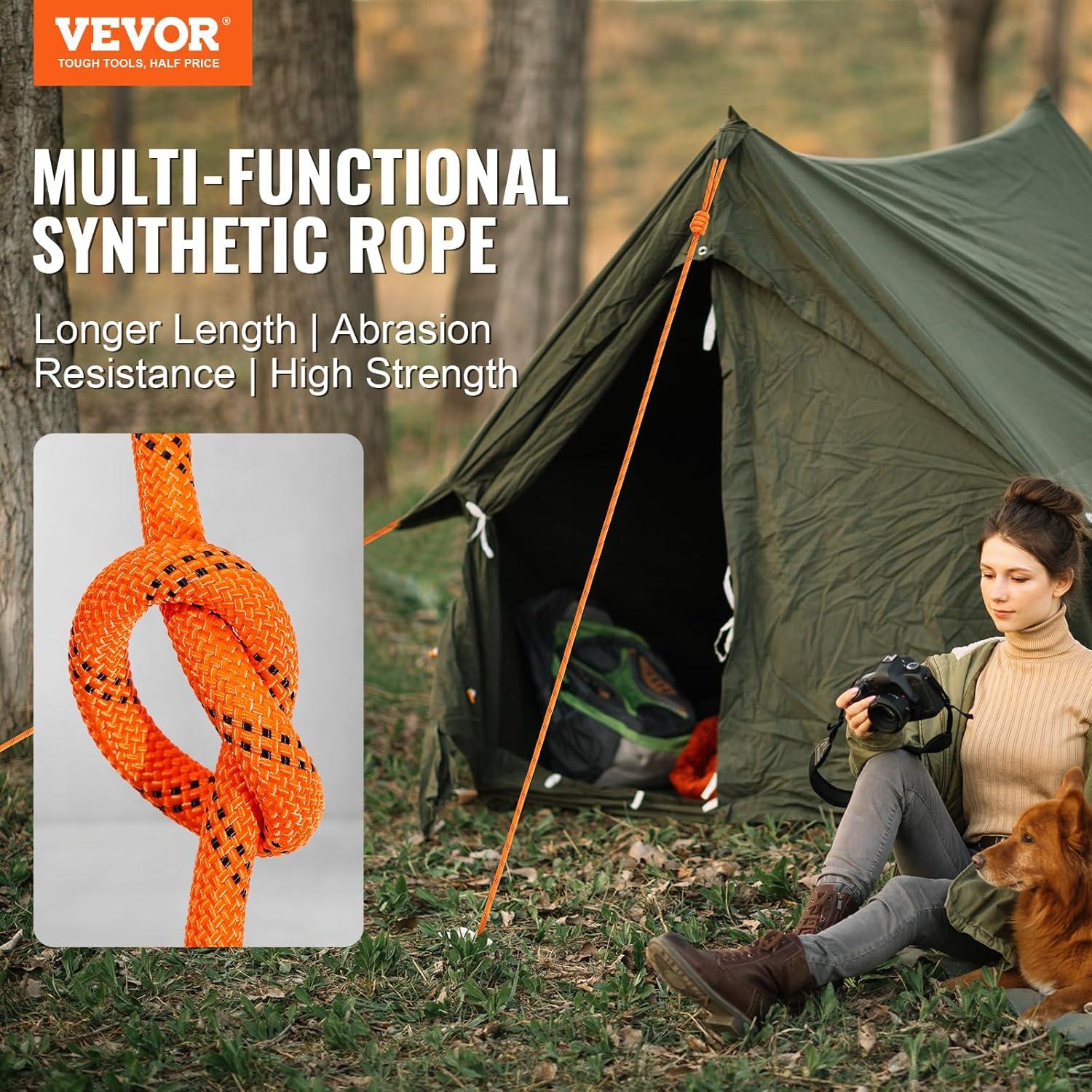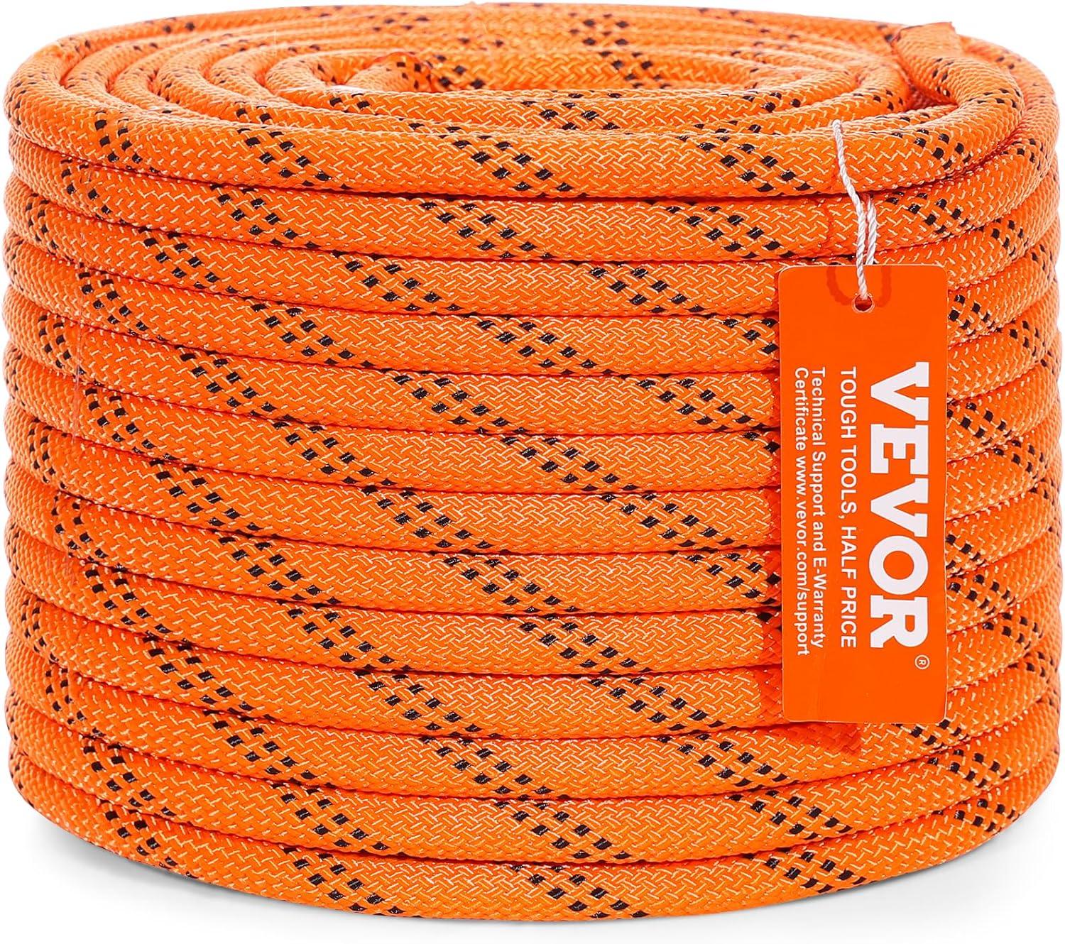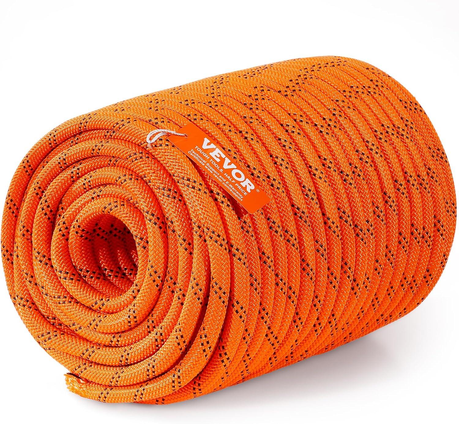 High Strength Rope: VEVOR 1/2 inch diameter double braided polyester rope comes with a breaking strength of 8000 LBS/35.58kN and 220 ft/67.06 m in length. The quality is tough and reliable to handle various professional tasks as per what you need.