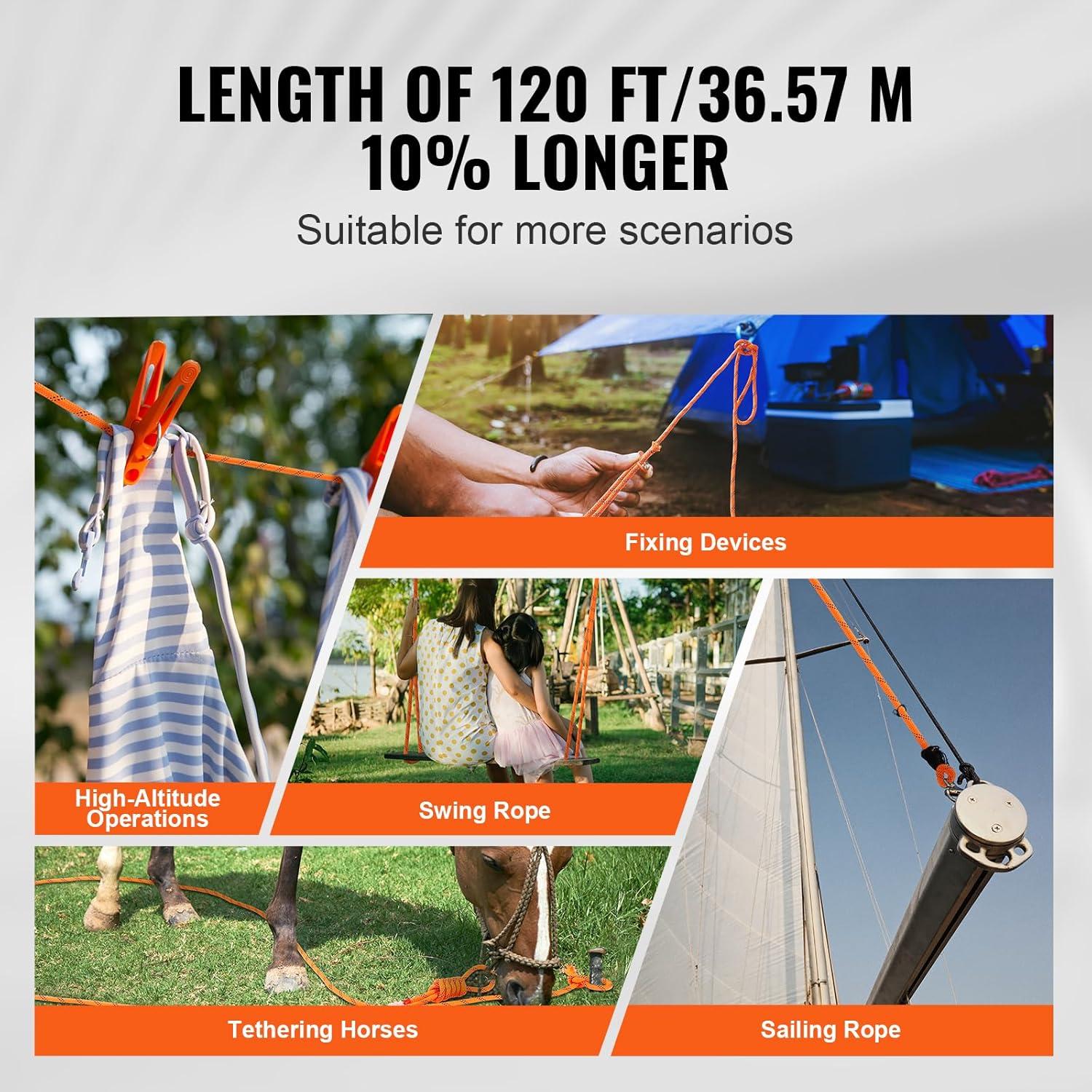 20% Length Increase: With a 20% increase in length, our outdoor rope now reaches an impressive 220 ft/67.06 m. That's as tall as a 33-story building! Perfect for all your daily aerial work needs, whether it's home projects or outdoor adventures.