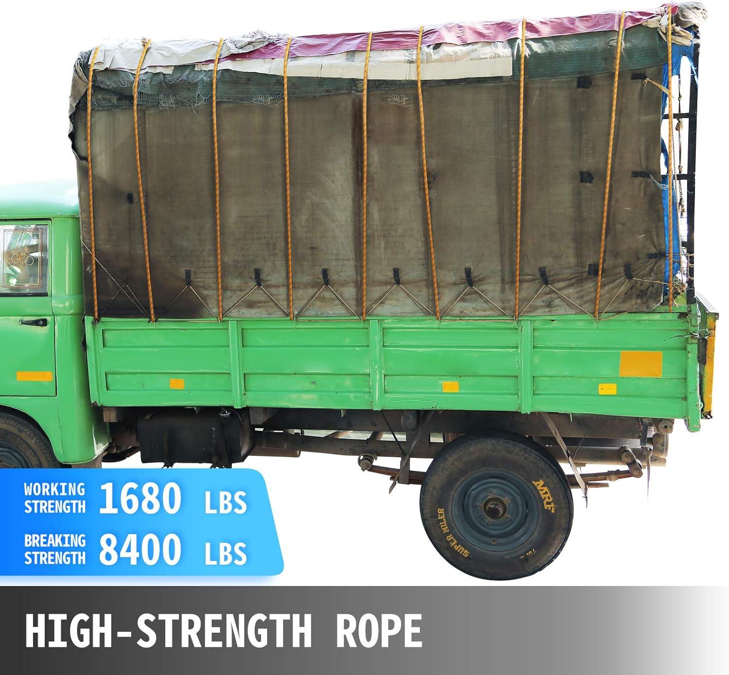 8000 LBS/35.58kN Breaking Strength: VEVOR 1/2″ polyester rope performs an outstanding pulling strength. It's suggested to work within 1200 LBS and handle up to 8000 LBS at its breaking strength; this ensures the maximum level of security during rope operations.