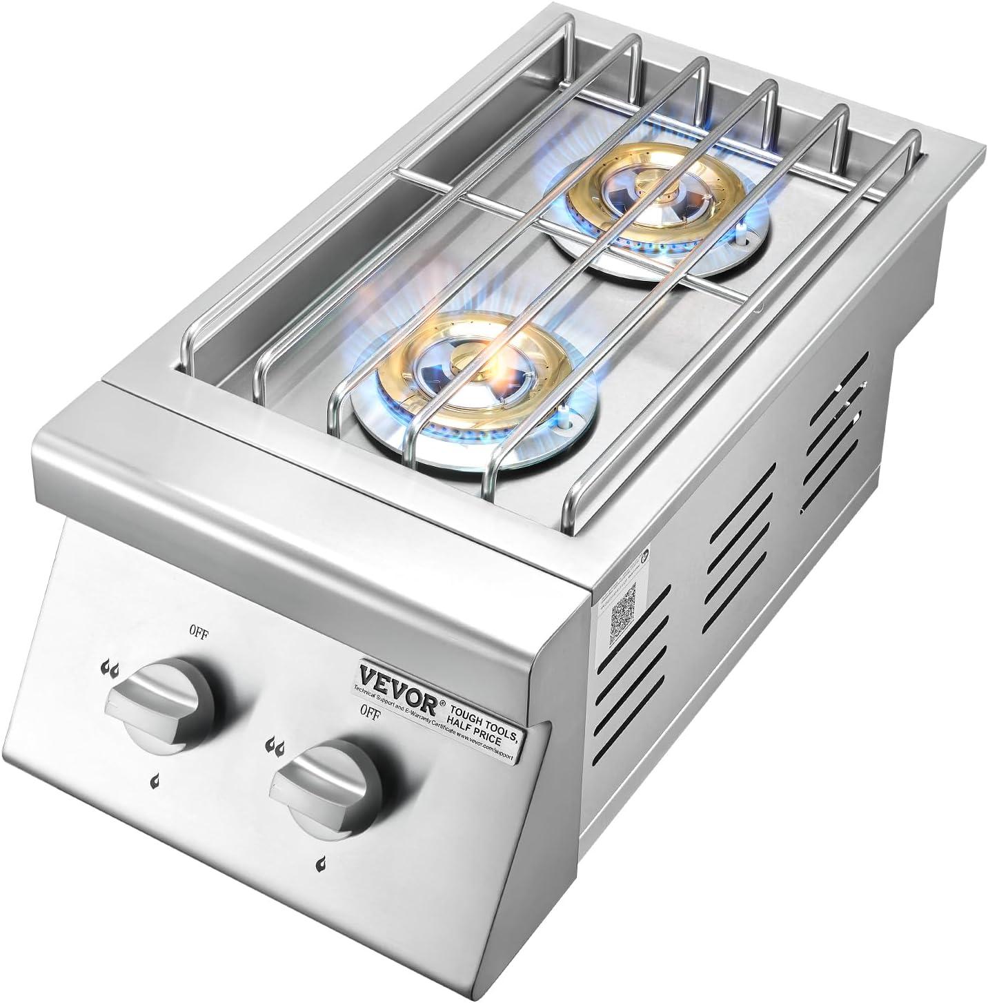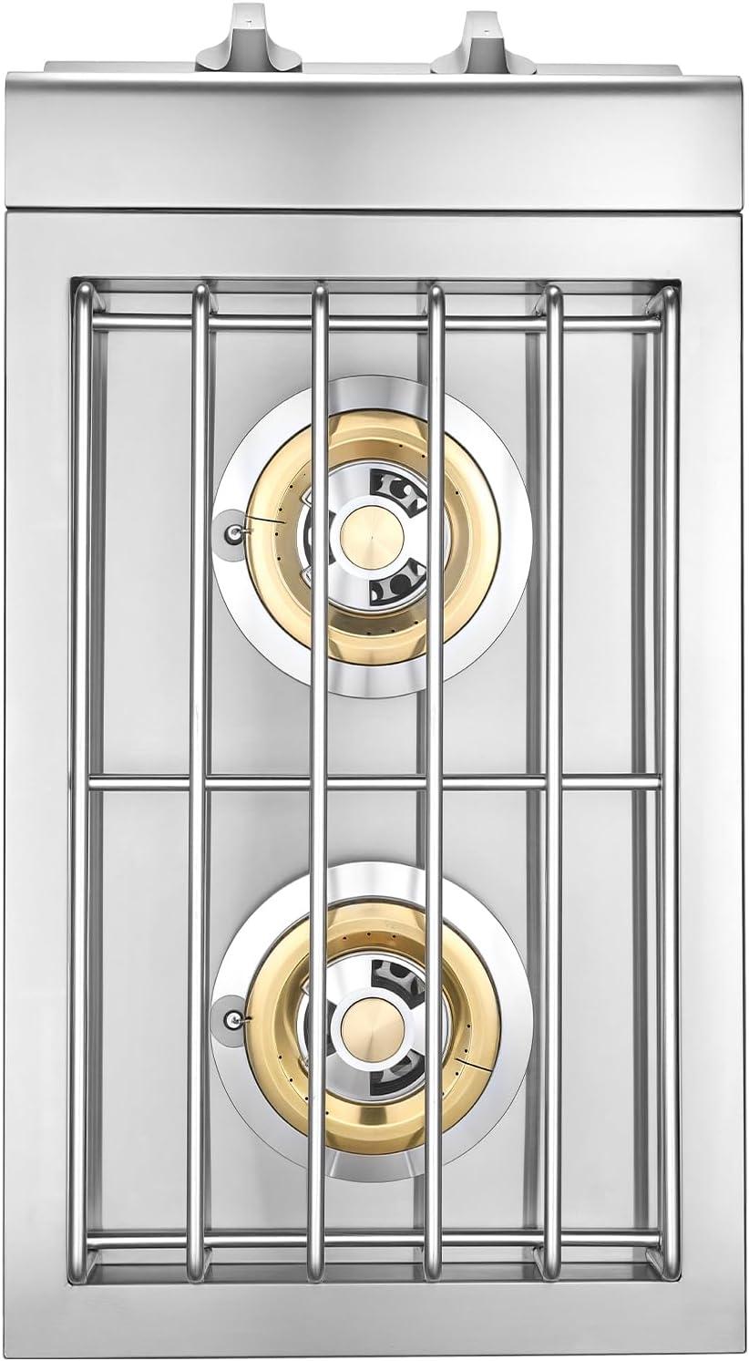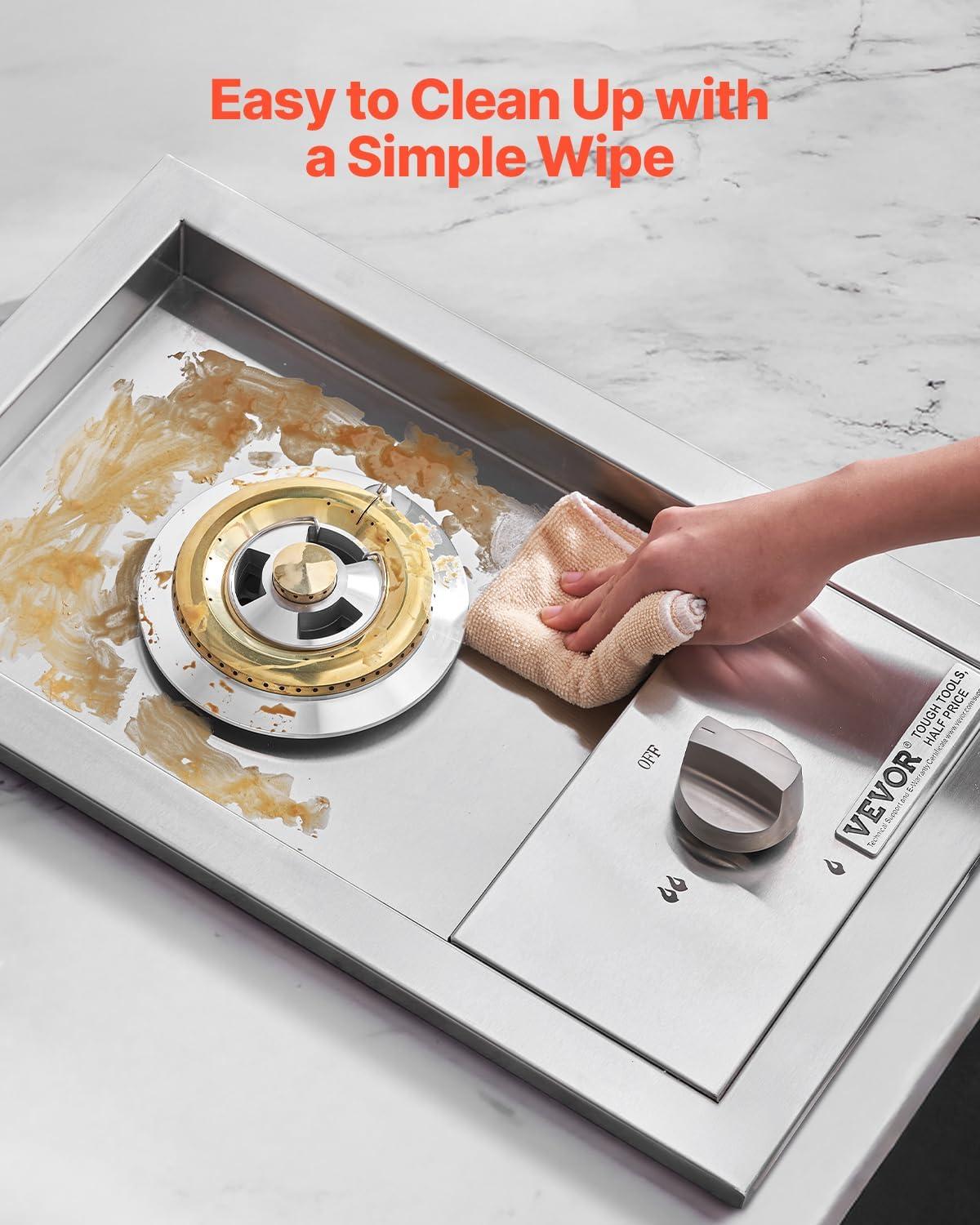 Strong Flame: Equipped with two efficient 17,000 BTU burners, this double side burners provide powerful heat output, allowing you to stir-fry and simmer sauces simultaneously. The built-in burners ensure stable cooking even in windy conditions. The control knobs with LED light provide clearer operation at night, giving you full control over the flame
