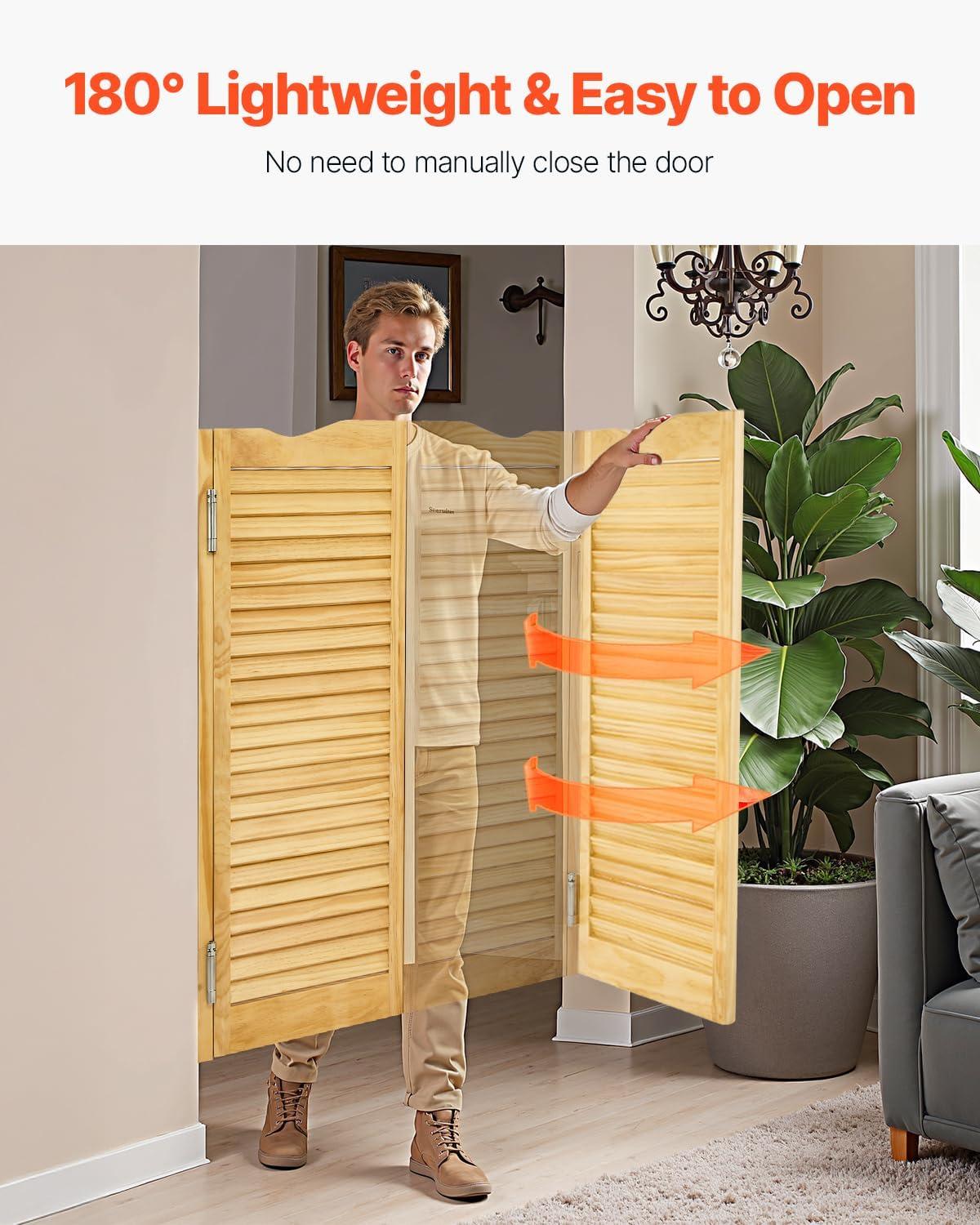 VEVOR Double Saloon Swinging Doors, 32" W x 42" H Arched Top Interior Swinging Cafe Doors, Pine Wood, with Hinges & Hardware Kit, Easy to Install, for Hallway Kitchen Bar Pub Entrance, Log Color(36" W x 42" H)