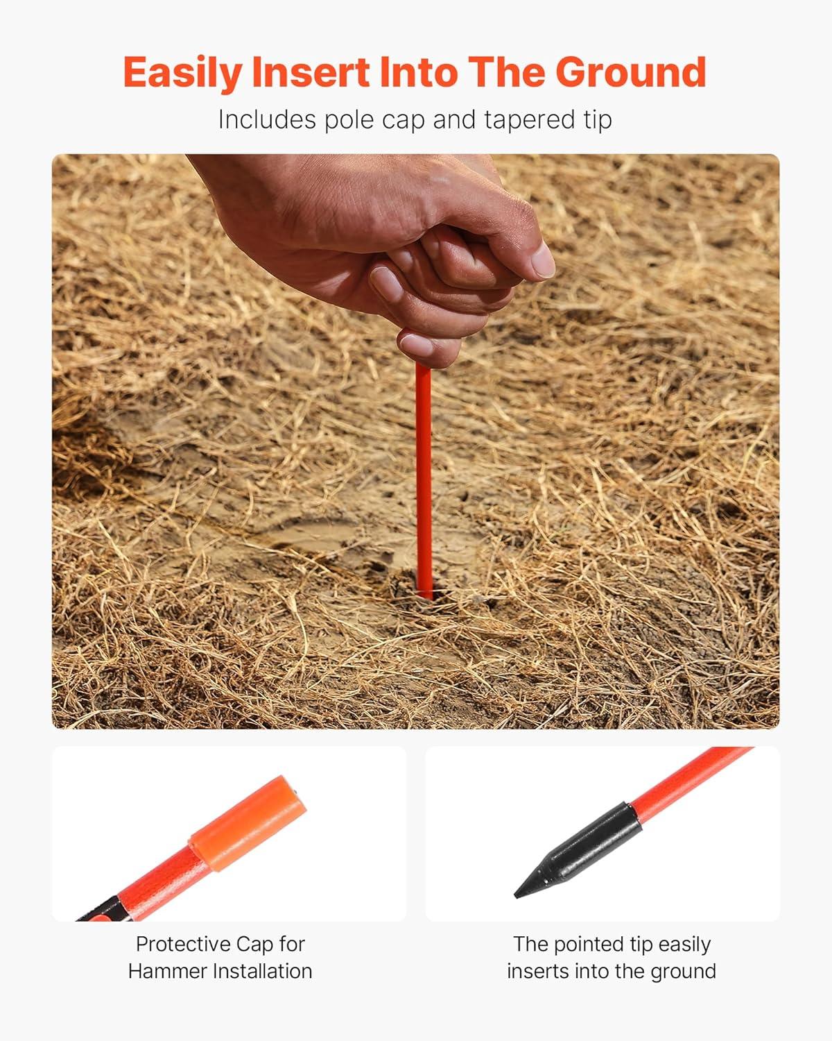 High-Quality Material: The orange driveway stakes are made from non-alkali fiberglass, making them lightweight and strong with greater flexibility. They can withstand heavy snow and quickly rebound to their original shape, ensuring long-term use even in rainy and snowy conditions.