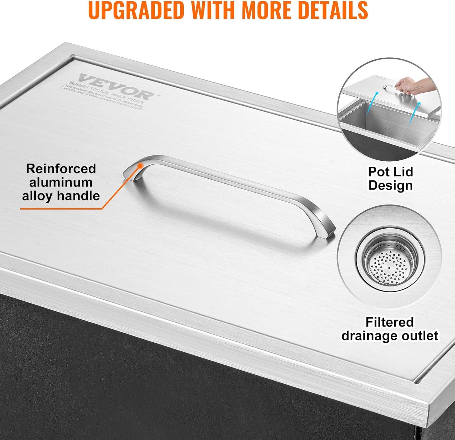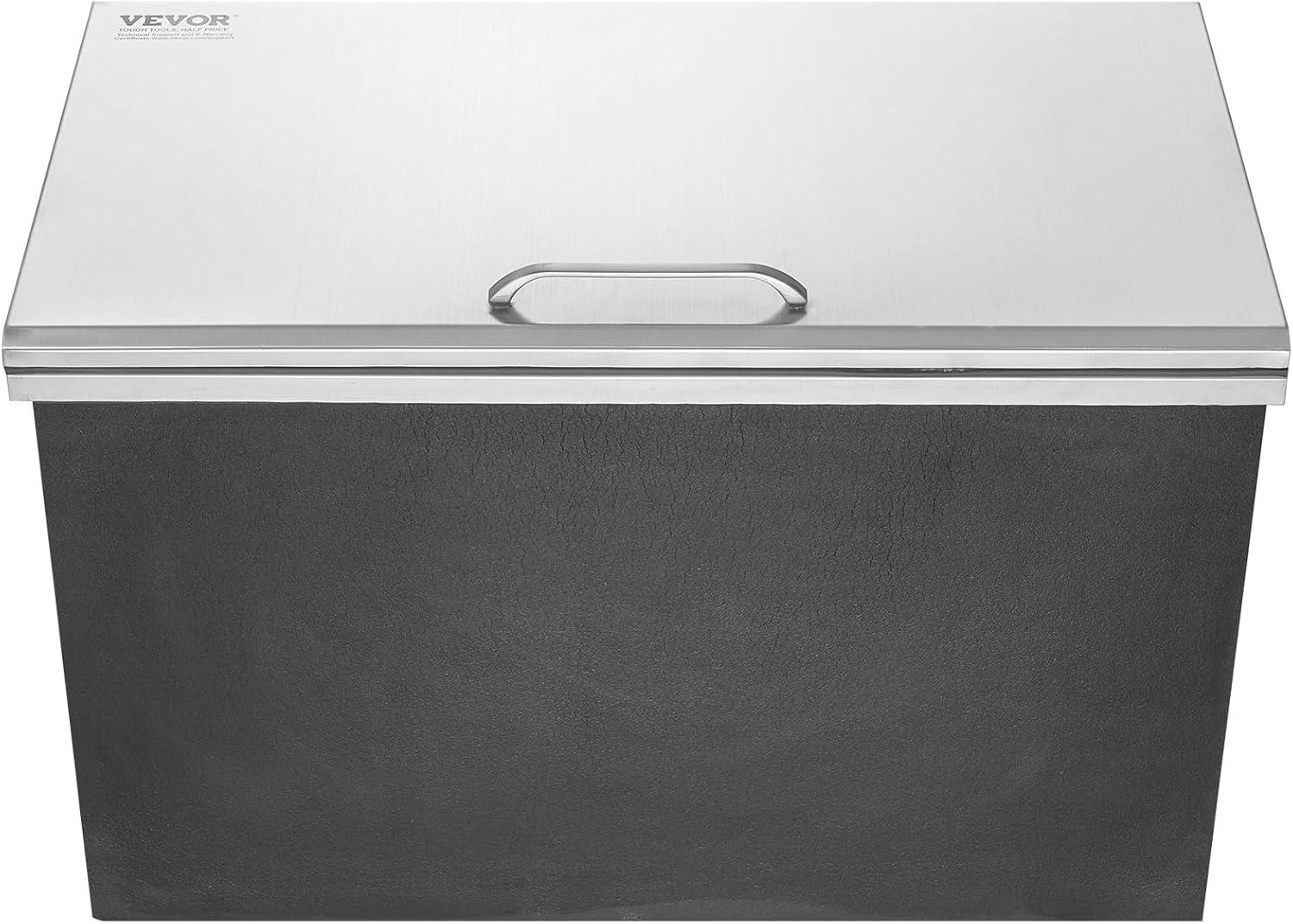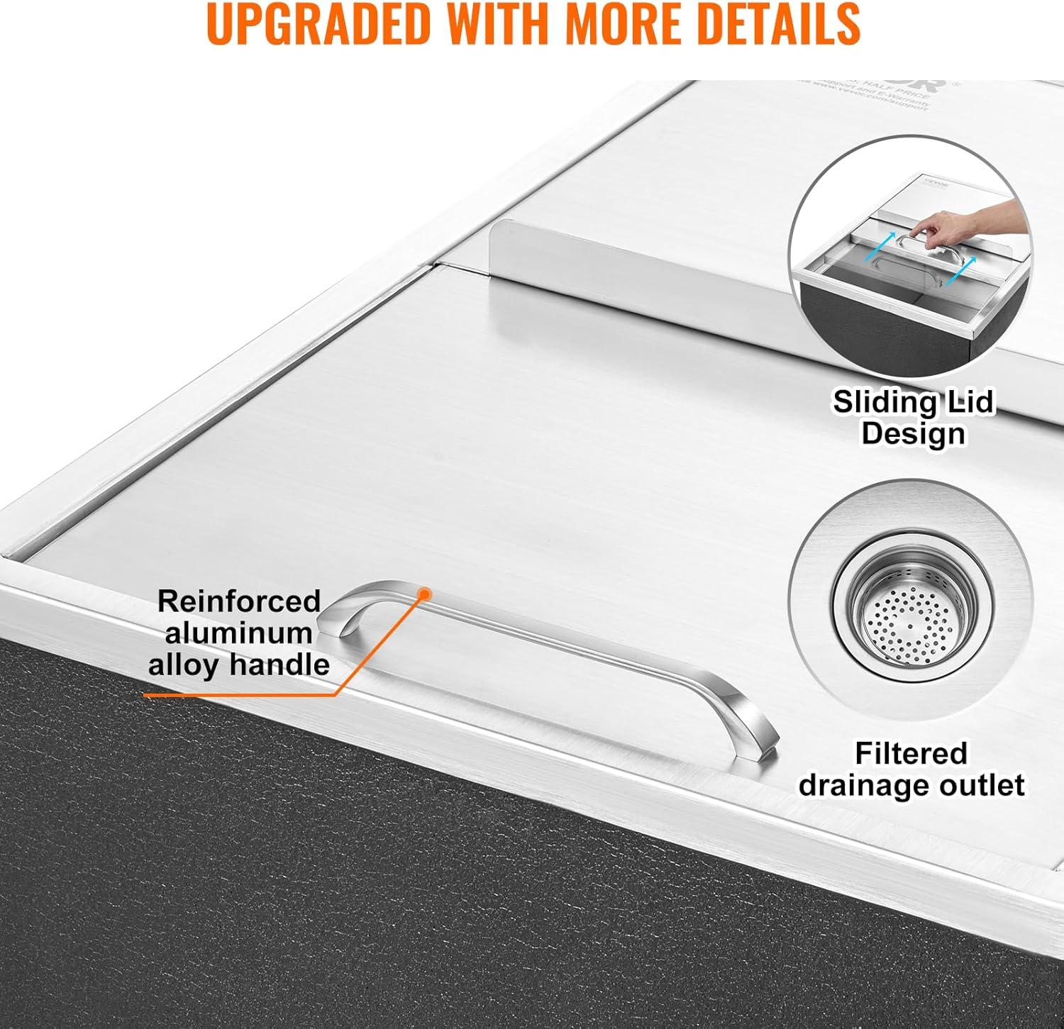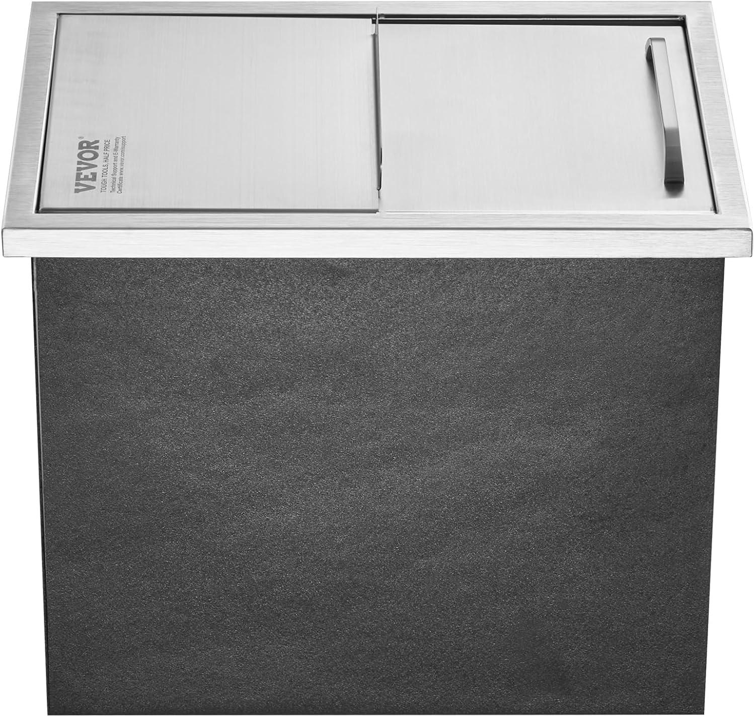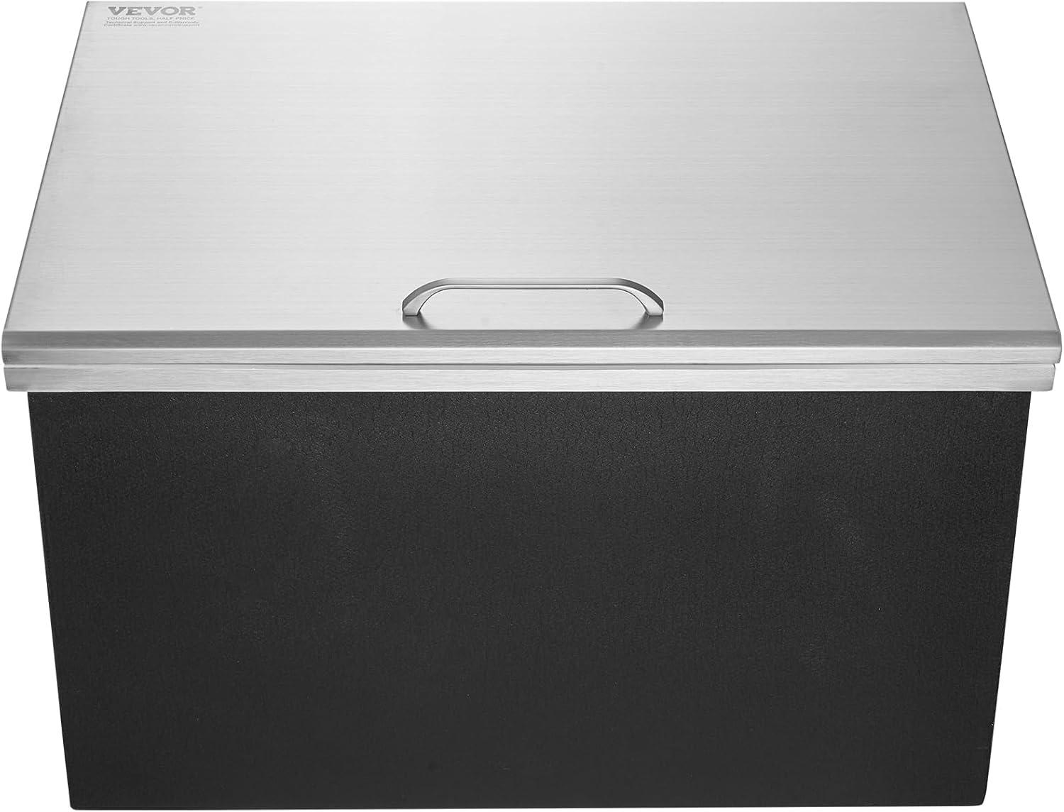 imageVEVOR Drop in Ice Chest 24quotL x 18quotW x 13quotH Stainless Steel Ice Cooler Commercial Ice Bin with Sliding Cover 409 qt Outdoor Kitchen Ice Bar Drainpipe and Drain Plug Included for Cold Wine BeerSilverblack