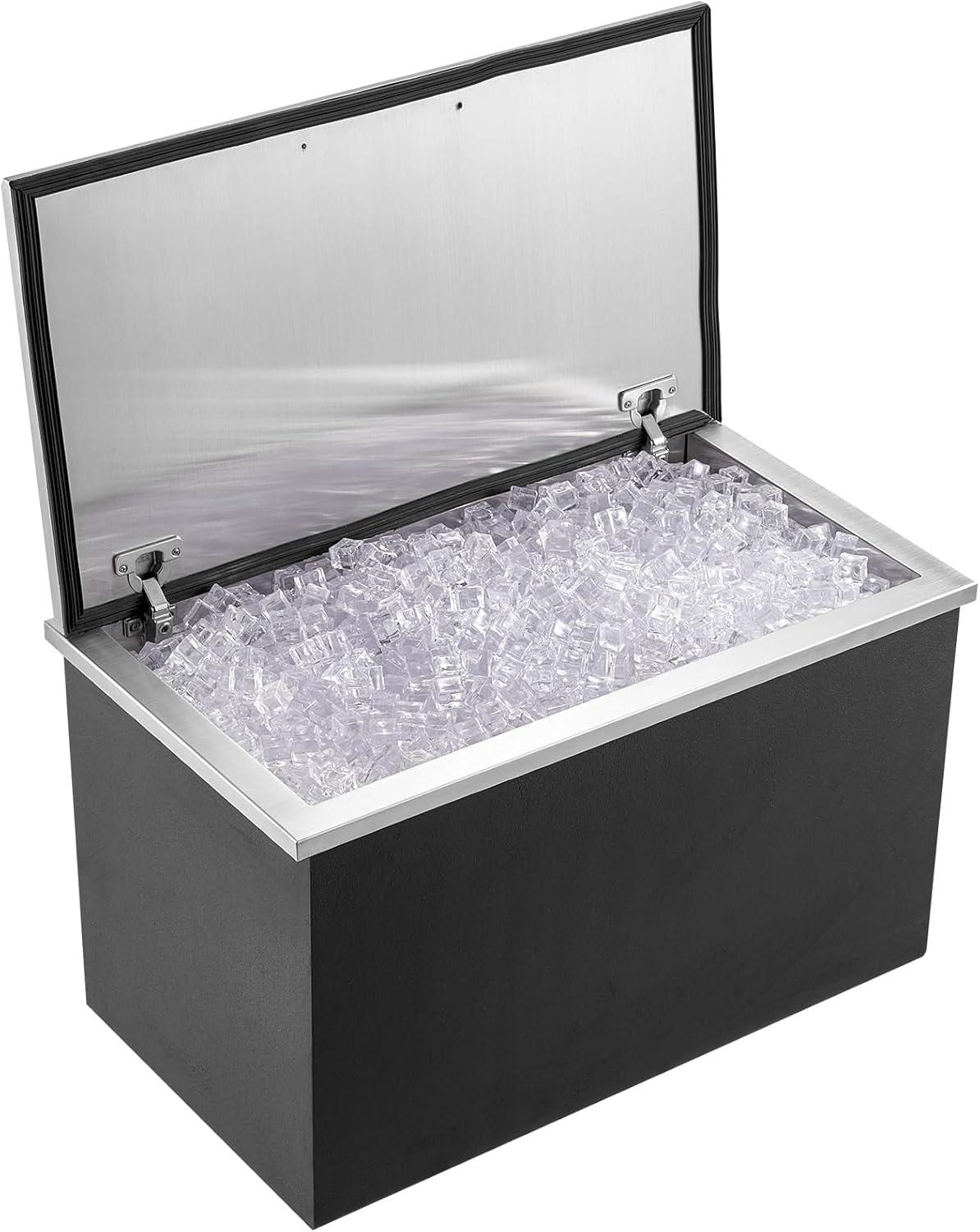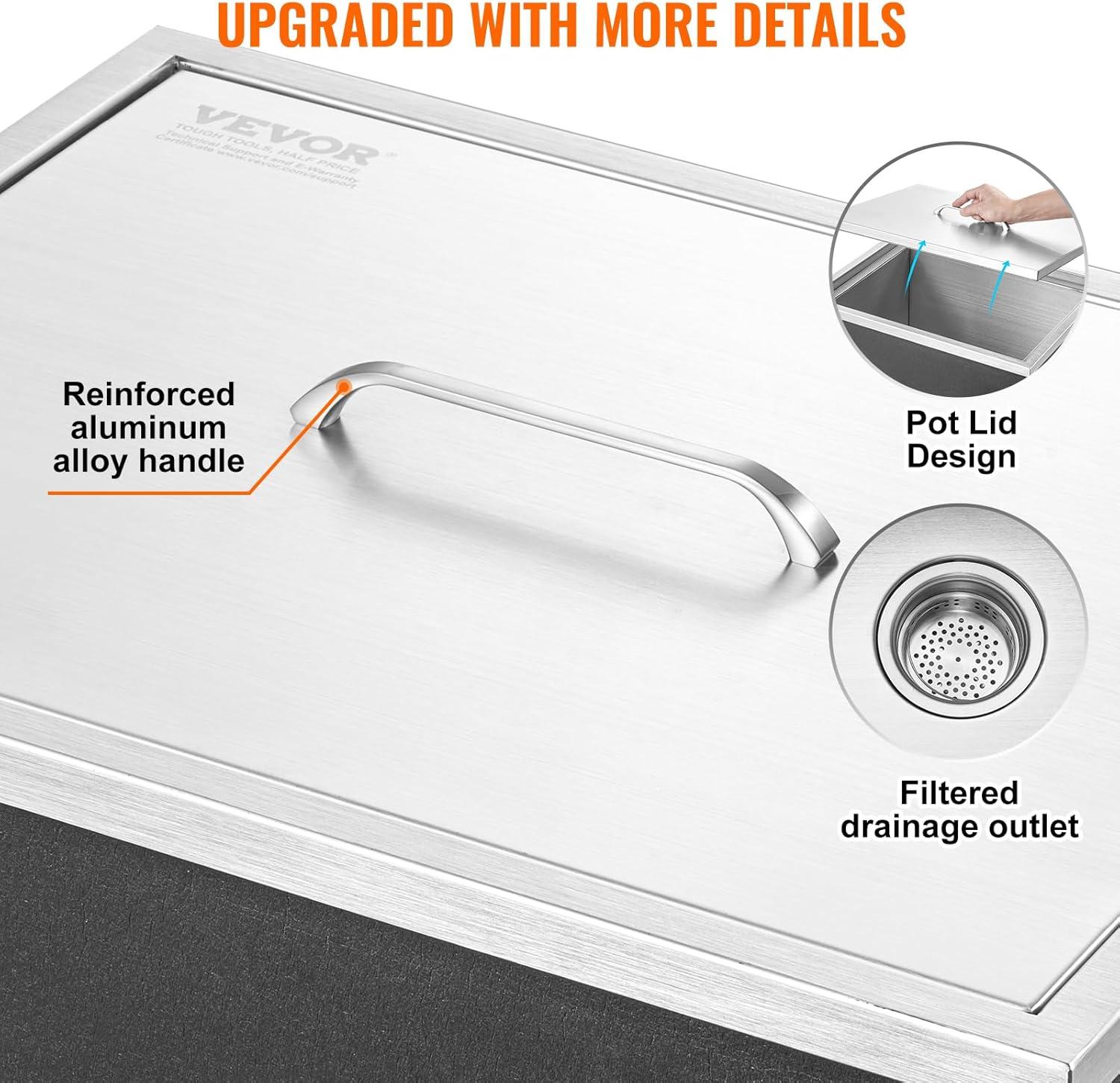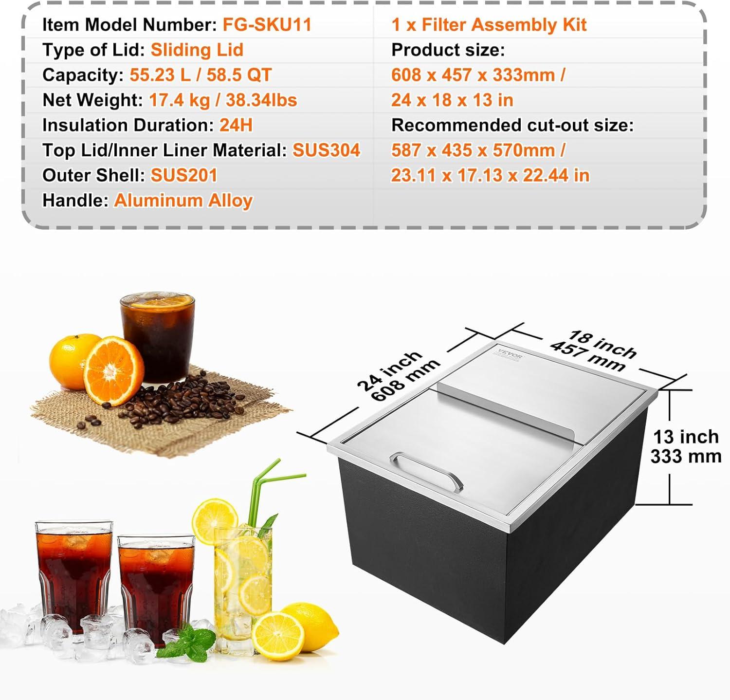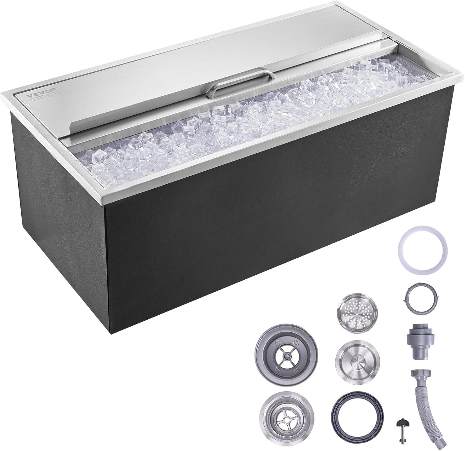 imageVEVOR Drop in Ice Chest 24quotL x 18quotW x 13quotH Stainless Steel Ice Cooler Commercial Ice Bin with Sliding Cover 409 qt Outdoor Kitchen Ice Bar Drainpipe and Drain Plug Included for Cold Wine BeerSilverblack
