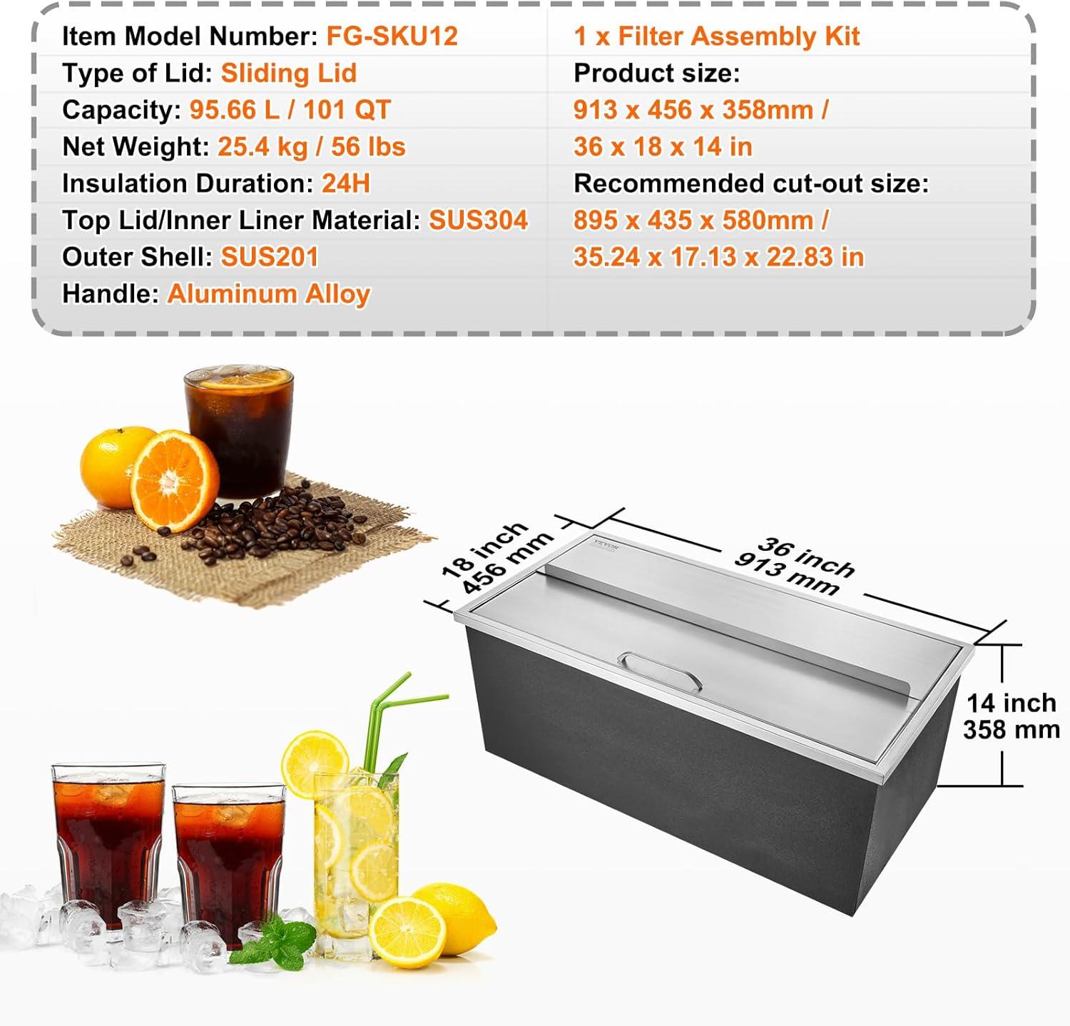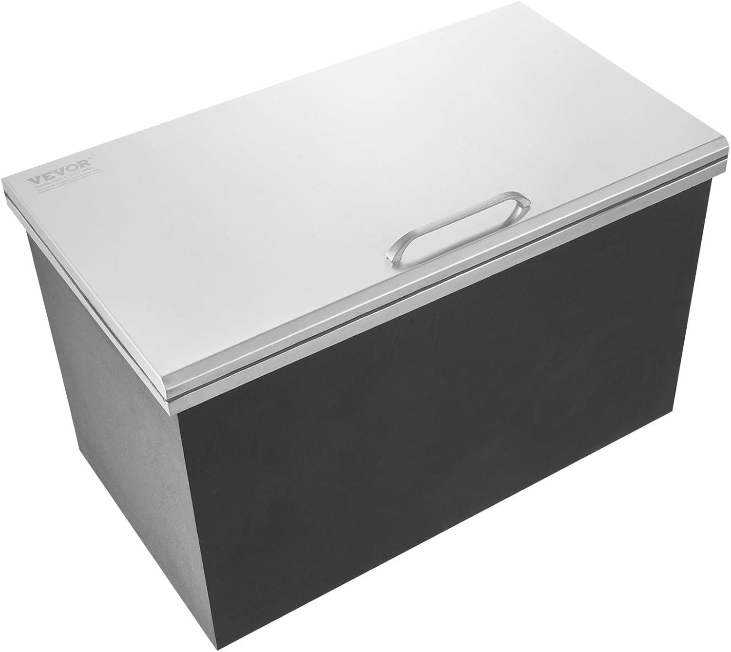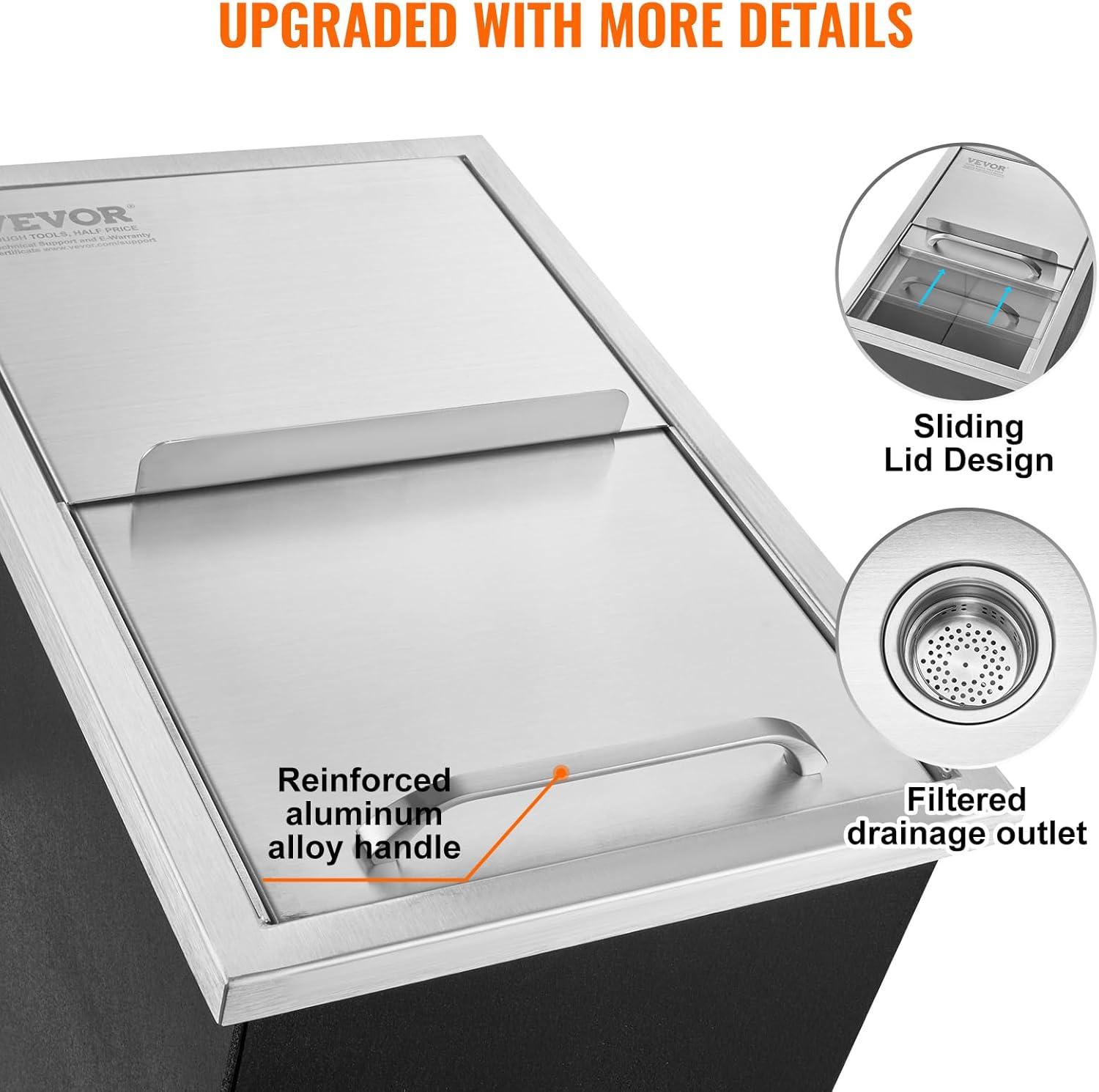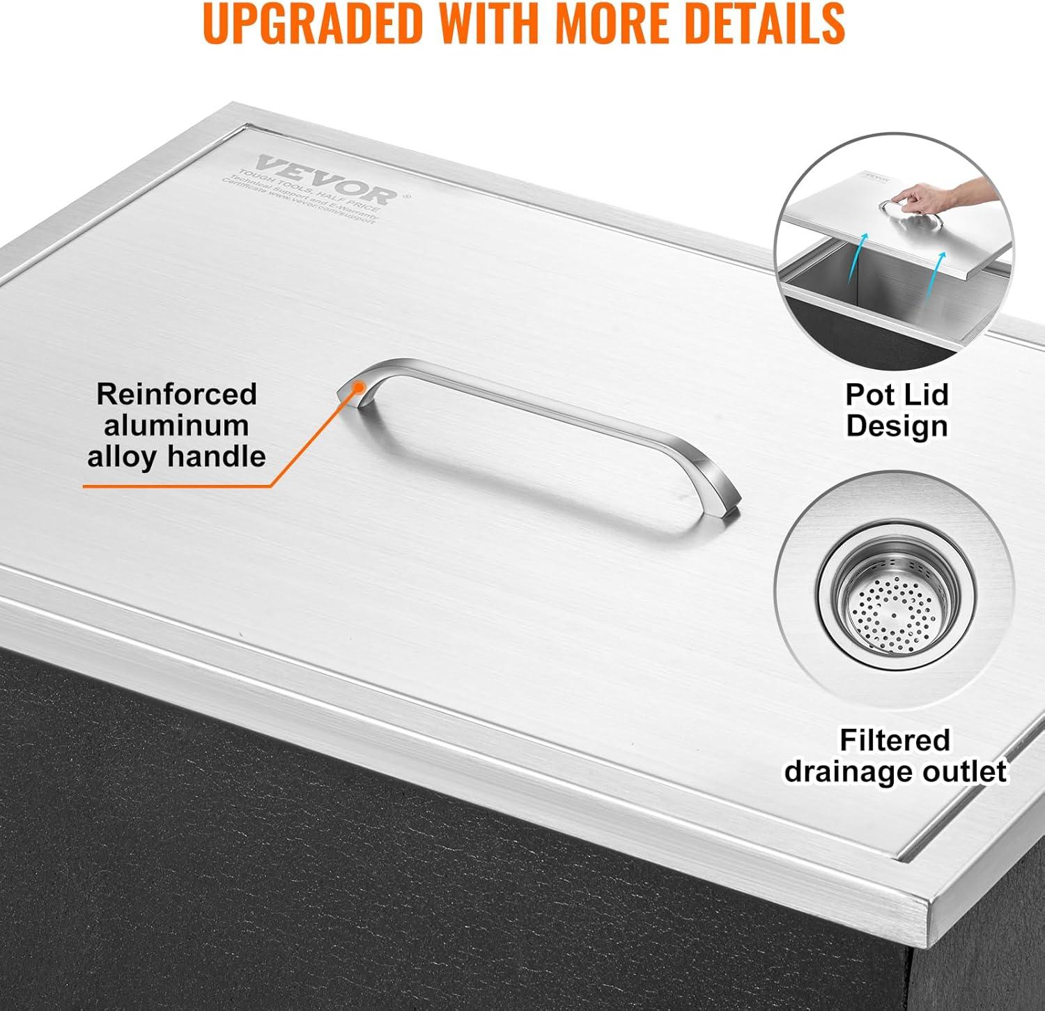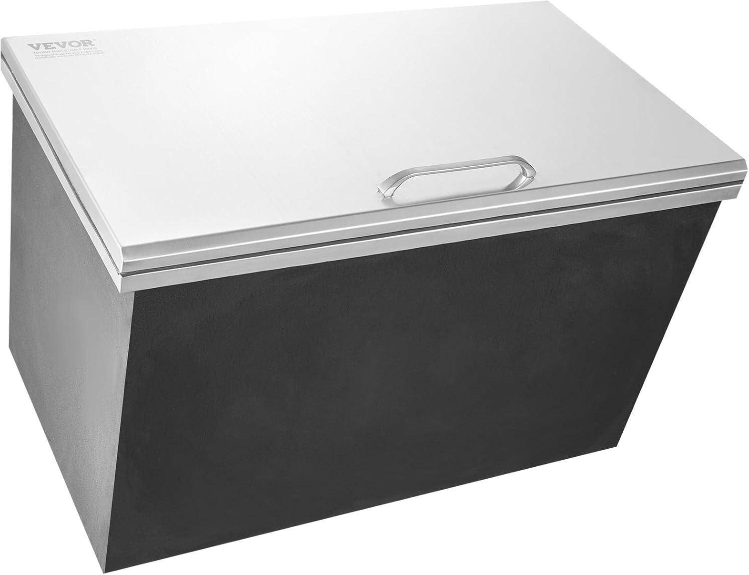 imageVEVOR Drop in Ice Chest 24quotL x 18quotW x 13quotH Stainless Steel Ice Cooler Commercial Ice Bin with Sliding Cover 409 qt Outdoor Kitchen Ice Bar Drainpipe and Drain Plug Included for Cold Wine BeerSilverblack