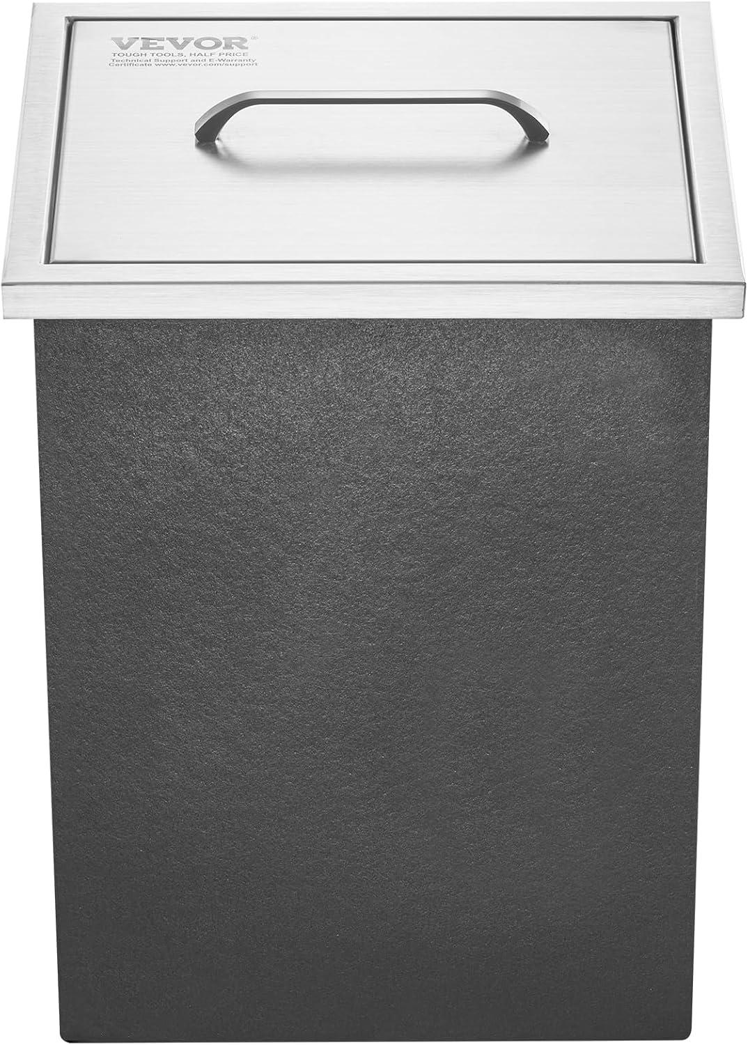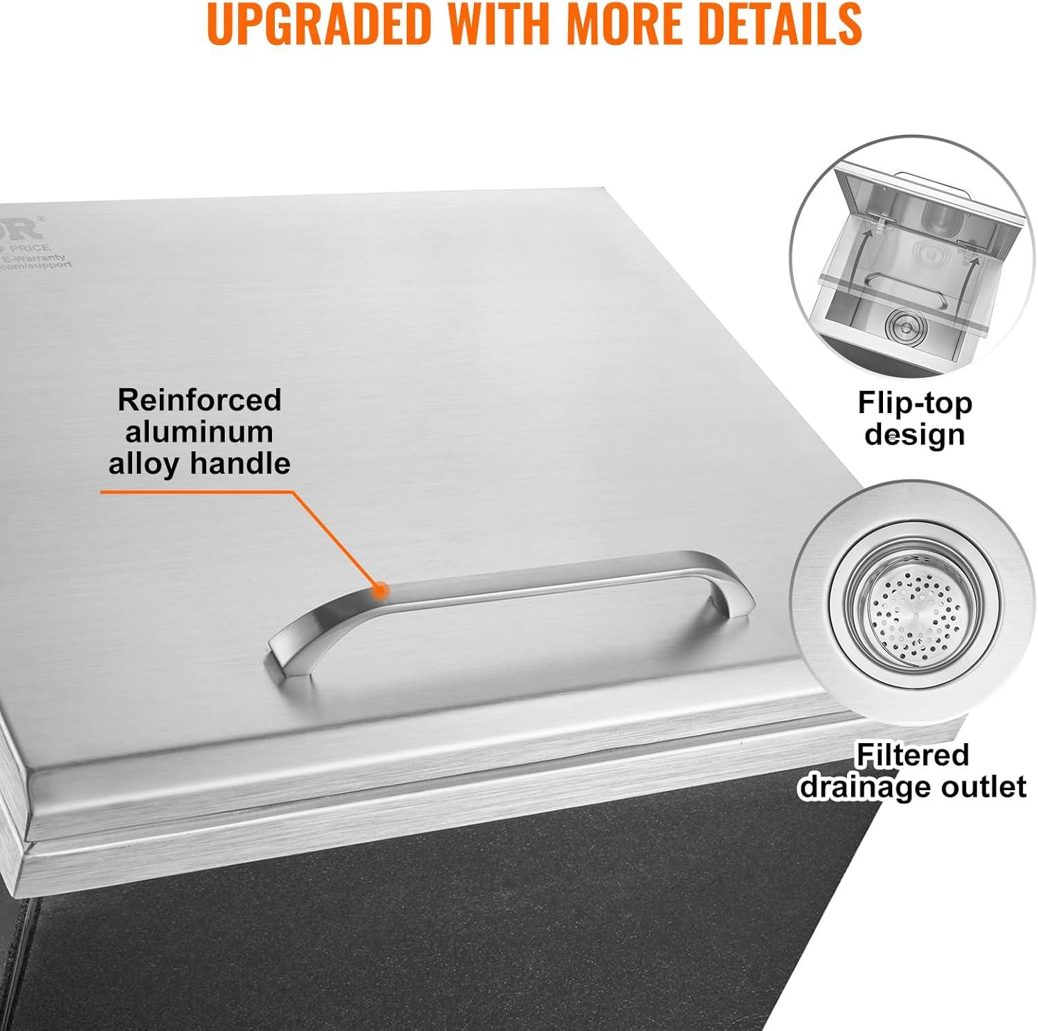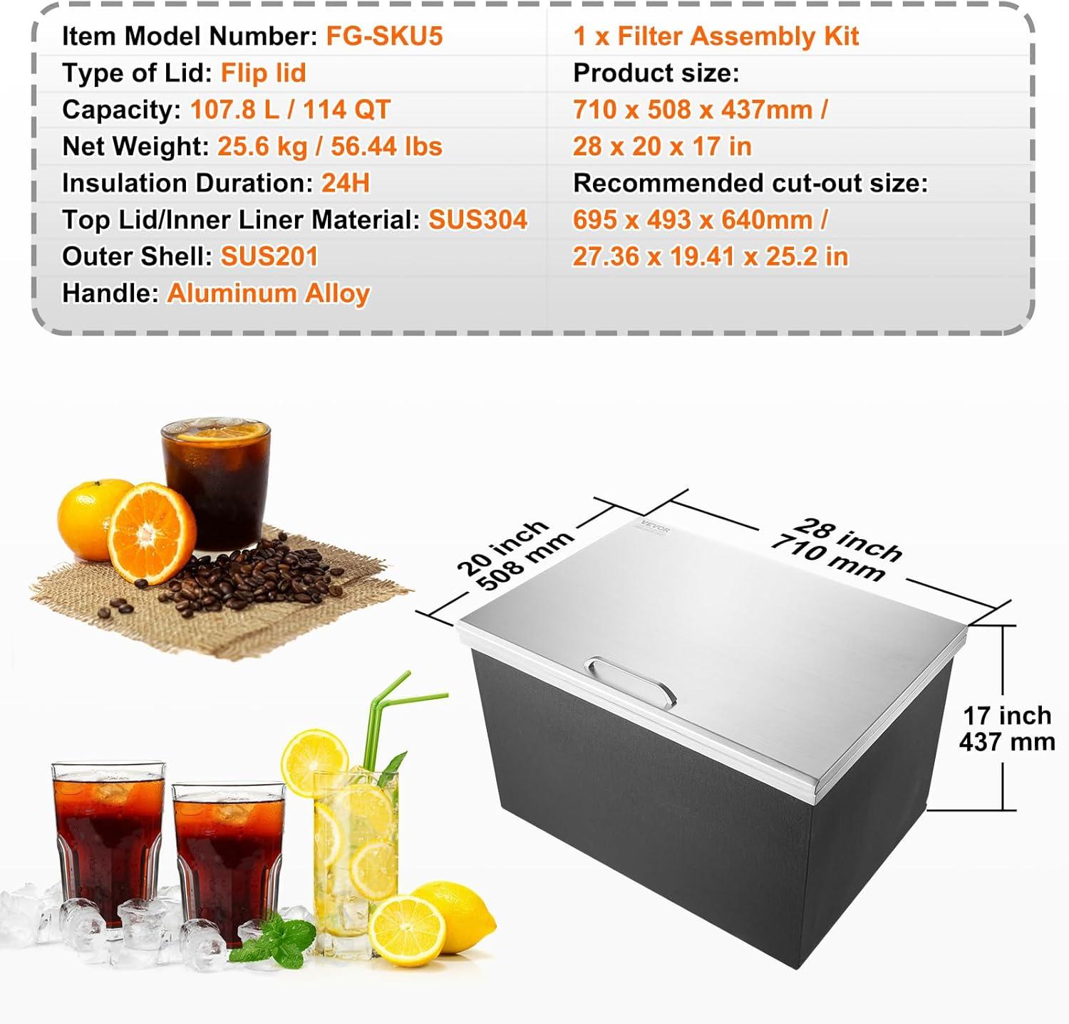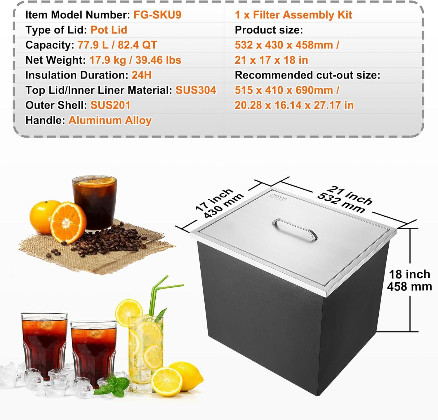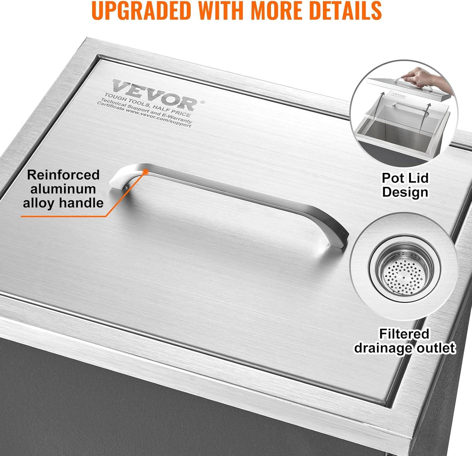 imageVEVOR Drop in Ice Chest 24quotL x 18quotW x 13quotH Stainless Steel Ice Cooler Commercial Ice Bin with Sliding Cover 409 qt Outdoor Kitchen Ice Bar Drainpipe and Drain Plug Included for Cold Wine BeerSilverblack