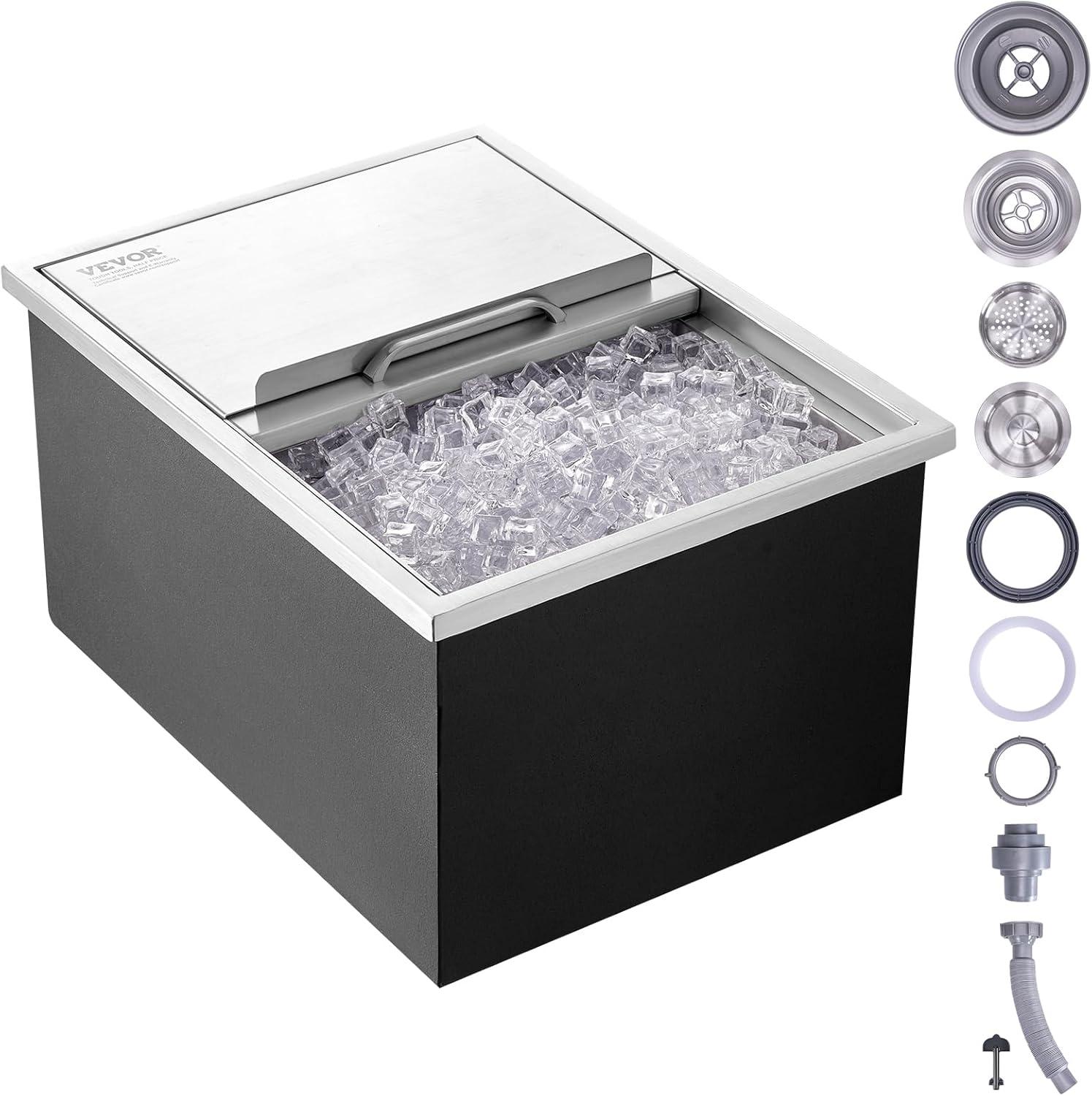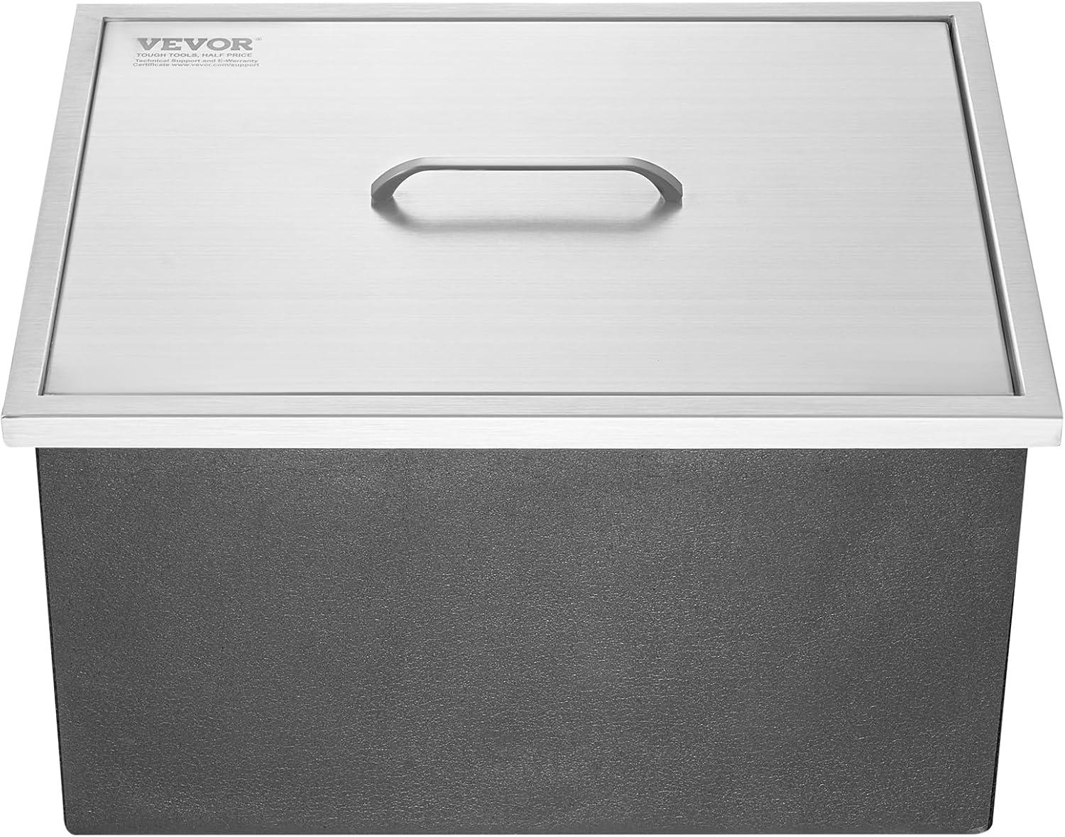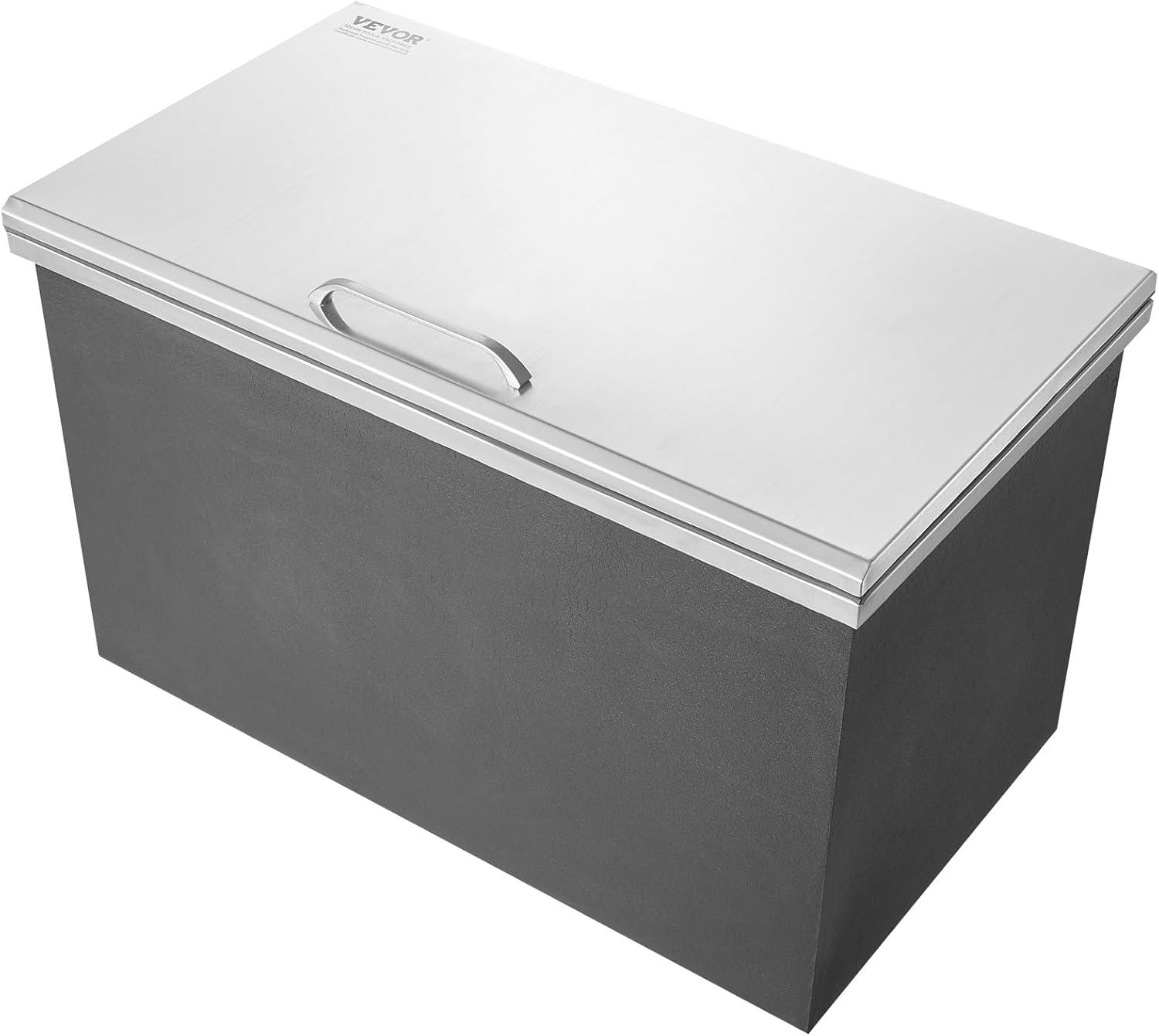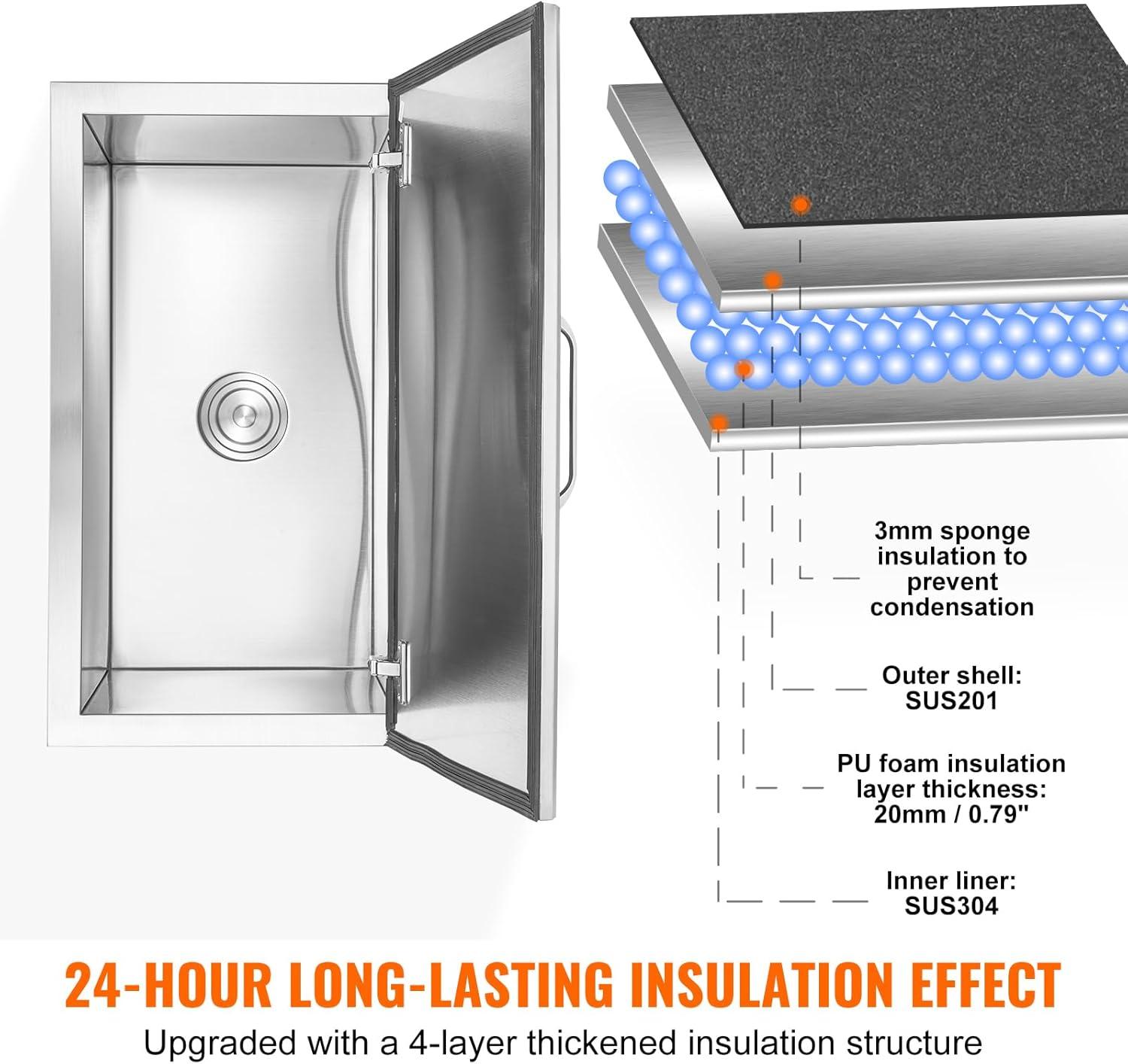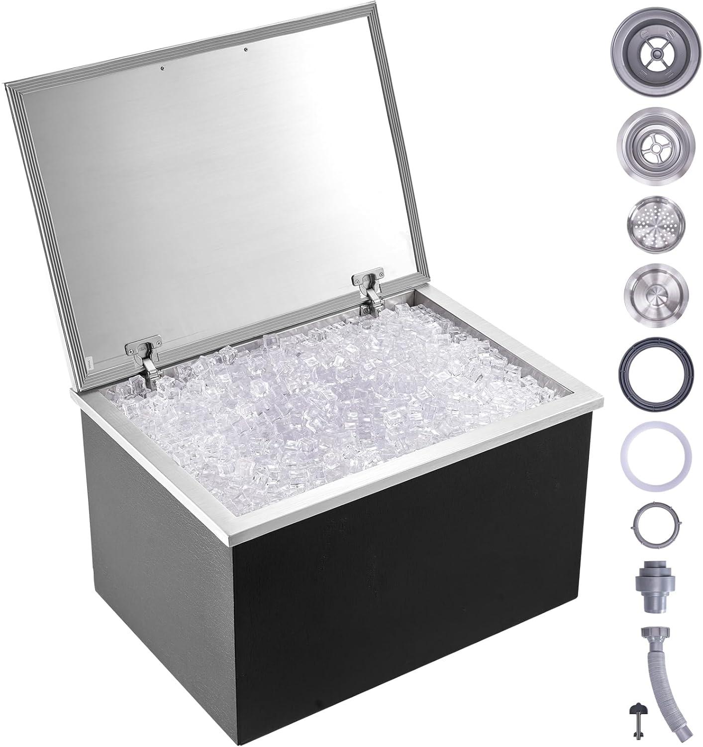 imageVEVOR Drop in Ice Chest 24quotL x 18quotW x 13quotH Stainless Steel Ice Cooler Commercial Ice Bin with Sliding Cover 409 qt Outdoor Kitchen Ice Bar Drainpipe and Drain Plug Included for Cold Wine BeerSilver