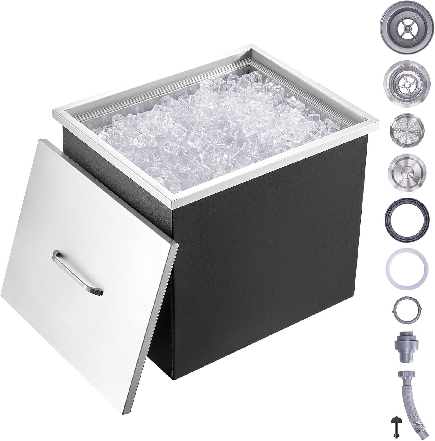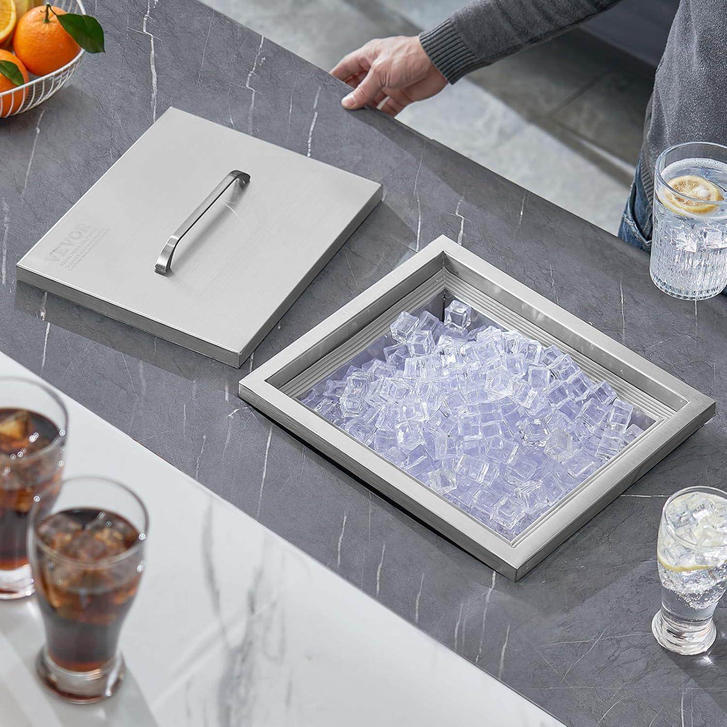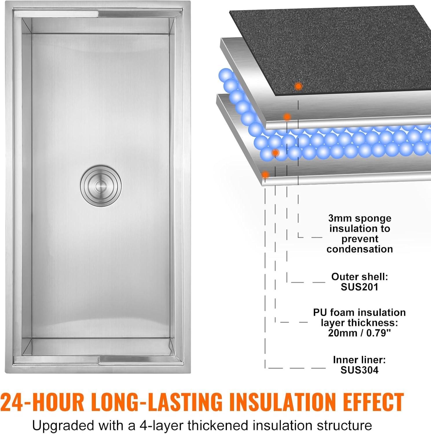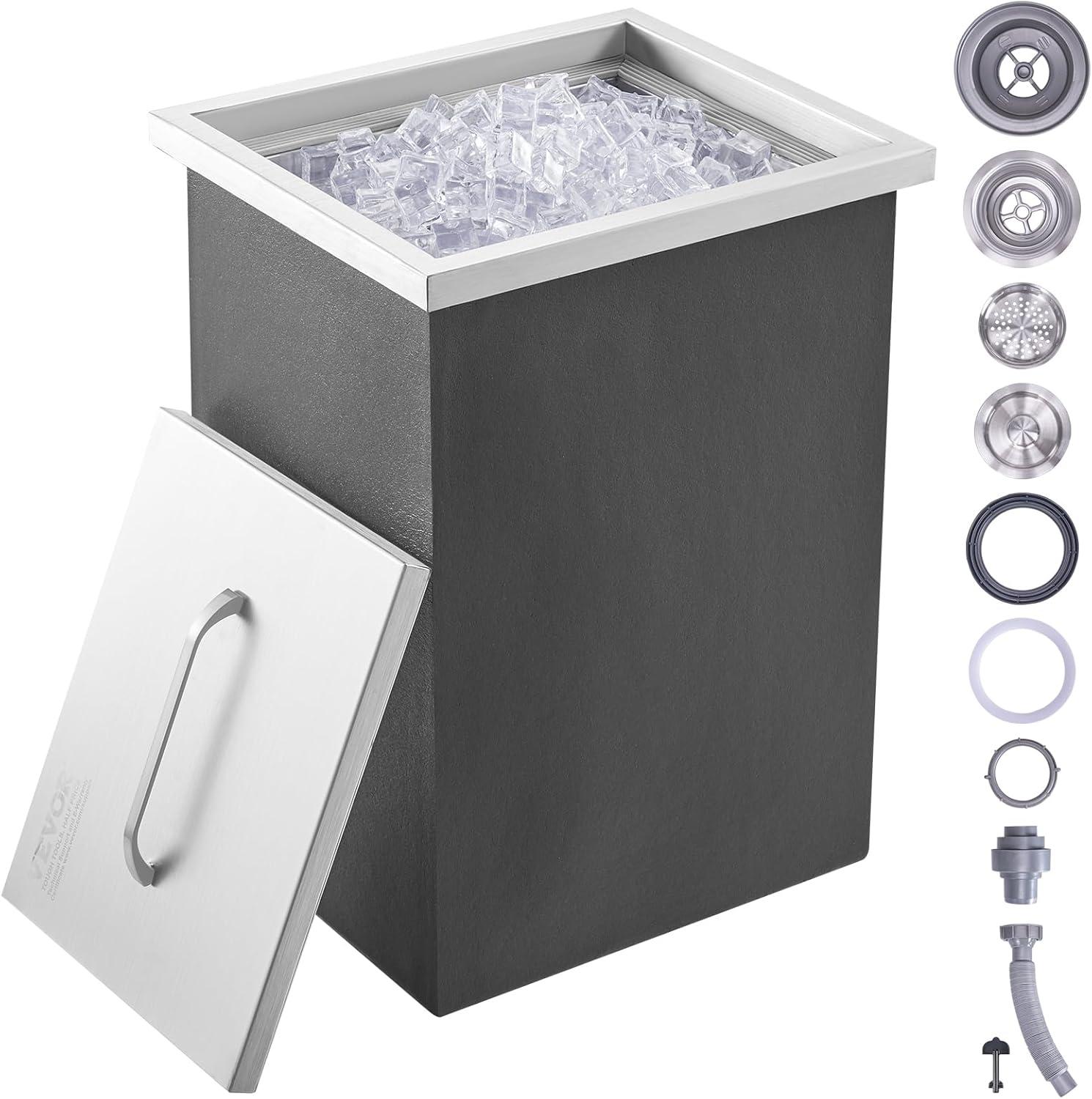 imageVEVOR Drop in Ice Chest 24quotL x 18quotW x 13quotH Stainless Steel Ice Cooler Commercial Ice Bin with Sliding Cover 409 qt Outdoor Kitchen Ice Bar Drainpipe and Drain Plug Included for Cold Wine BeerSilver