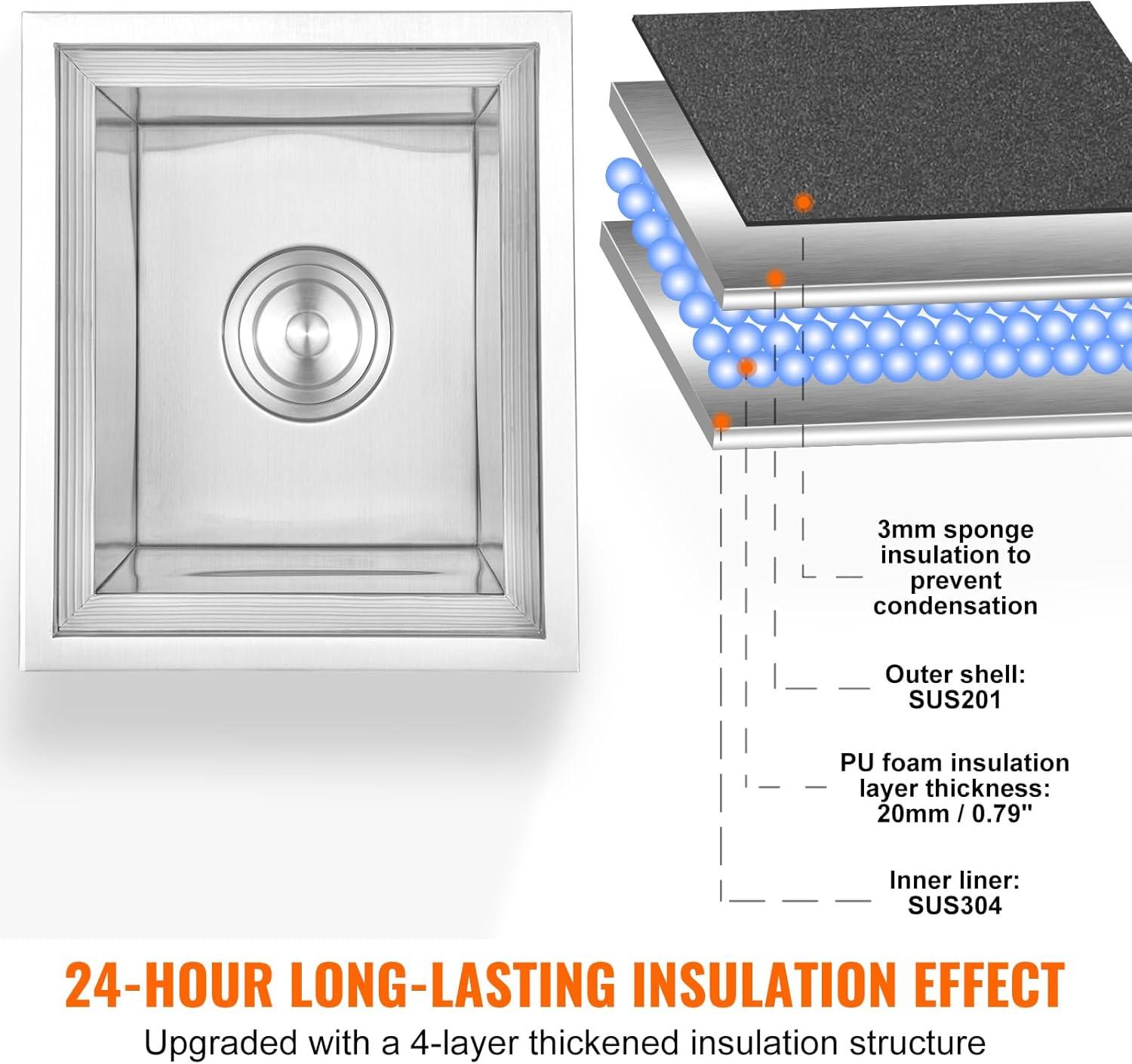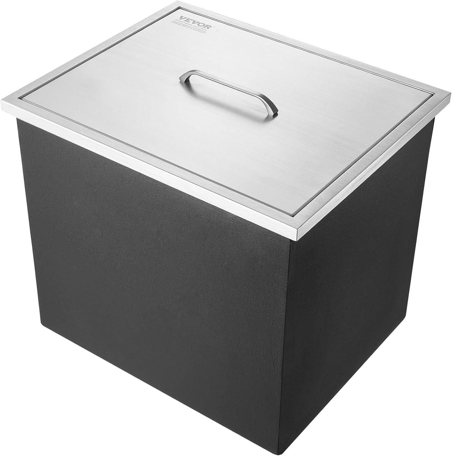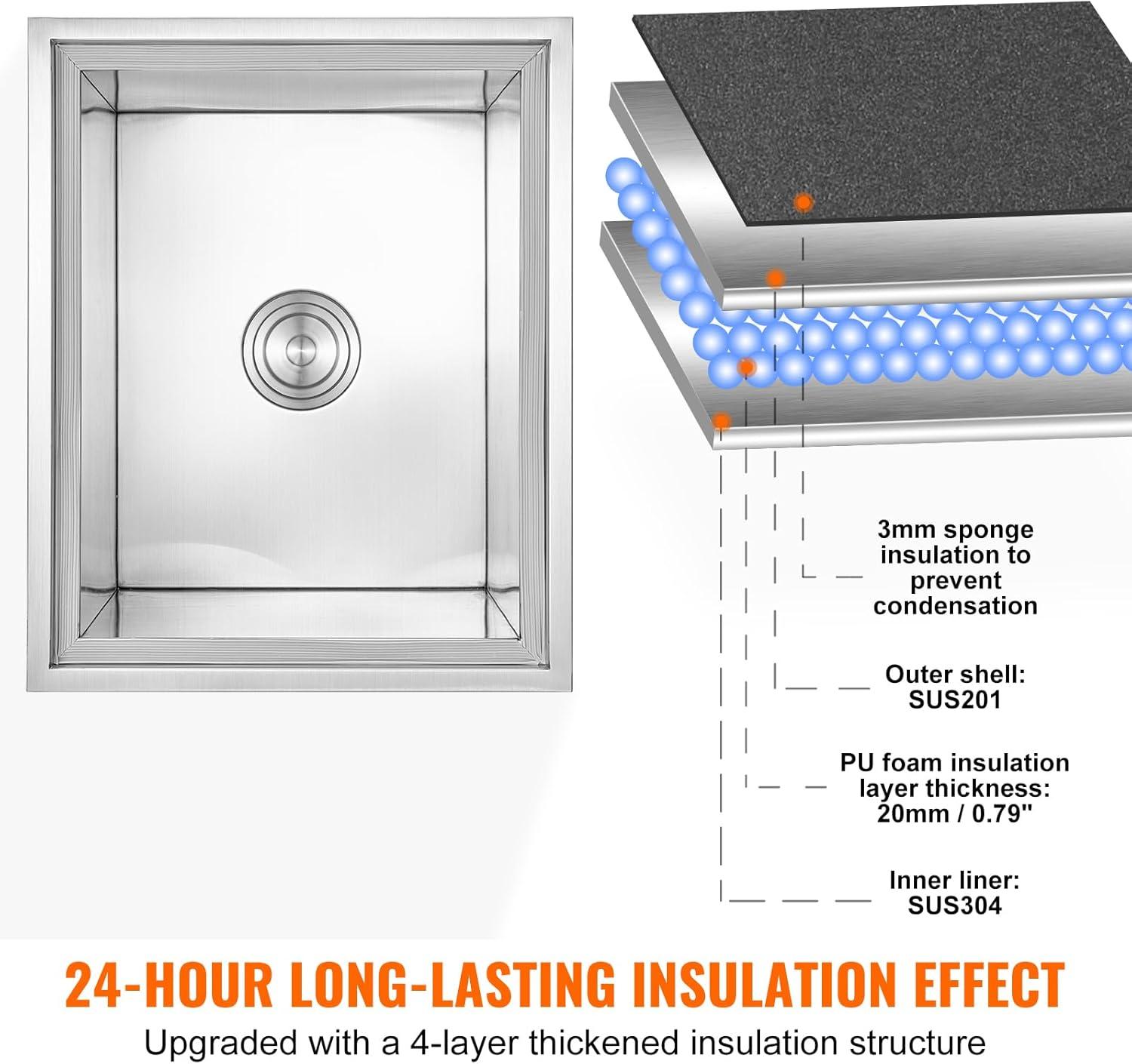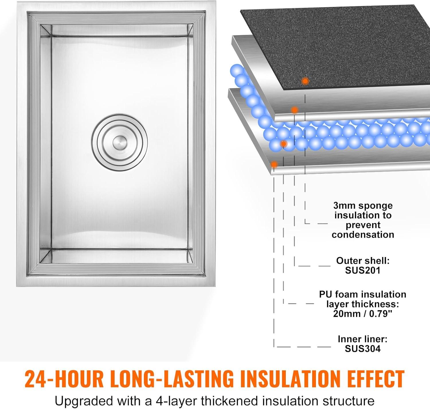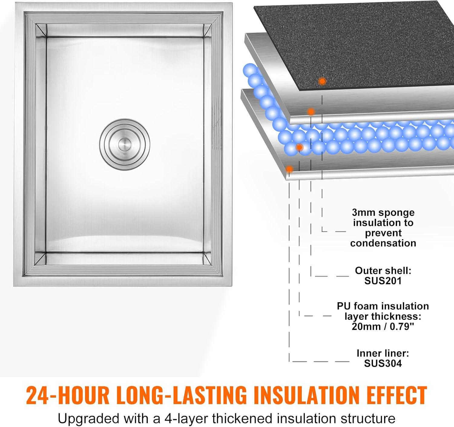 imageVEVOR Drop in Ice Chest 24quotL x 18quotW x 13quotH Stainless Steel Ice Cooler Commercial Ice Bin with Sliding Cover 409 qt Outdoor Kitchen Ice Bar Drainpipe and Drain Plug Included for Cold Wine BeerSilver