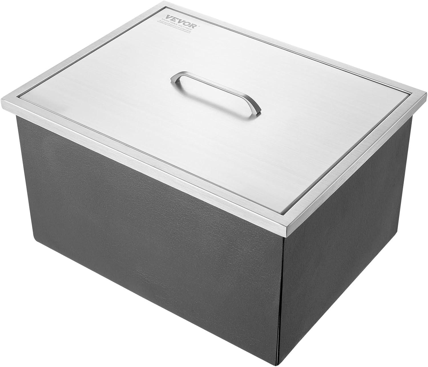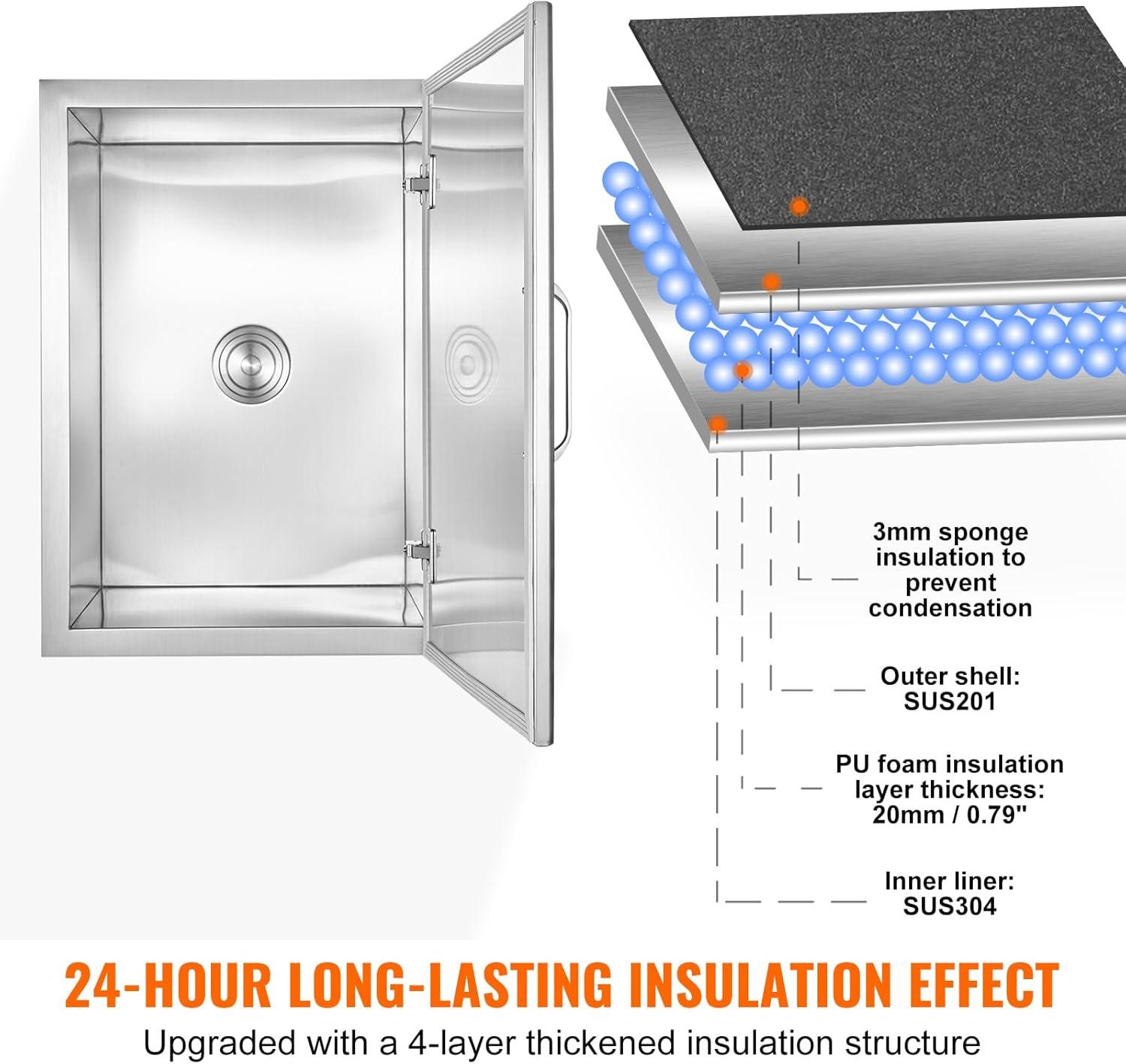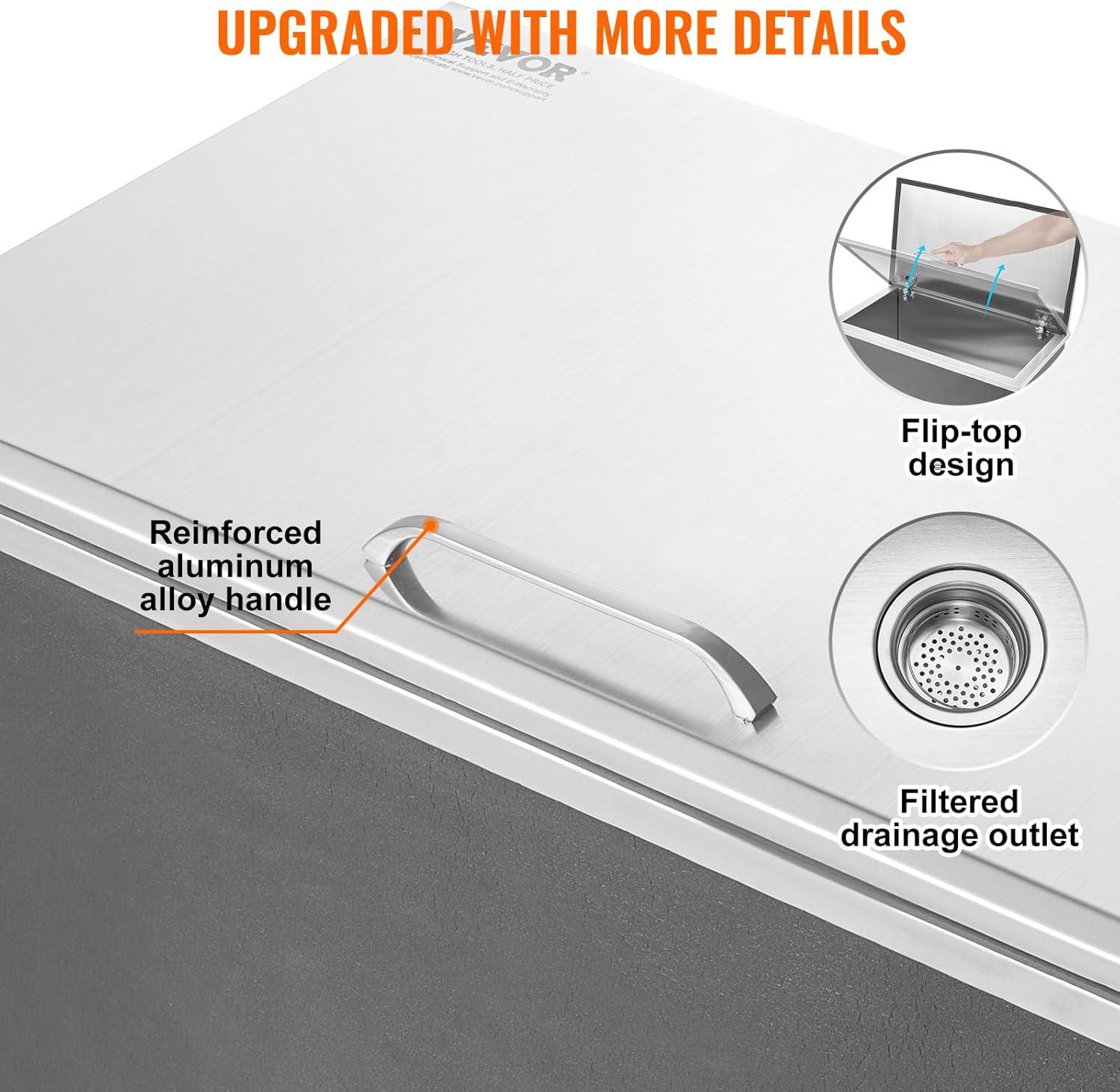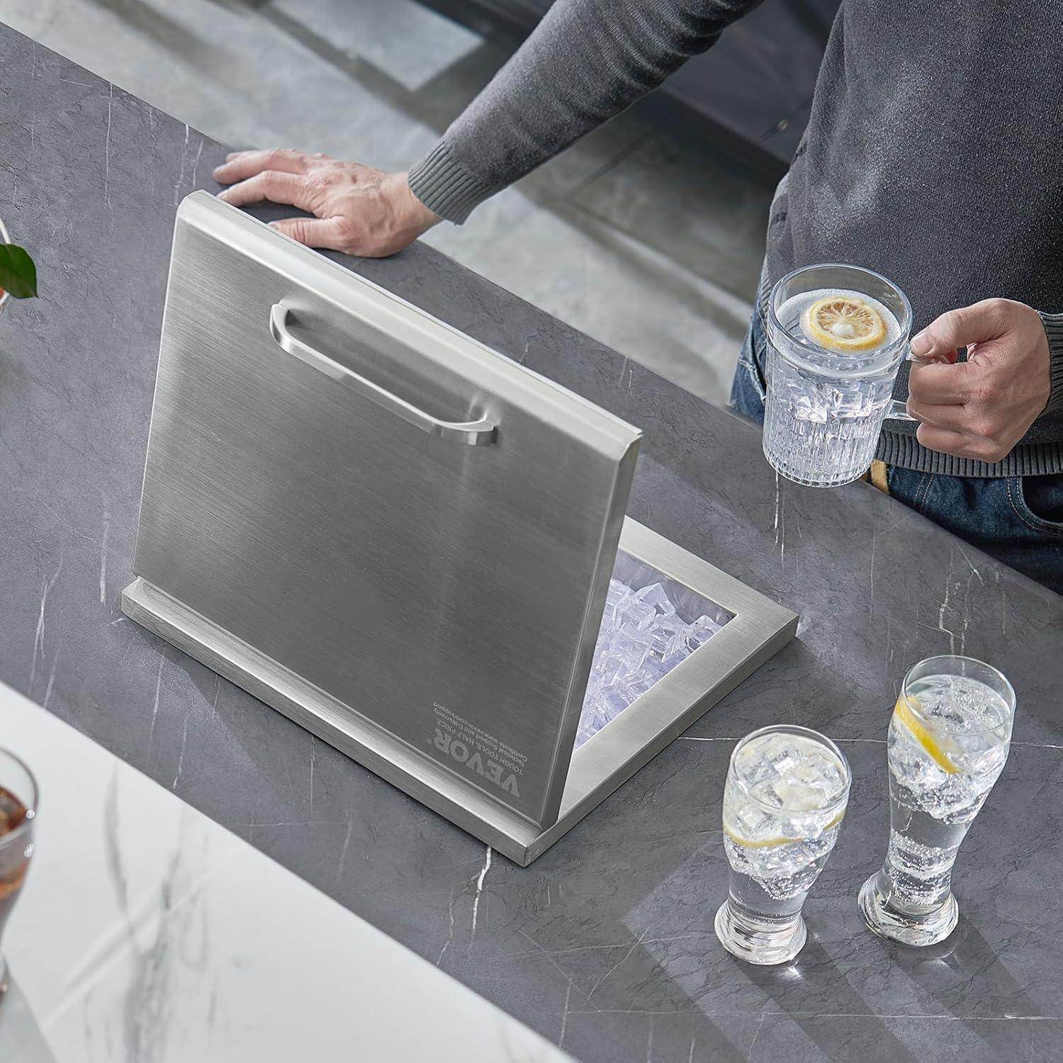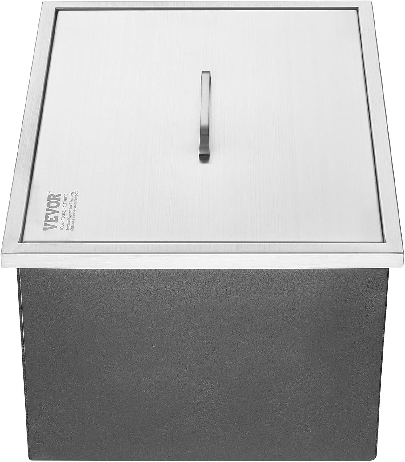 imageVEVOR Drop in Ice Chest 24quotL x 18quotW x 13quotH Stainless Steel Ice Cooler Commercial Ice Bin with Sliding Cover 409 qt Outdoor Kitchen Ice Bar Drainpipe and Drain Plug Included for Cold Wine BeerSilver