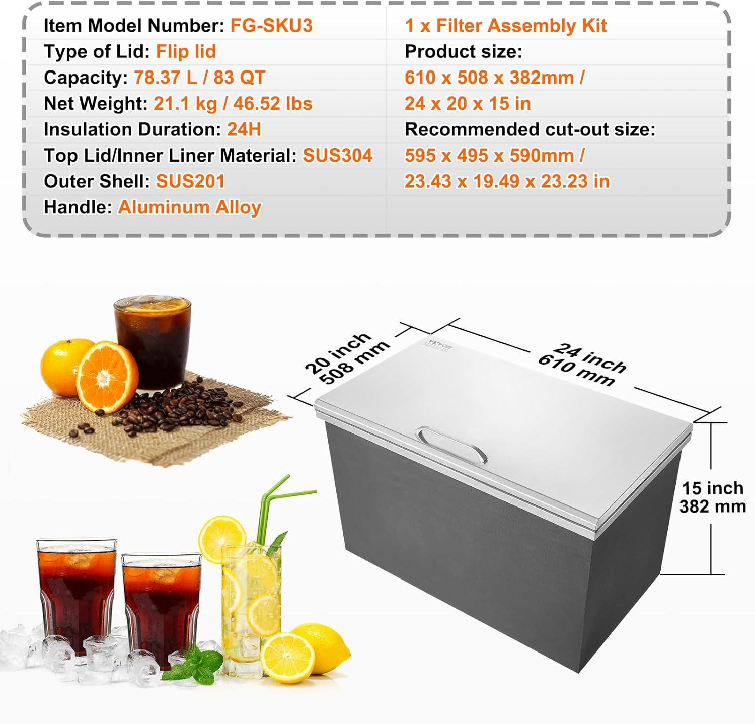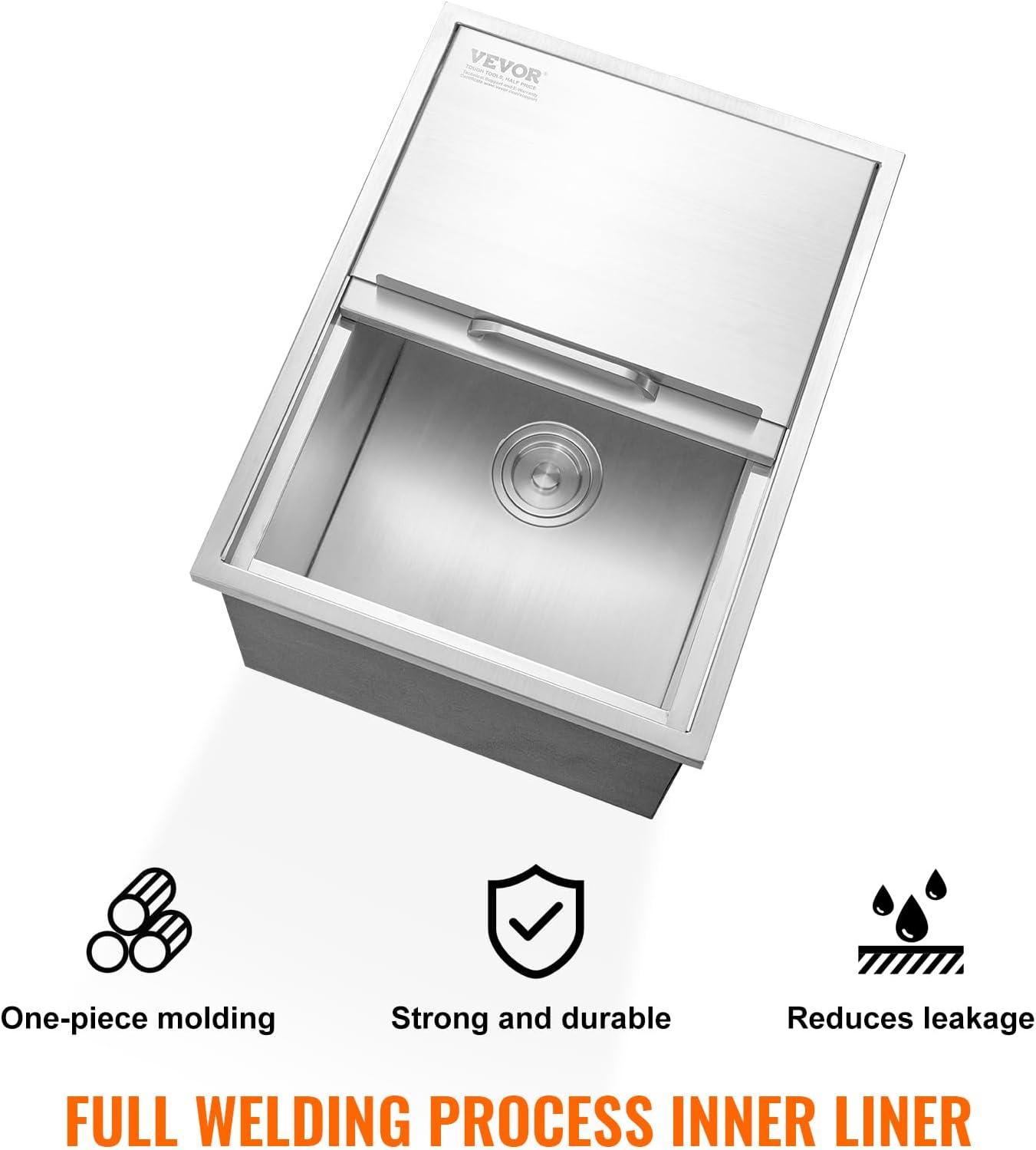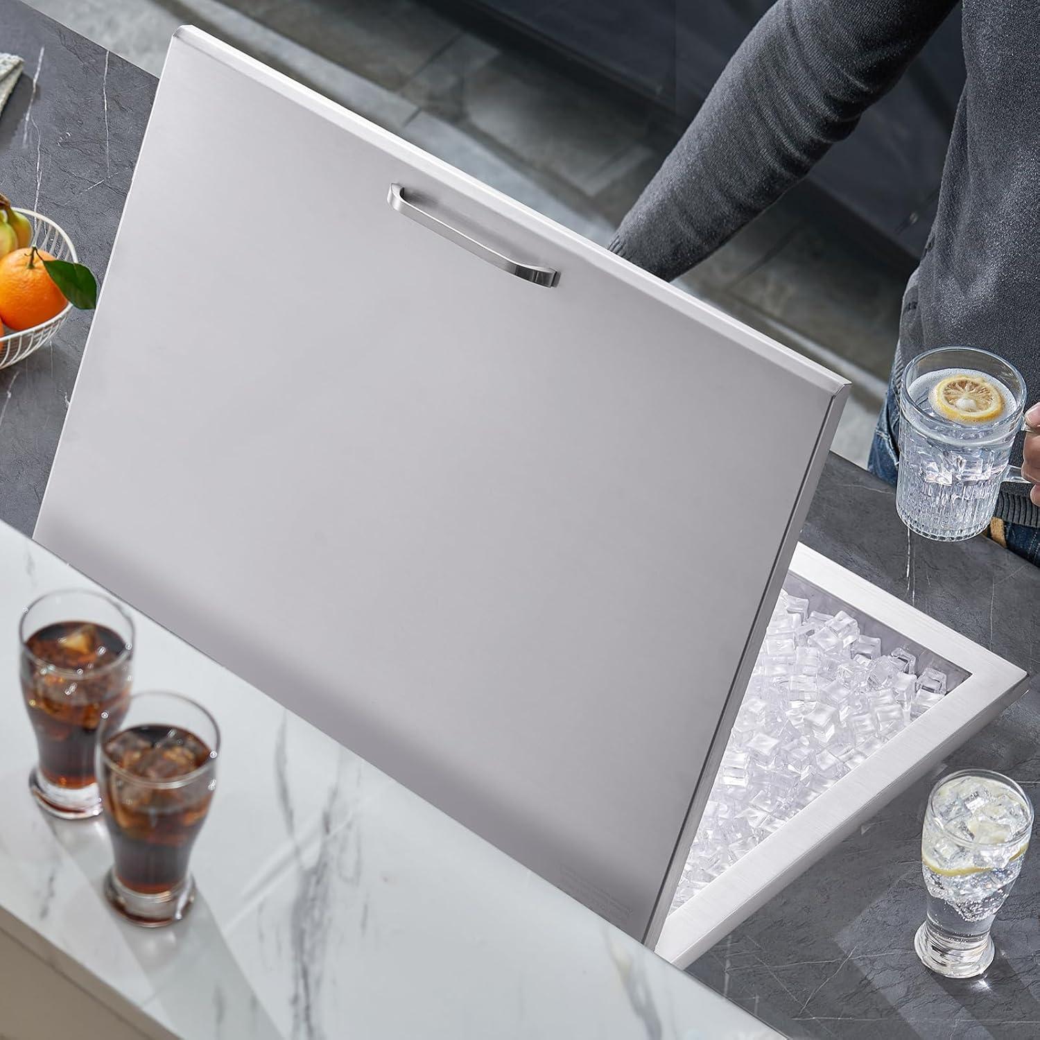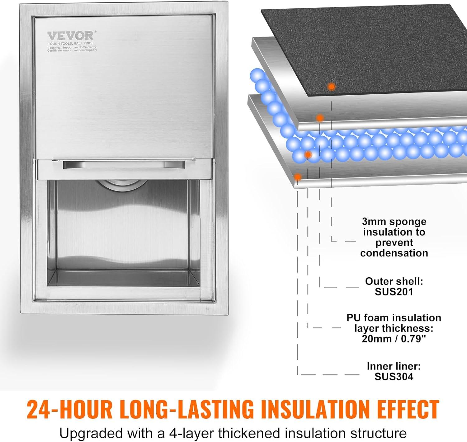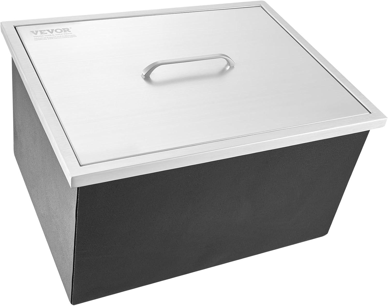 imageVEVOR Drop in Ice Chest 24quotL x 18quotW x 13quotH Stainless Steel Ice Cooler Commercial Ice Bin with Sliding Cover 409 qt Outdoor Kitchen Ice Bar Drainpipe and Drain Plug Included for Cold Wine BeerSilver