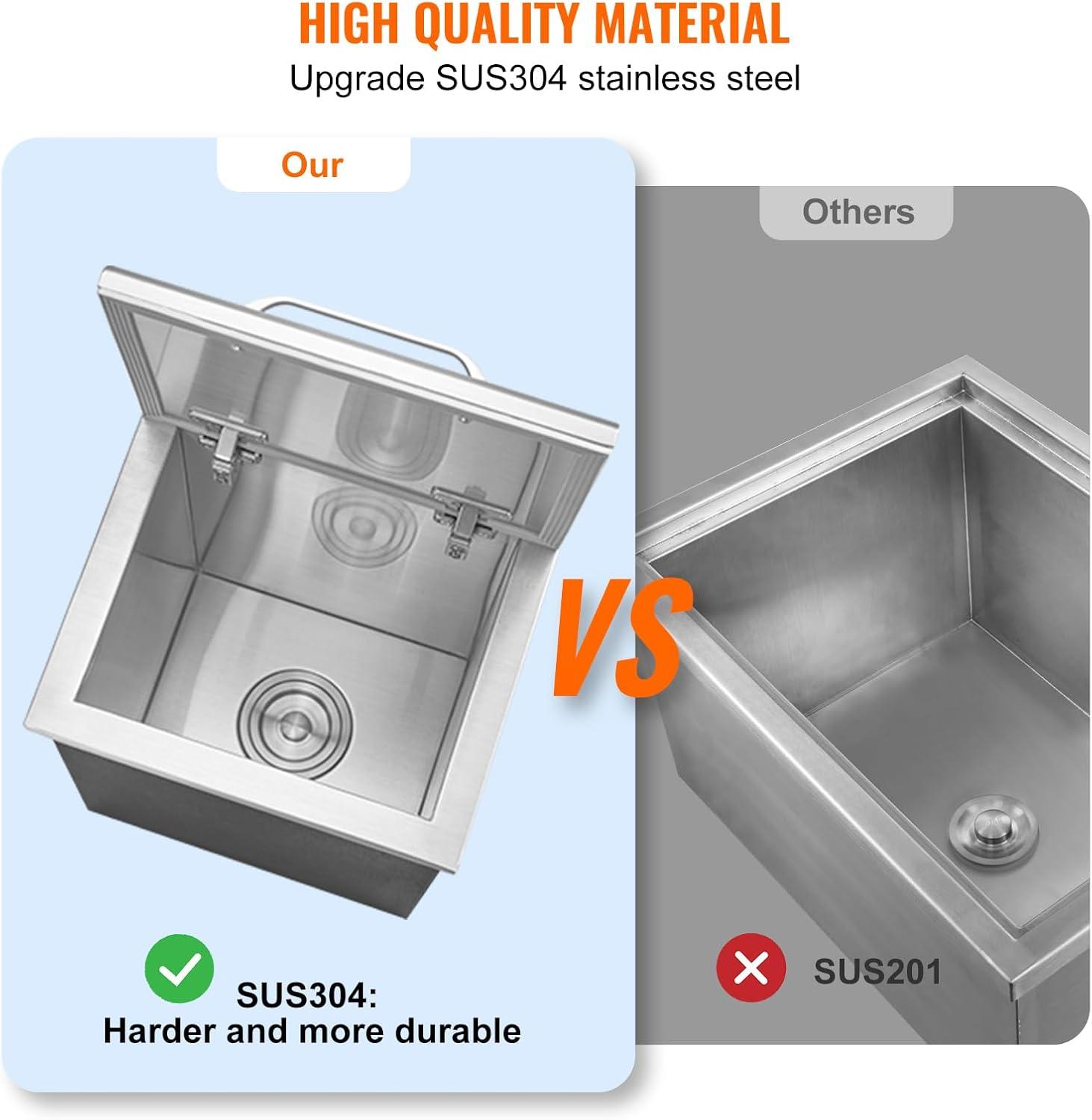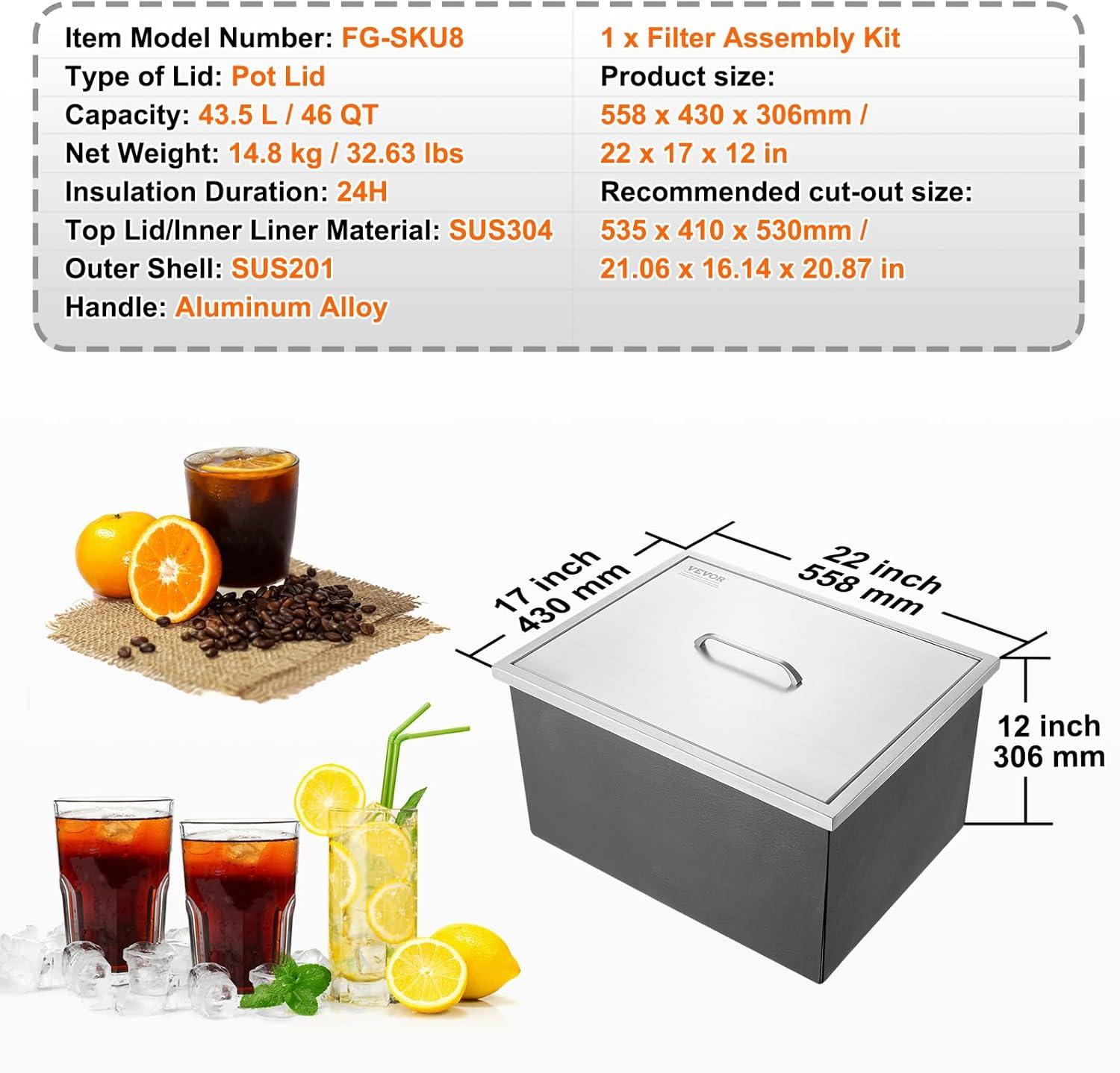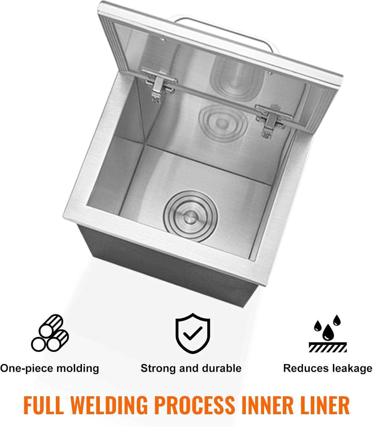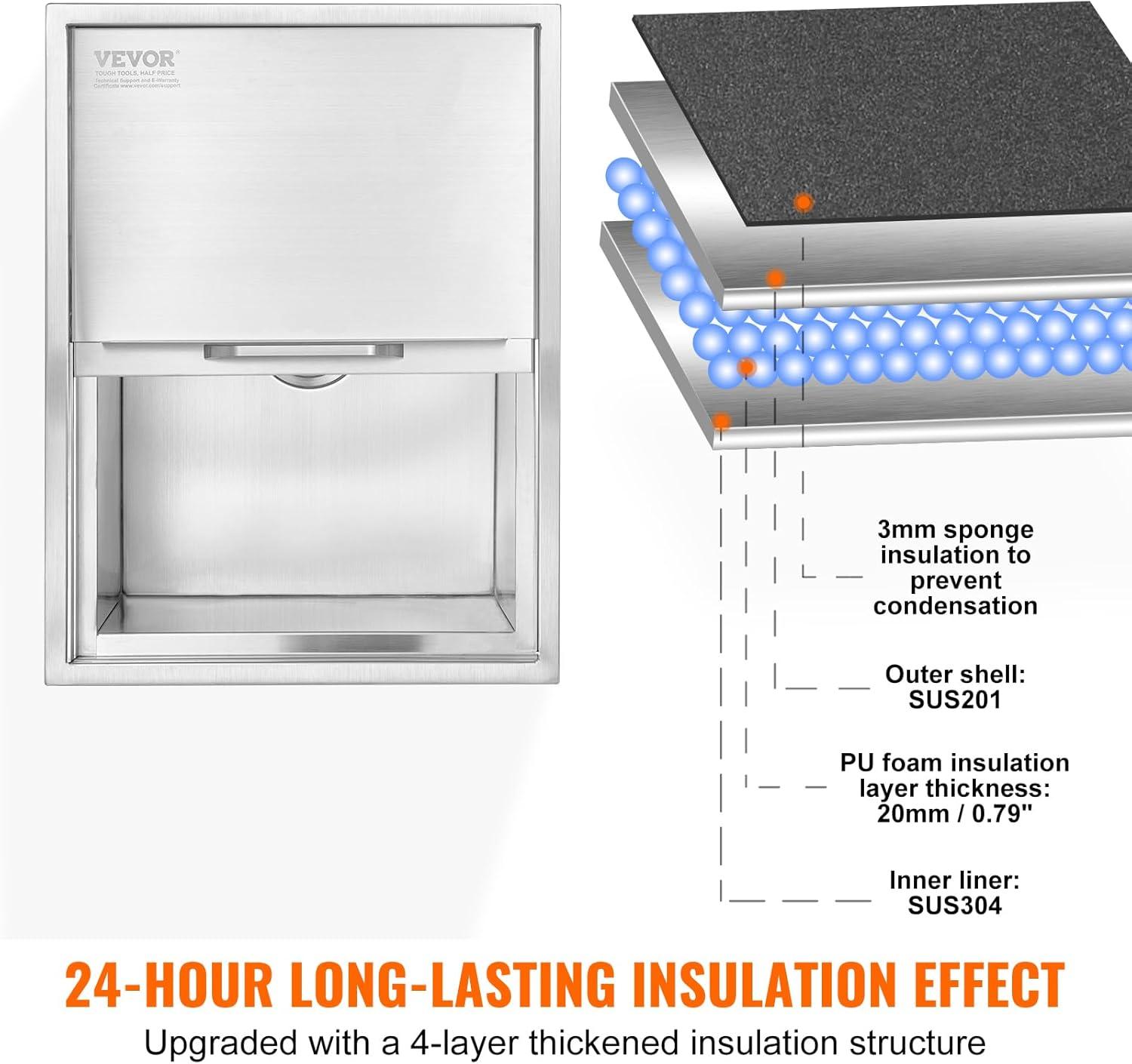 imageVEVOR Drop in Ice Chest 24quotL x 18quotW x 13quotH Stainless Steel Ice Cooler Commercial Ice Bin with Sliding Cover 409 qt Outdoor Kitchen Ice Bar Drainpipe and Drain Plug Included for Cold Wine BeerSilver