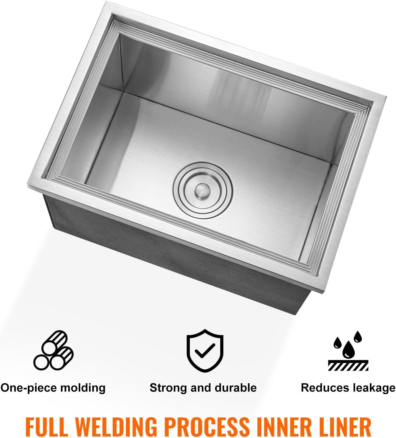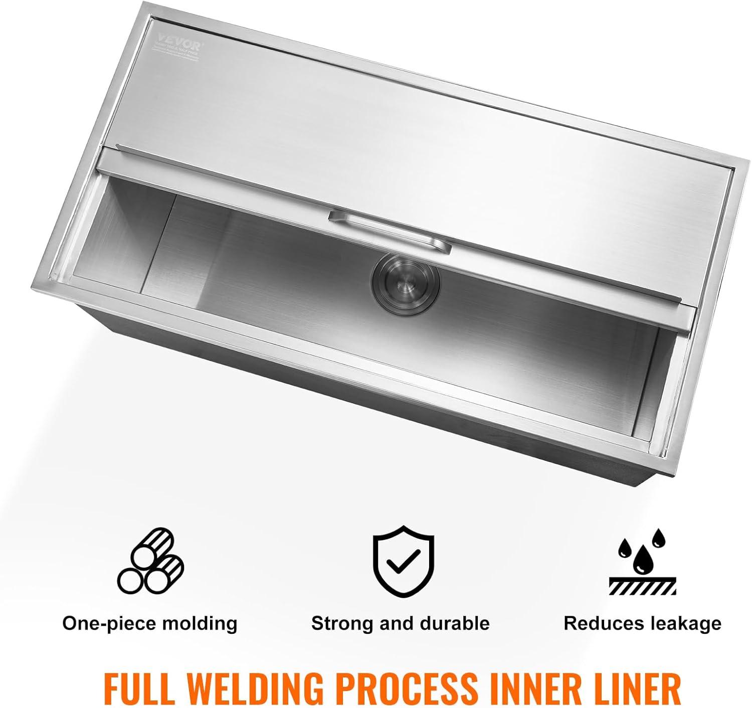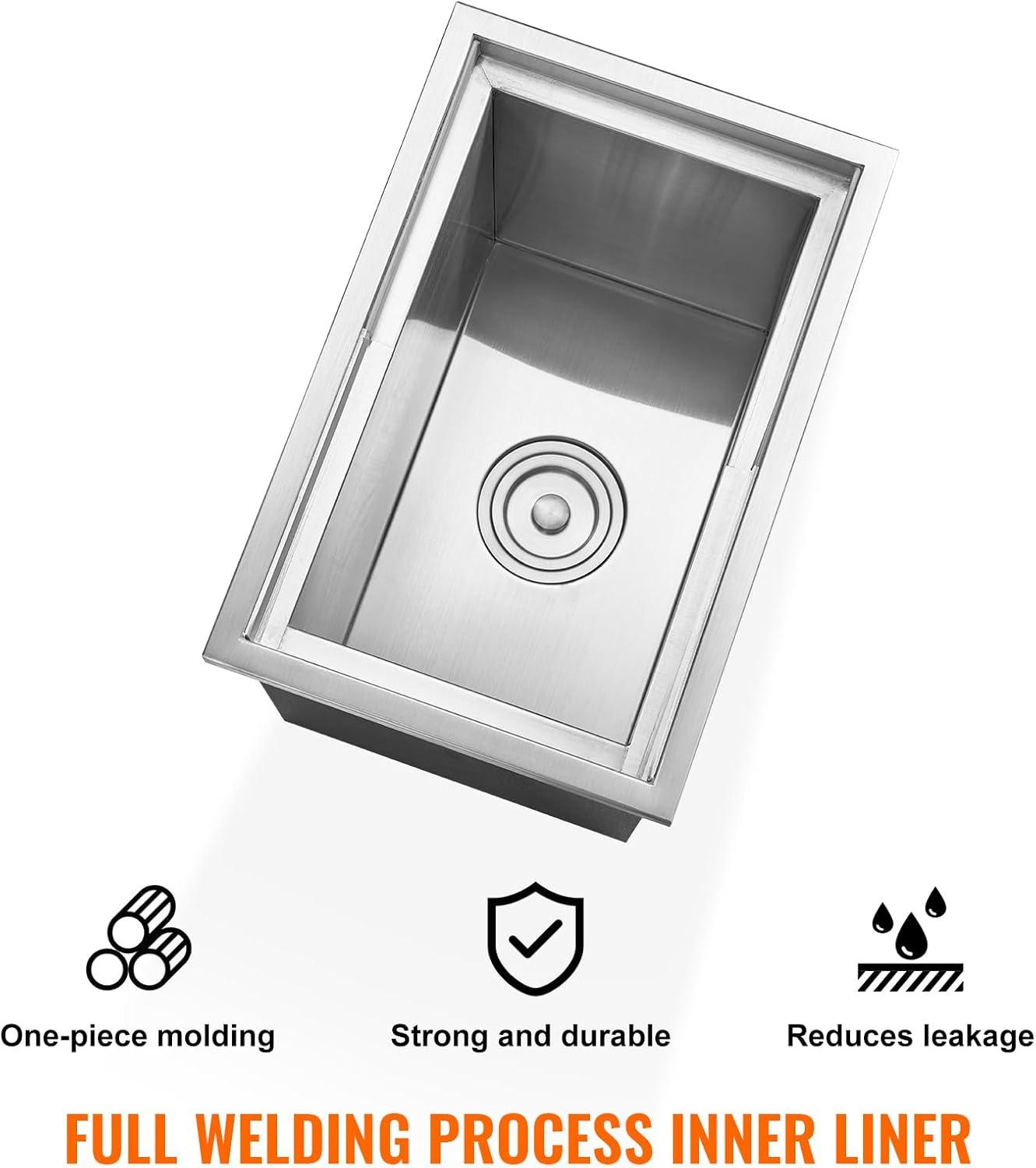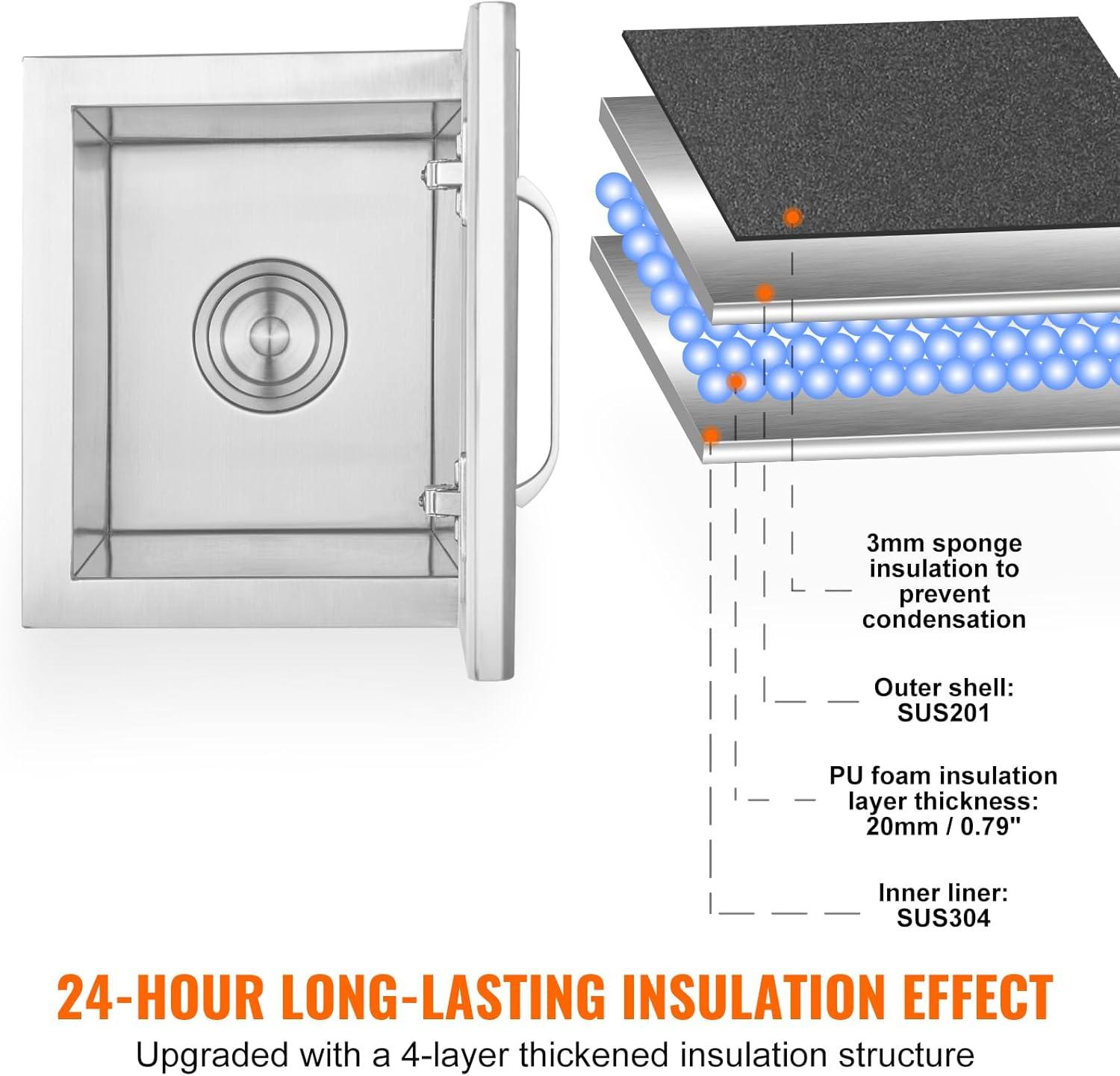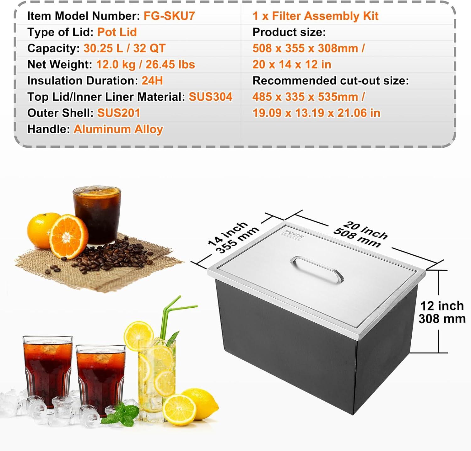 imageVEVOR Drop in Ice Chest 24quotL x 18quotW x 13quotH Stainless Steel Ice Cooler Commercial Ice Bin with Sliding Cover 409 qt Outdoor Kitchen Ice Bar Drainpipe and Drain Plug Included for Cold Wine BeerSilver