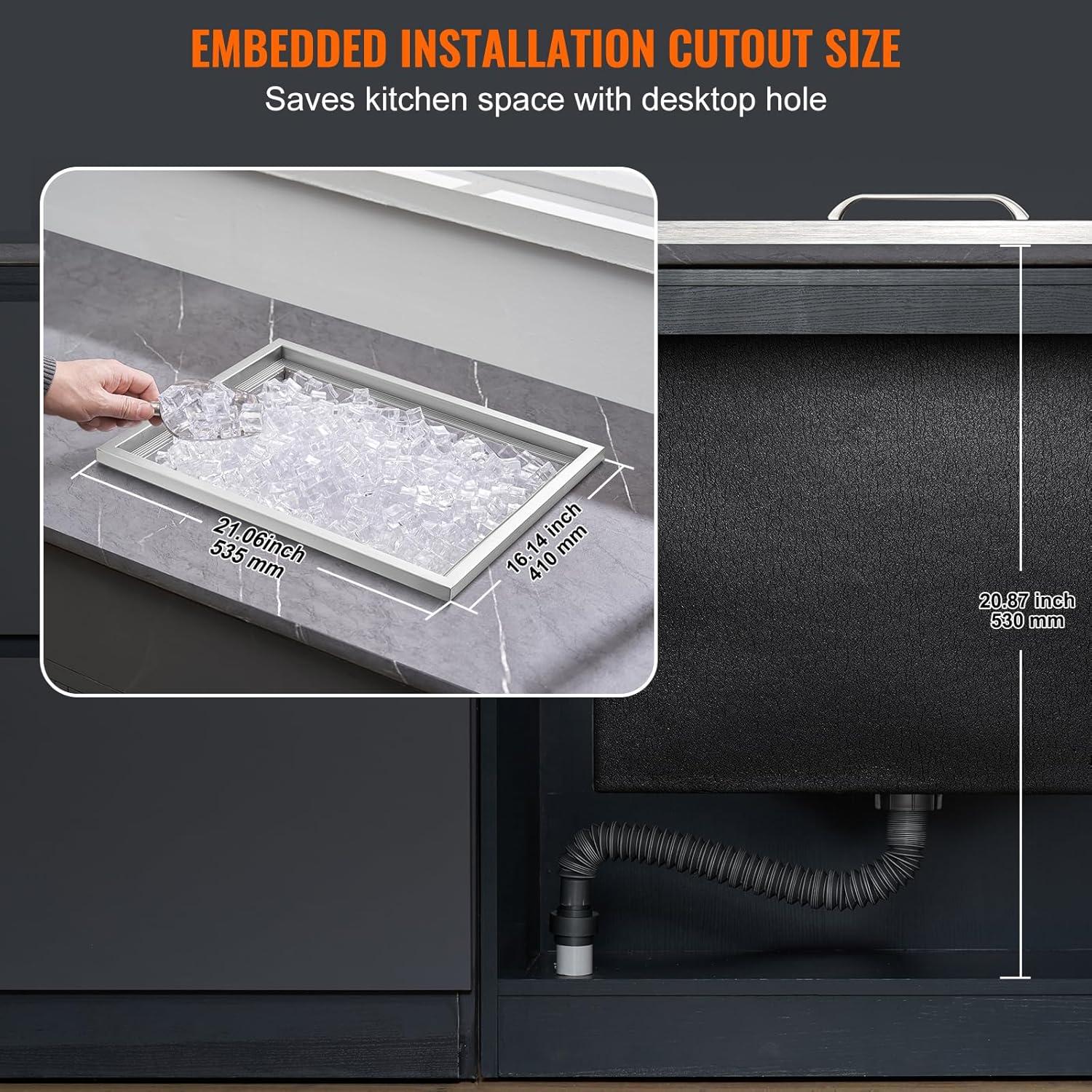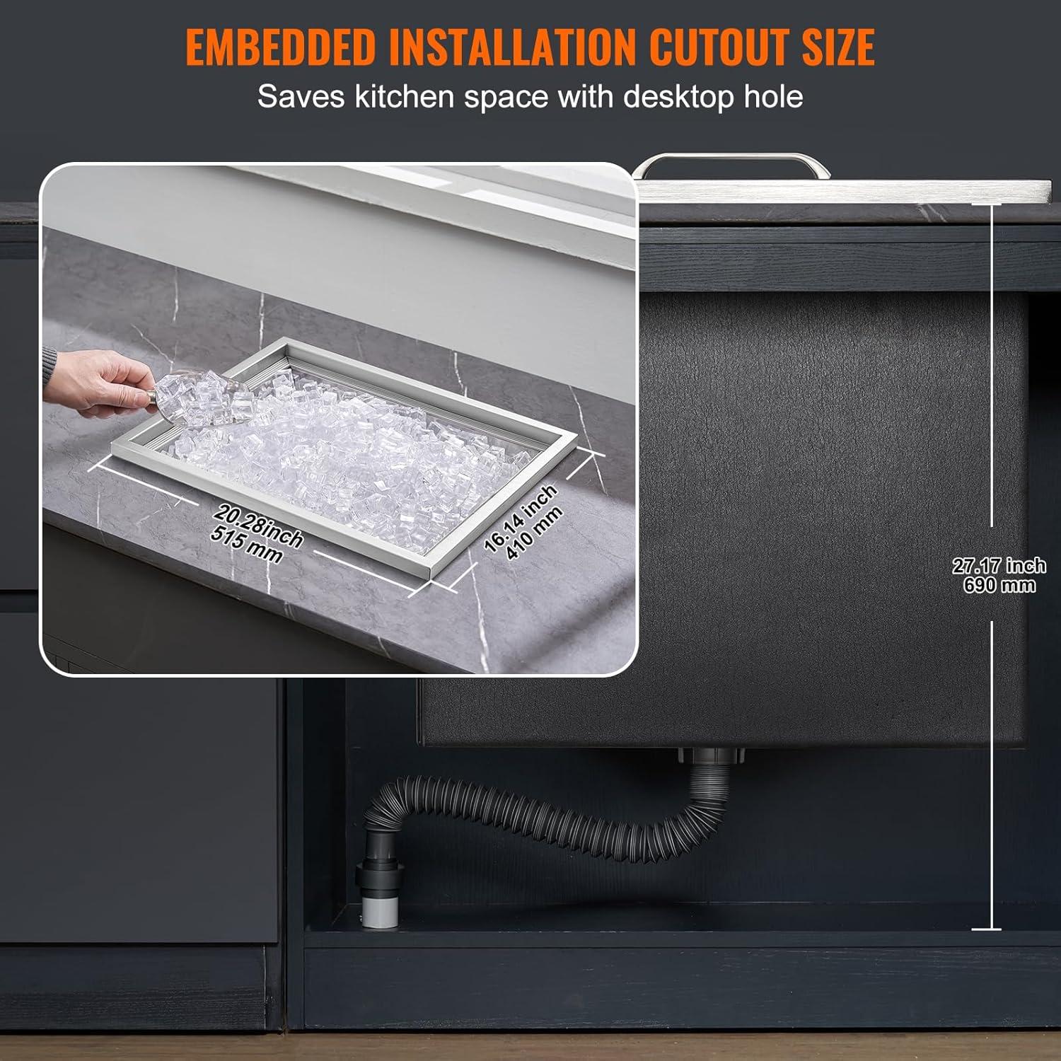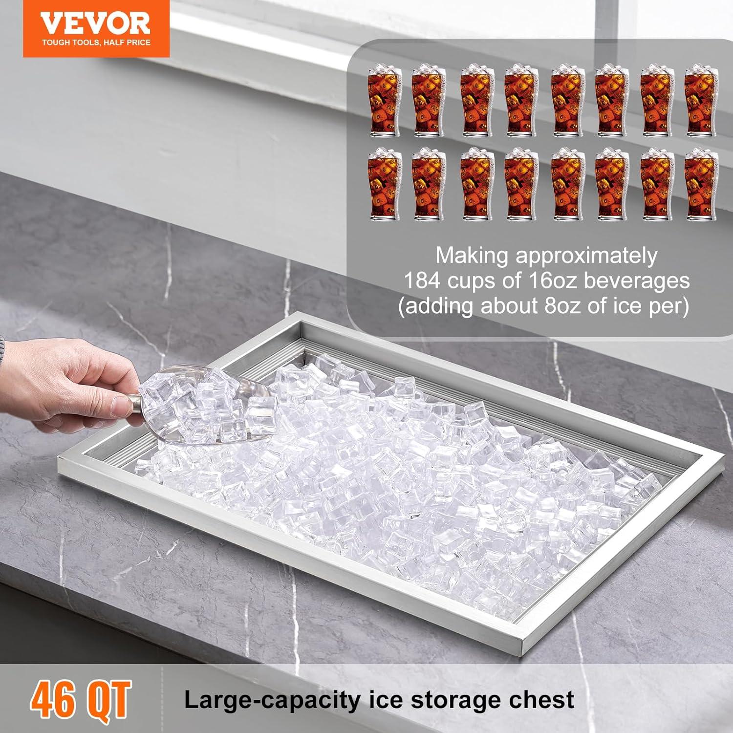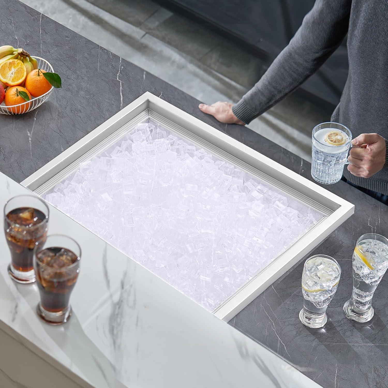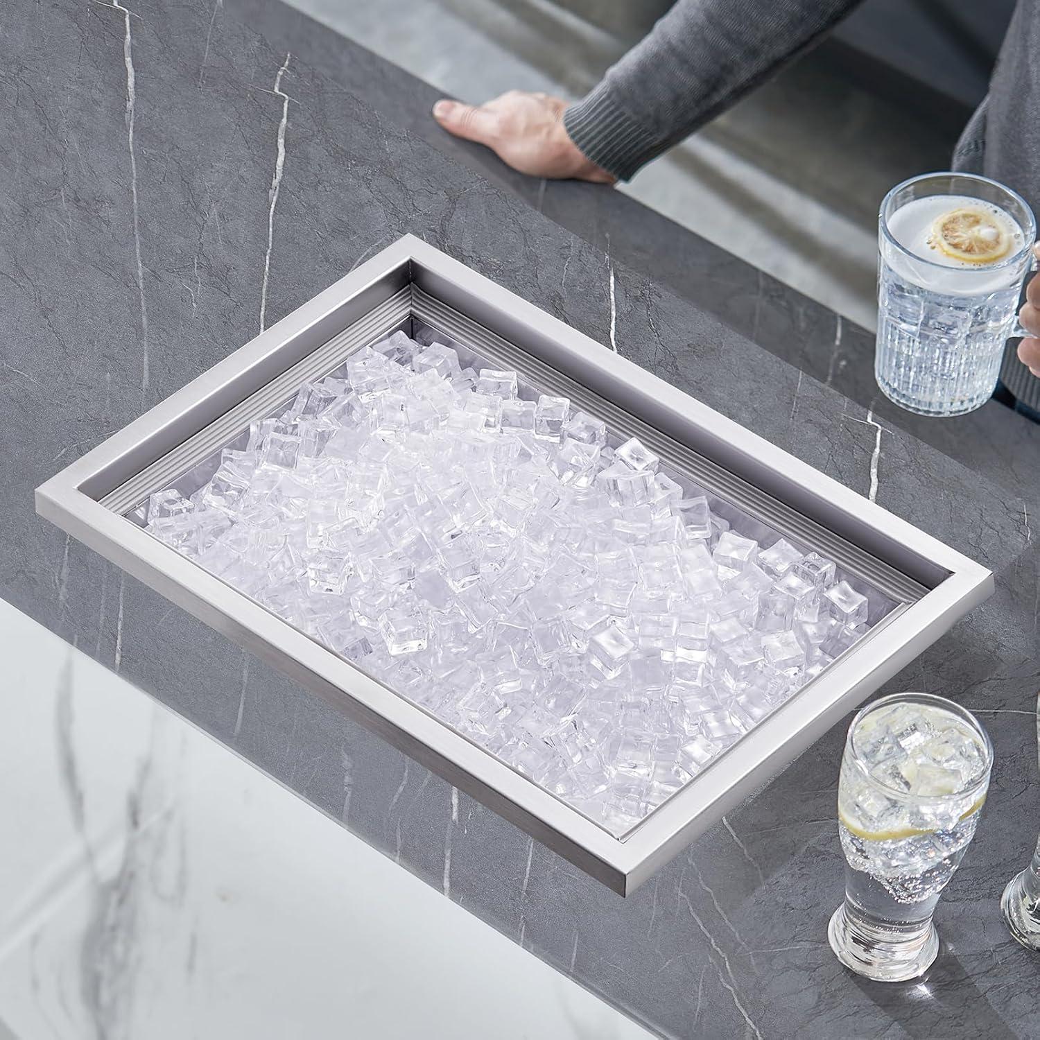 Large Capacity: A large-capacity drop in ice bin that can hold about 58.5QT (55.23L) of ice. When filled, it can make approximately 234 cups of 16oz beverages. Ideal for storing a large amount of ice or chilling various drinks.