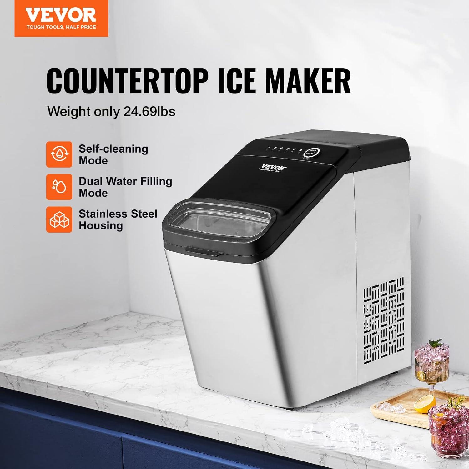 VEVOR Drop in Ice Chest, 24″L x 18″W x 13″H Stainless Steel Ice Cooler, Commercial Ice Bin with Sliding Cover, 40.9 qt Outdoor Kitchen Ice Bar, Drain-pipe and Drain Plug Included, for Cold Wine Beer(Silver+black)