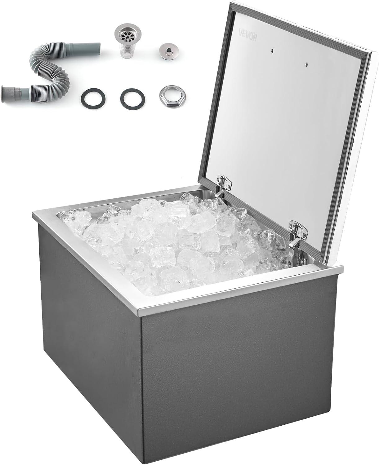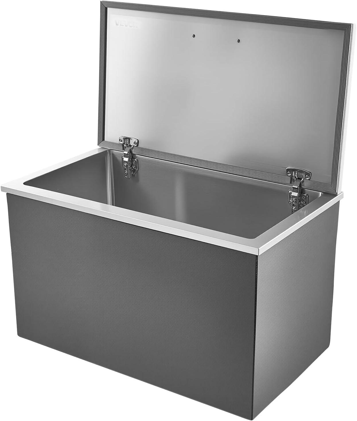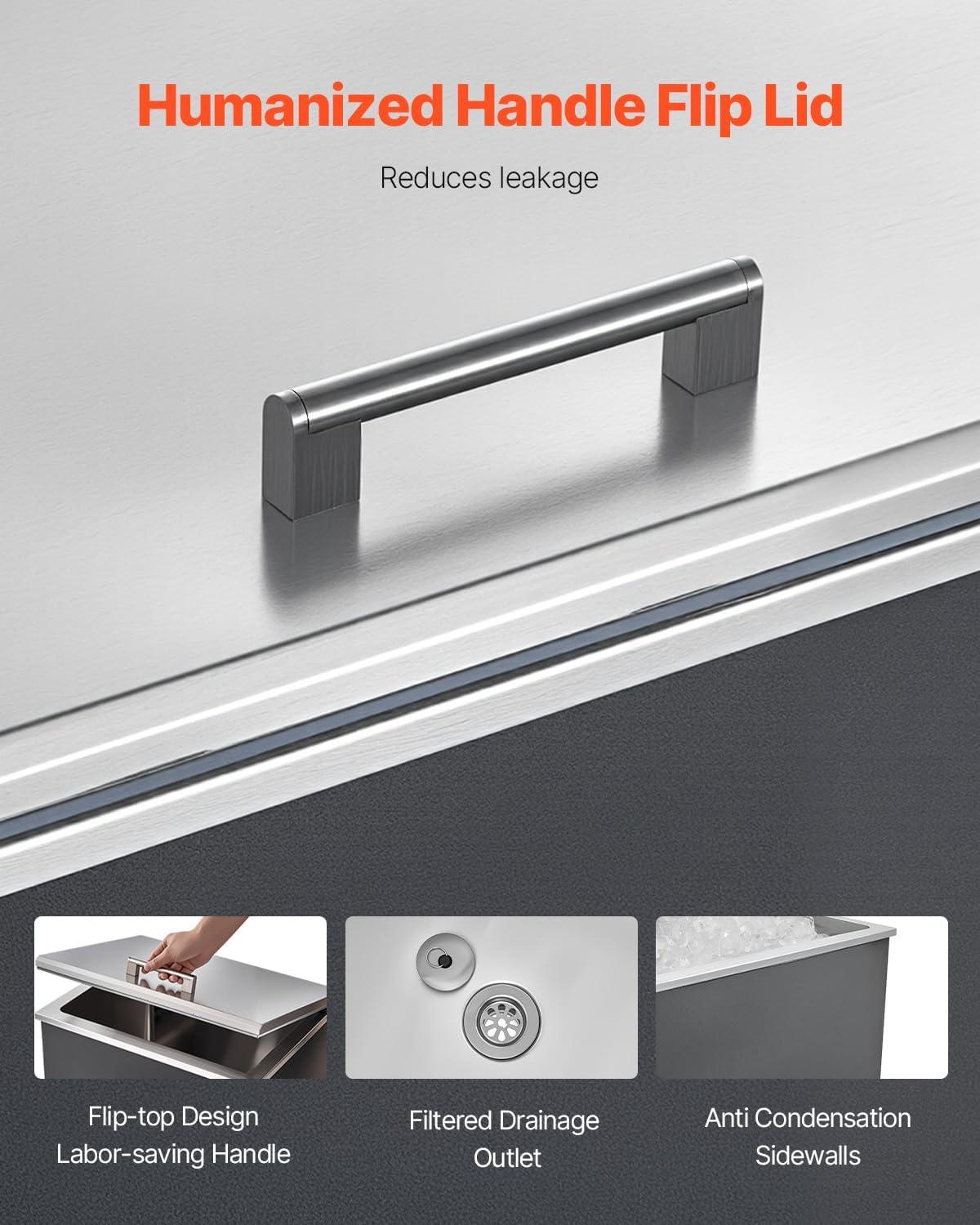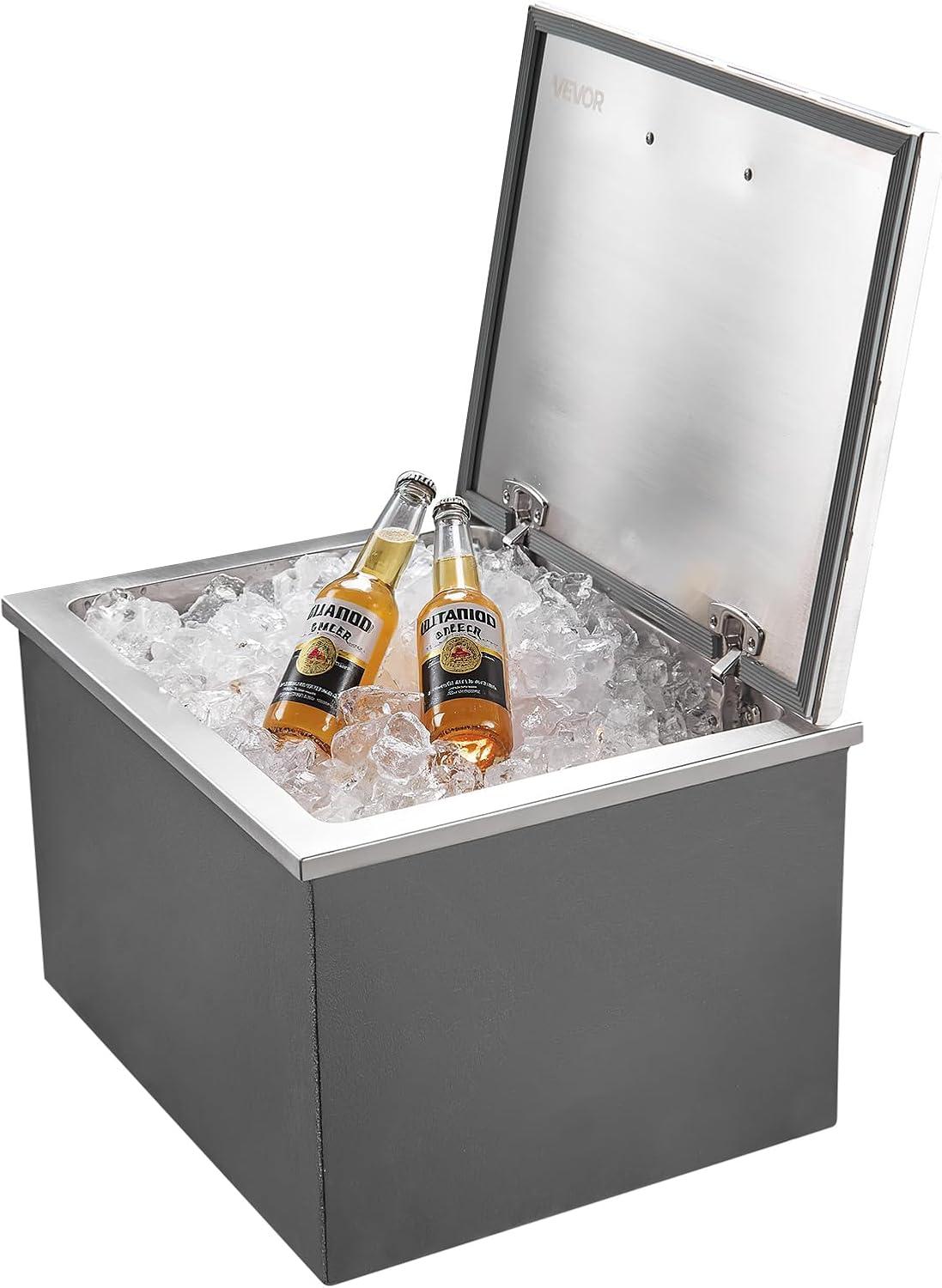 VEVOR Drop in Ice Chest, Stainless Steel Drop in Cooler, Commercial Ice Bin with Lid for Outdoor Kitchen Patio Bar, Drain-Pipe Set Included, Cooling Bins with Cover for Cold Wine Beer(Flip Lid)