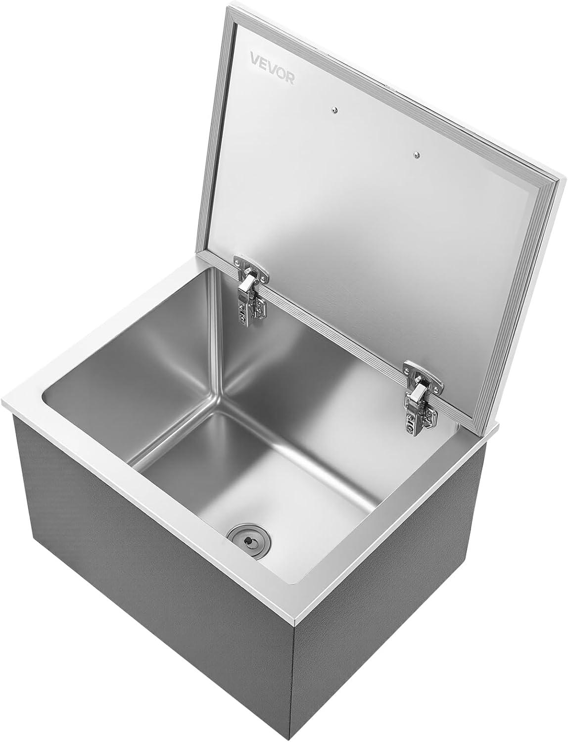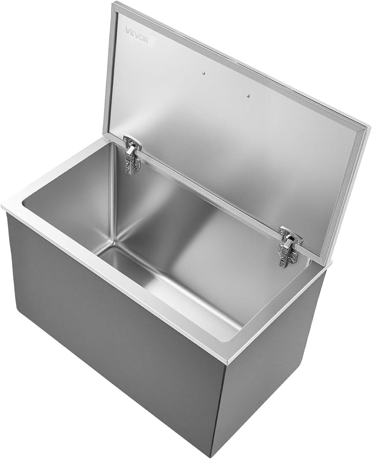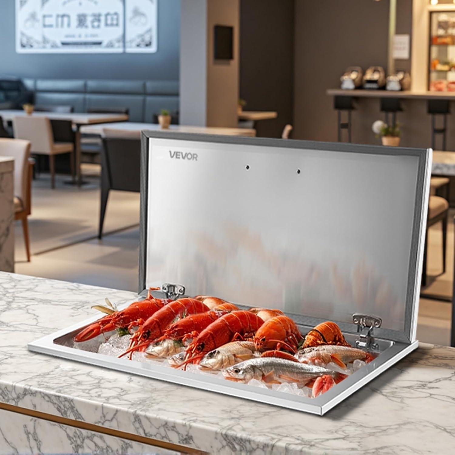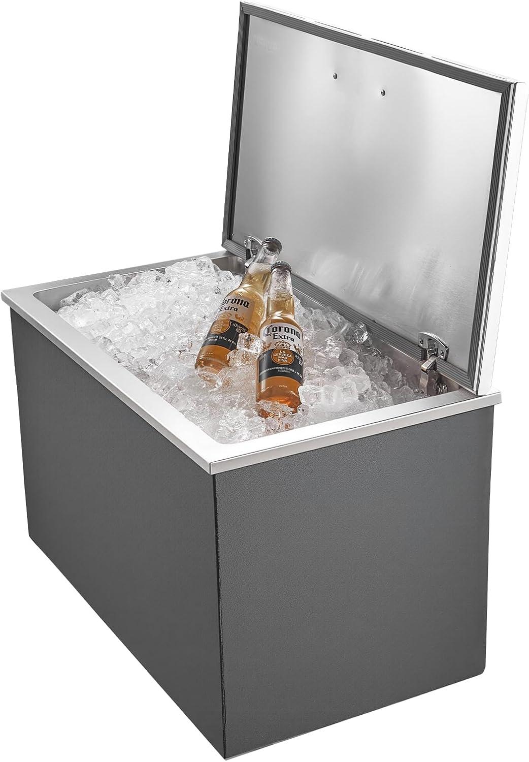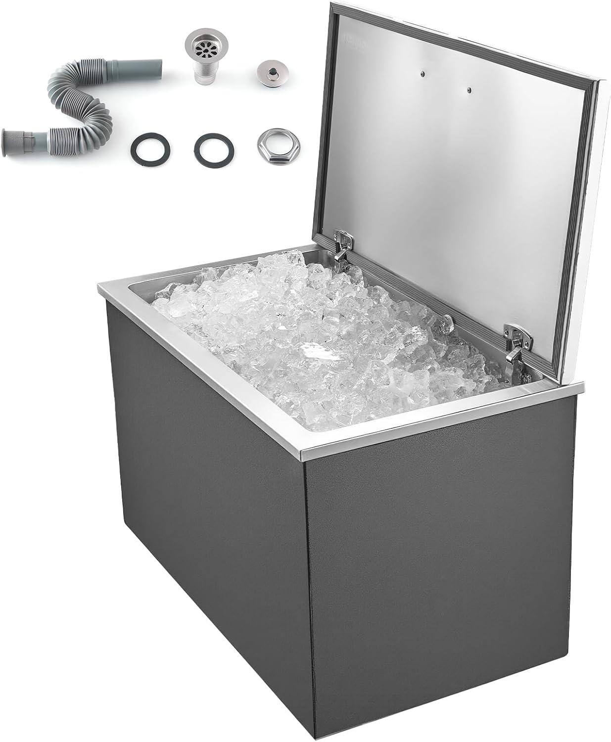 VEVOR Drop in Ice Chest, Stainless Steel Drop in Cooler, Commercial Ice Bin with Lid for Outdoor Kitchen Patio Bar, Drain-Pipe Set Included, Cooling Bins with Cover for Cold Wine Beer(Flip Lid)