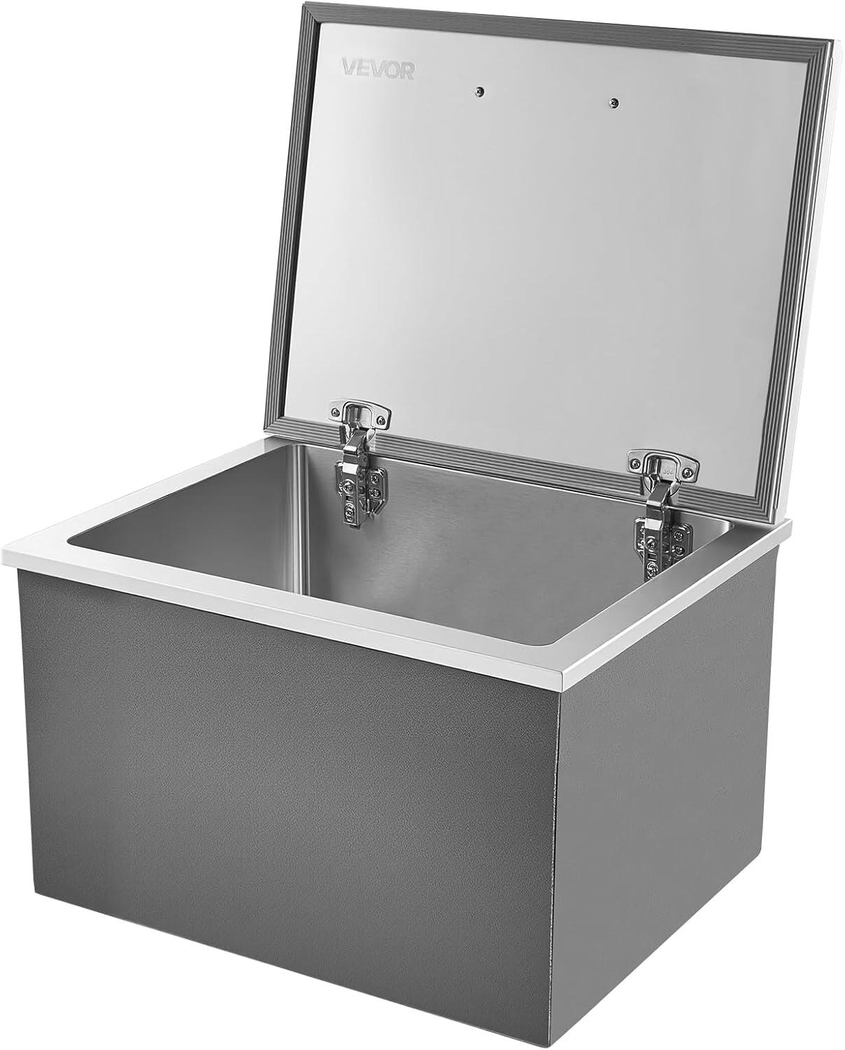 imageVEVOR Drop in Ice Chest Stainless Steel Drop in Cooler Commercial Ice Bin with Lid for Outdoor Kitchen Patio Bar DrainPipe Set Included Cooling Bins with Cover for Cold Wine BeerPot Lid