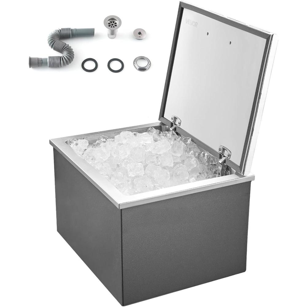 imageVEVOR Drop in Ice Chest Stainless Steel Drop in Cooler Commercial Ice Bin with Lid for Outdoor Kitchen Patio Bar DrainPipe Set Included Cooling Bins with Cover for Cold Wine BeerFlip Lid