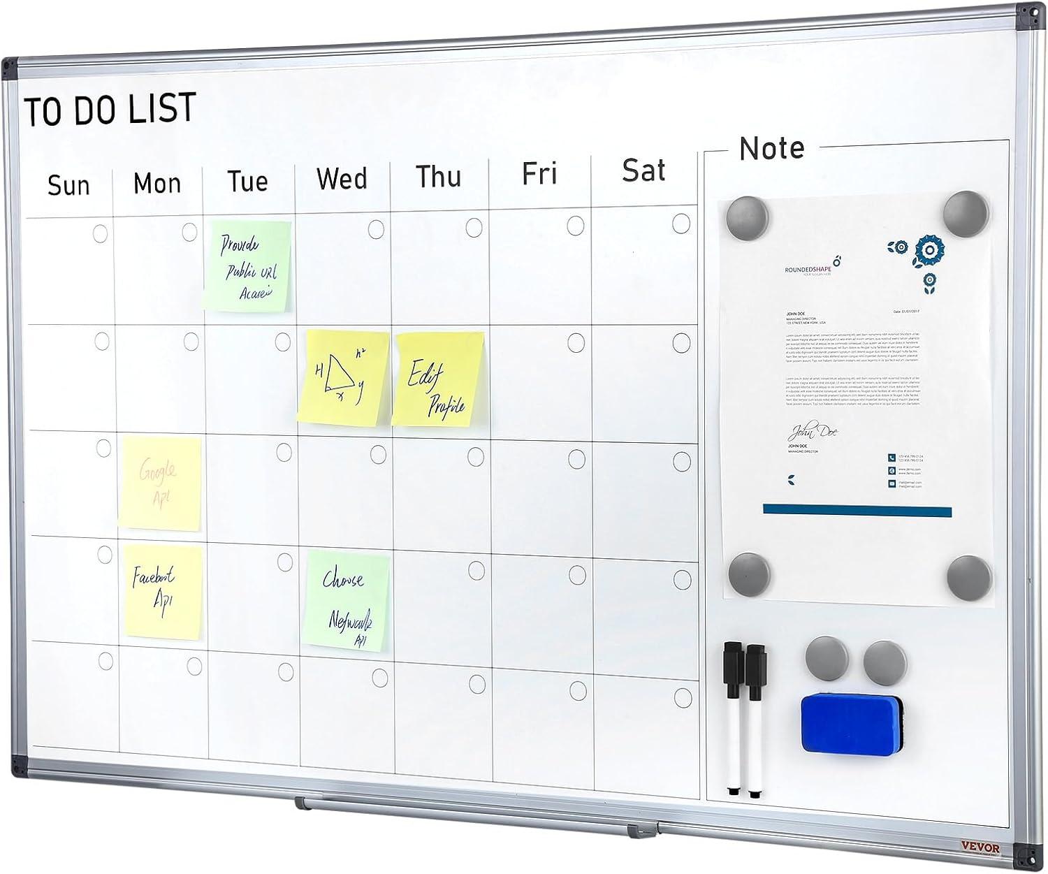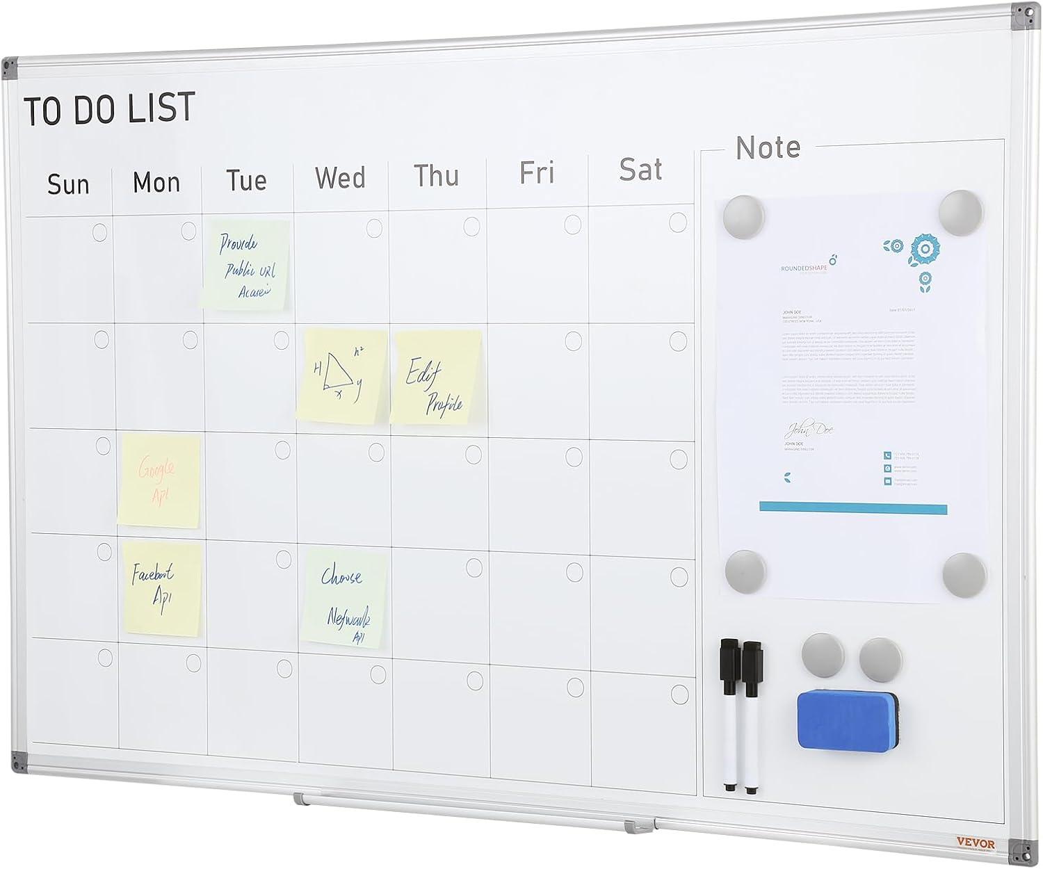 imageVEVOR Dry Erase Calendar for Wall 36 x 24 Inches Whiteboard Calendar Monthly Planner Magnetic Dry Erase Board 1 Magnetic Erase ampamp 2 Dry Erase Marker ampamp Movable Tray for Restaurant Office Home Schoolrolling whiteboard